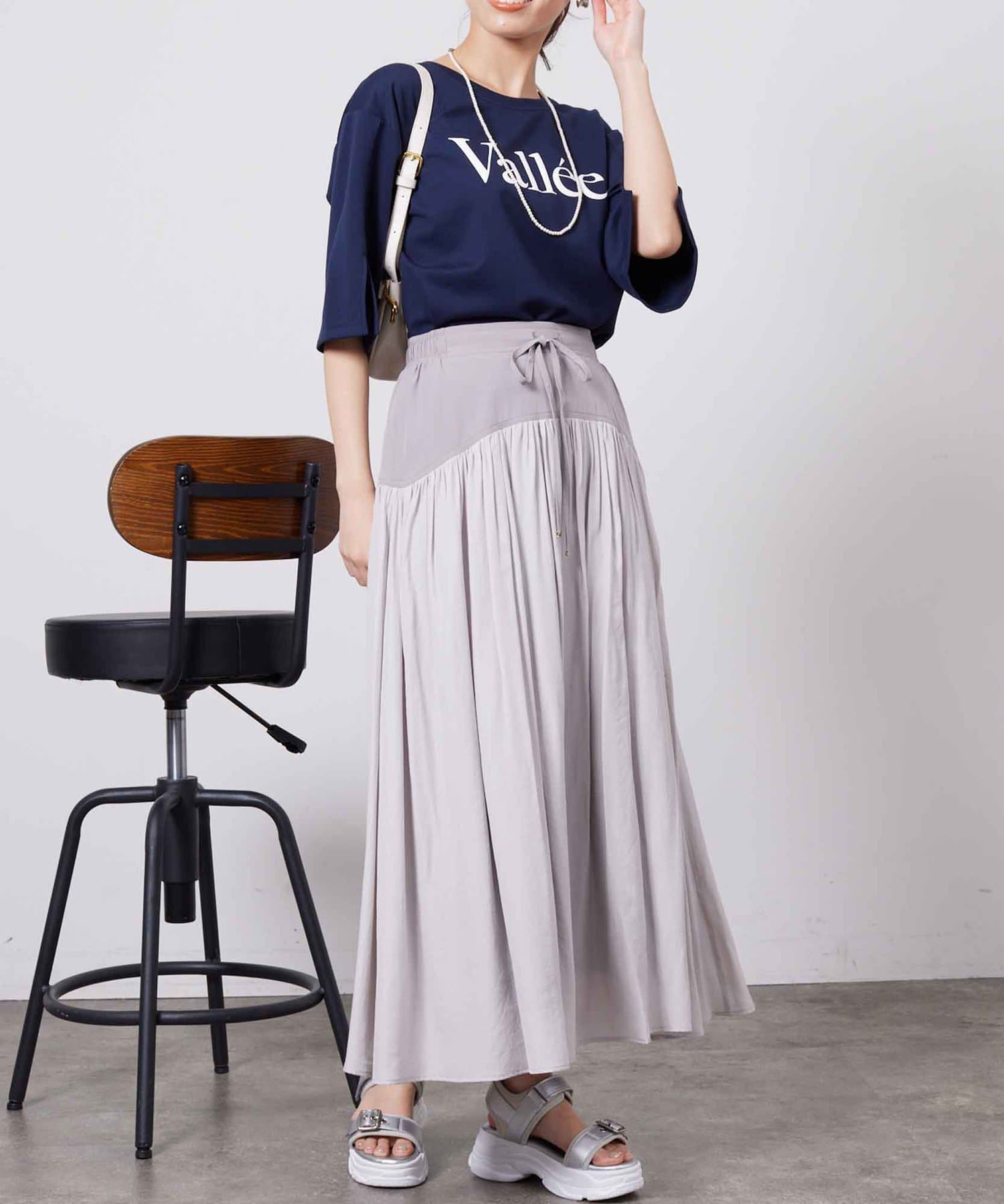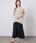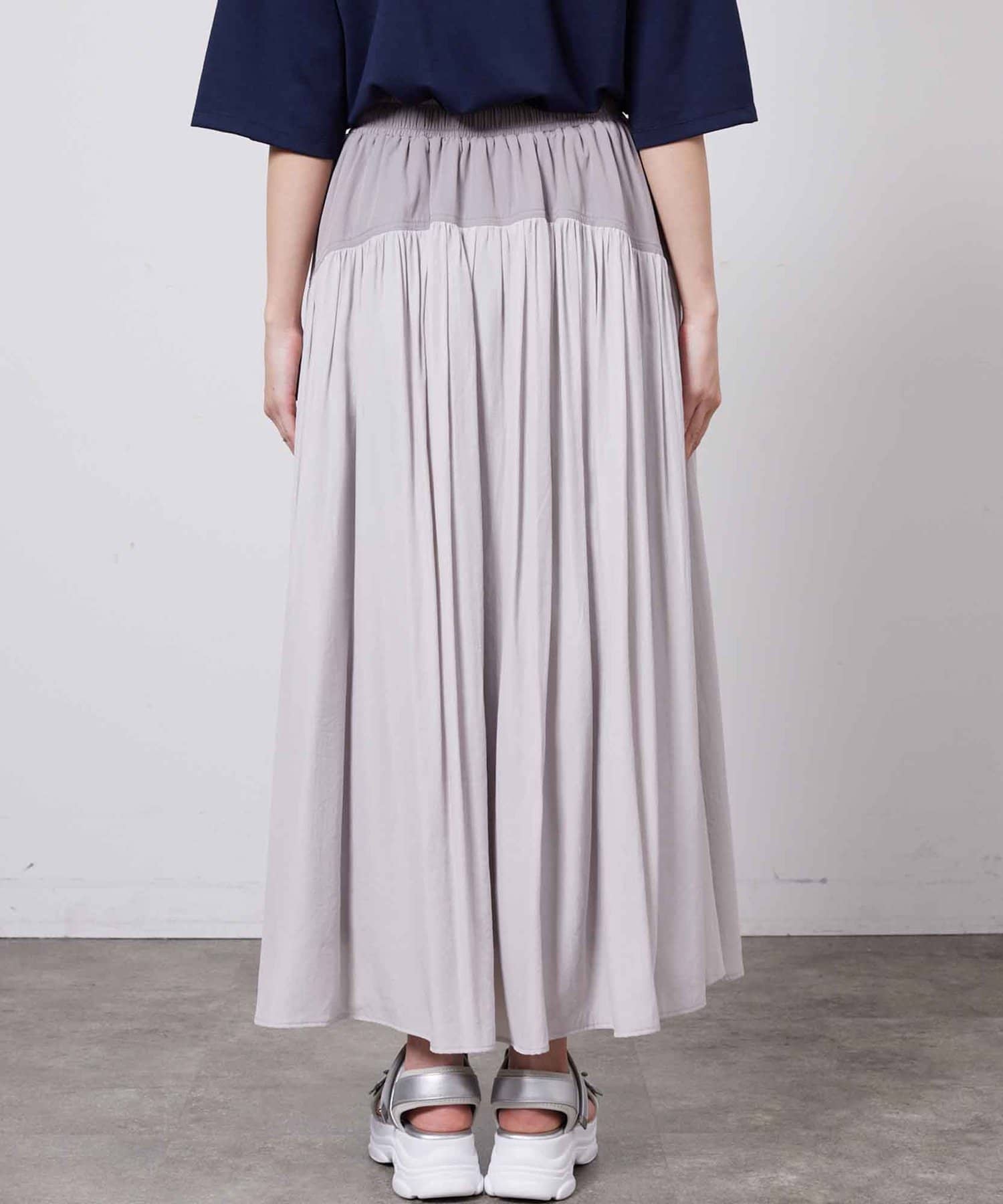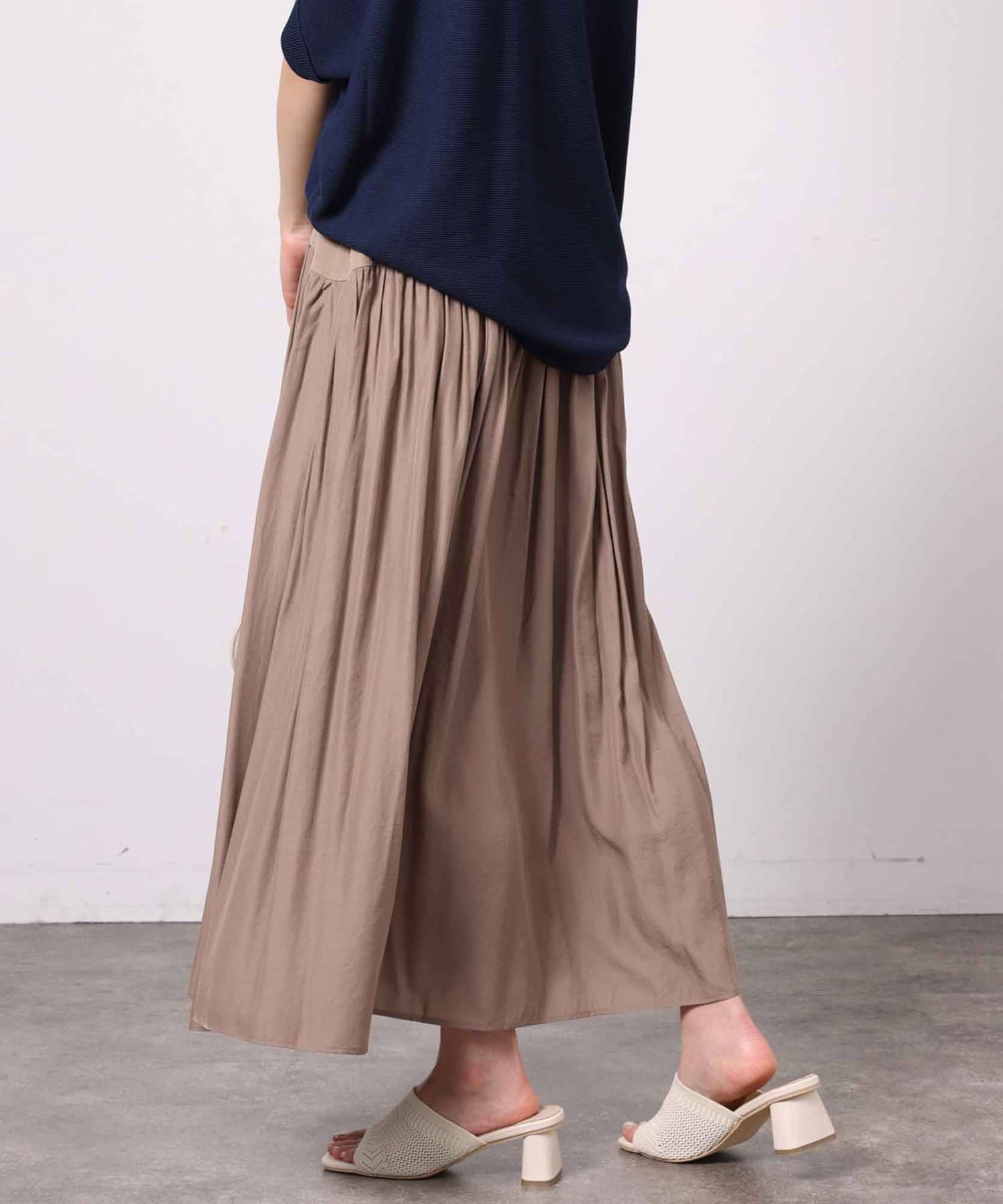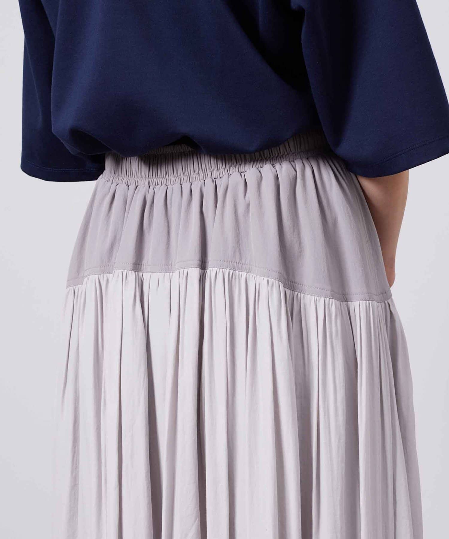 ウエストの切り替え部分から下は異素材の微光沢のある生地で