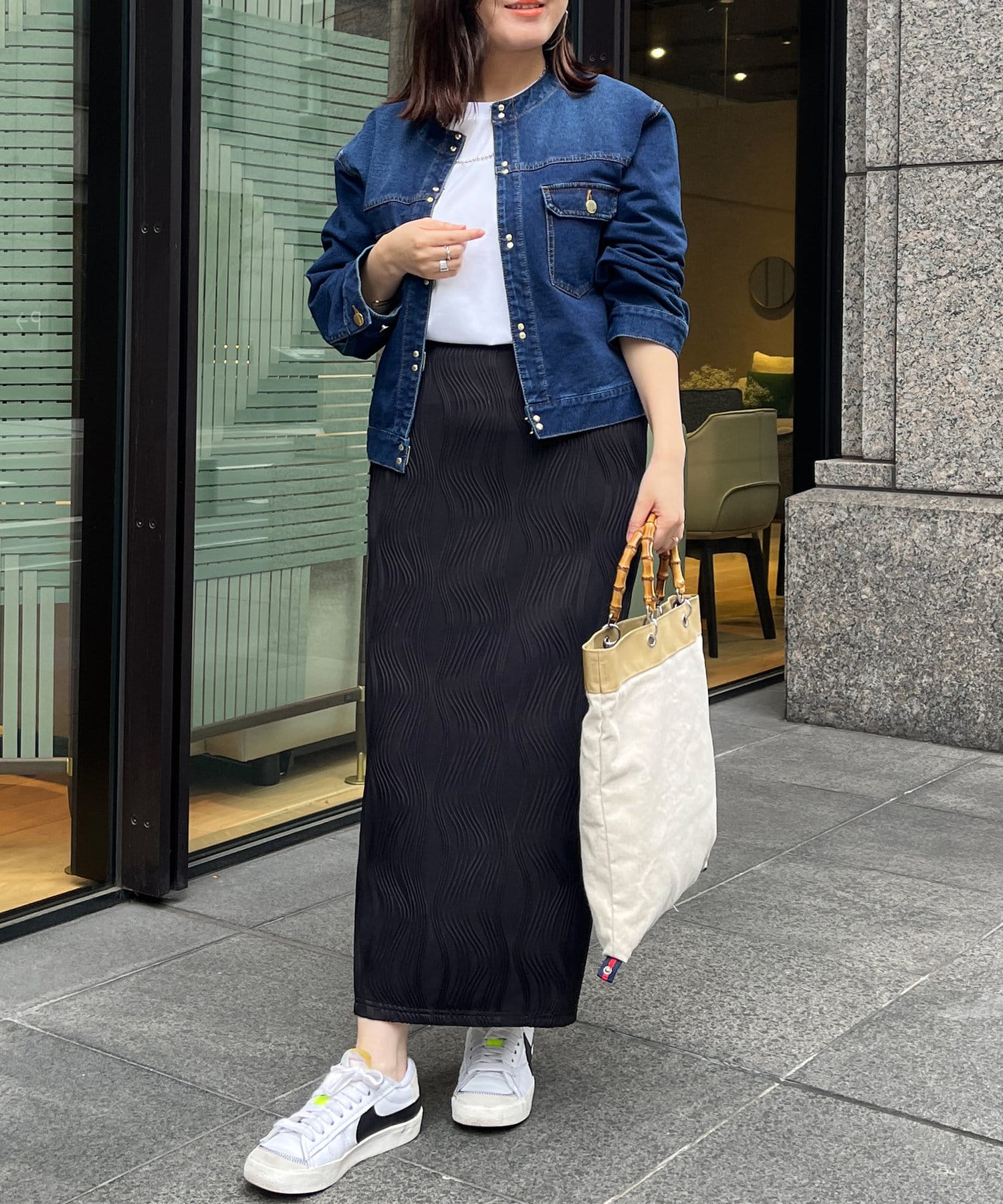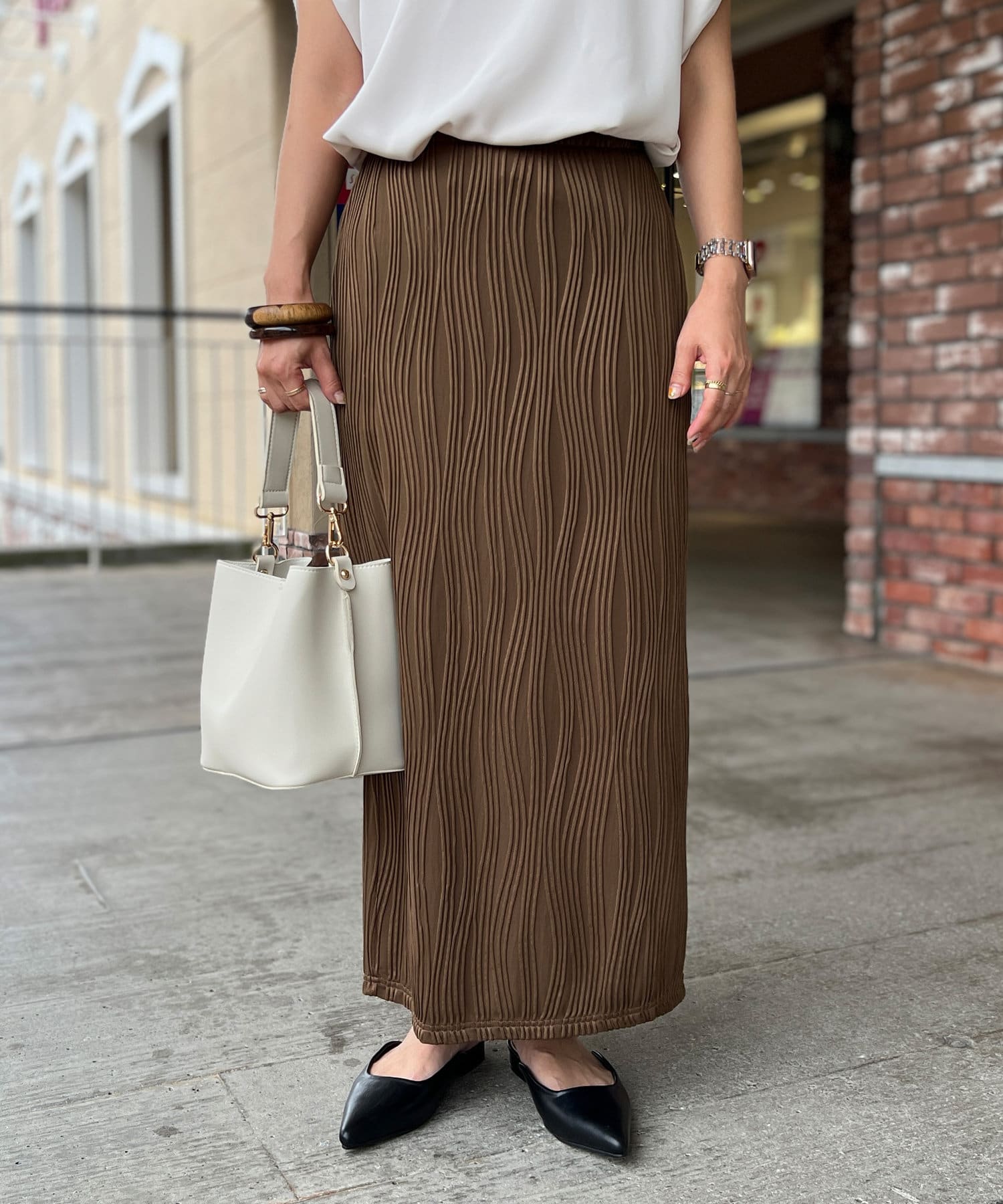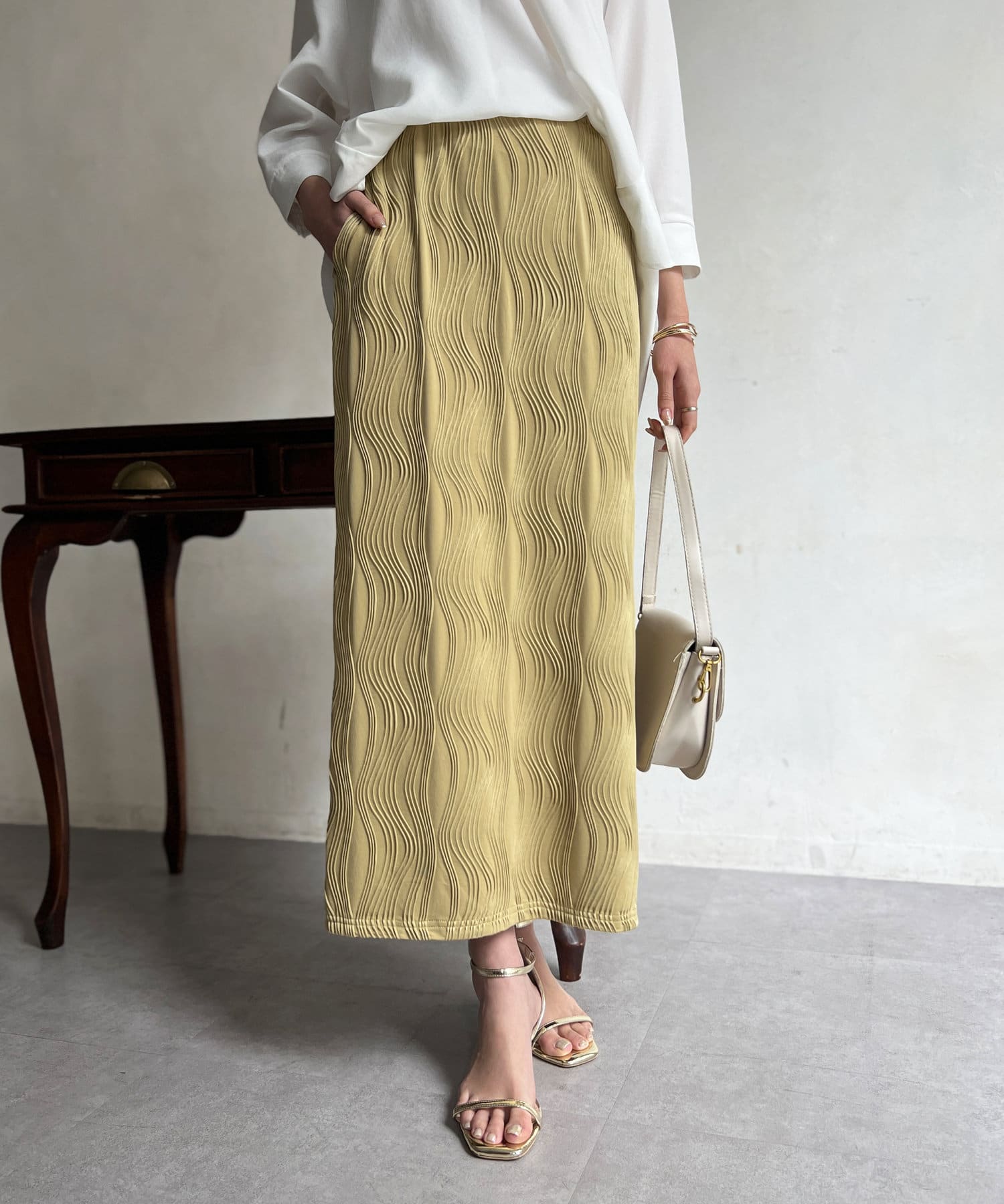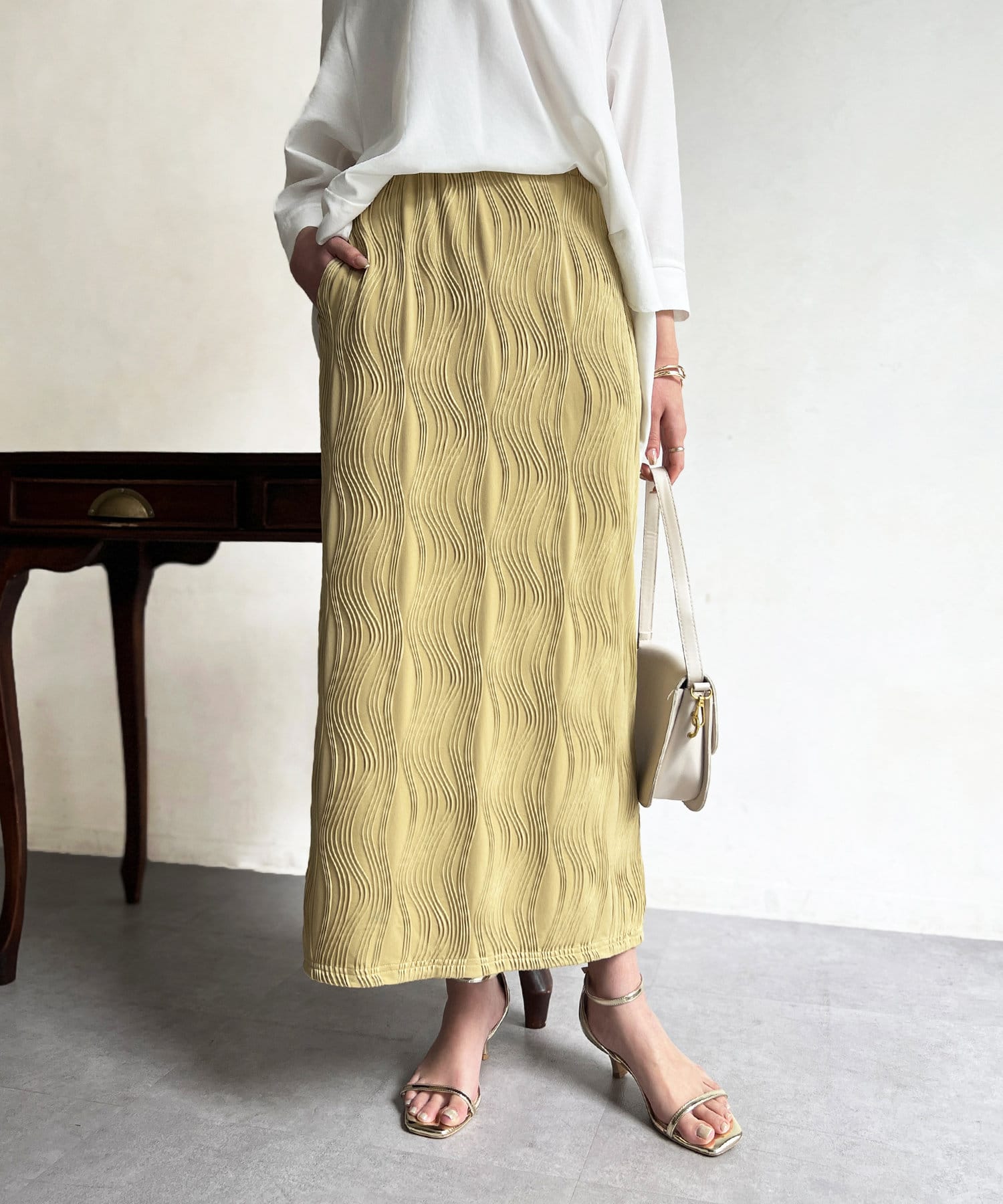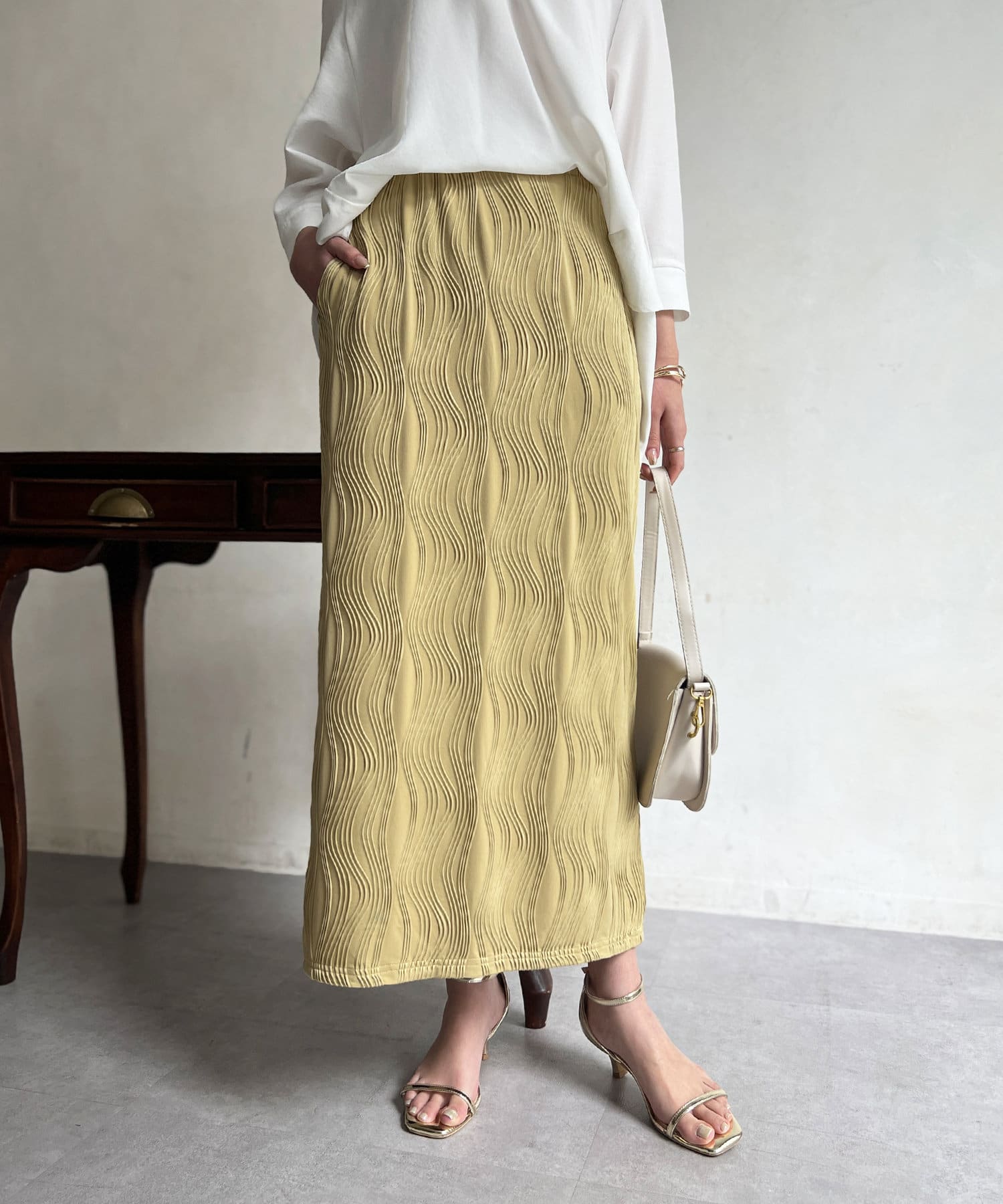 立体感のあるジャガード生地でオシャレ見えが叶うスカート。