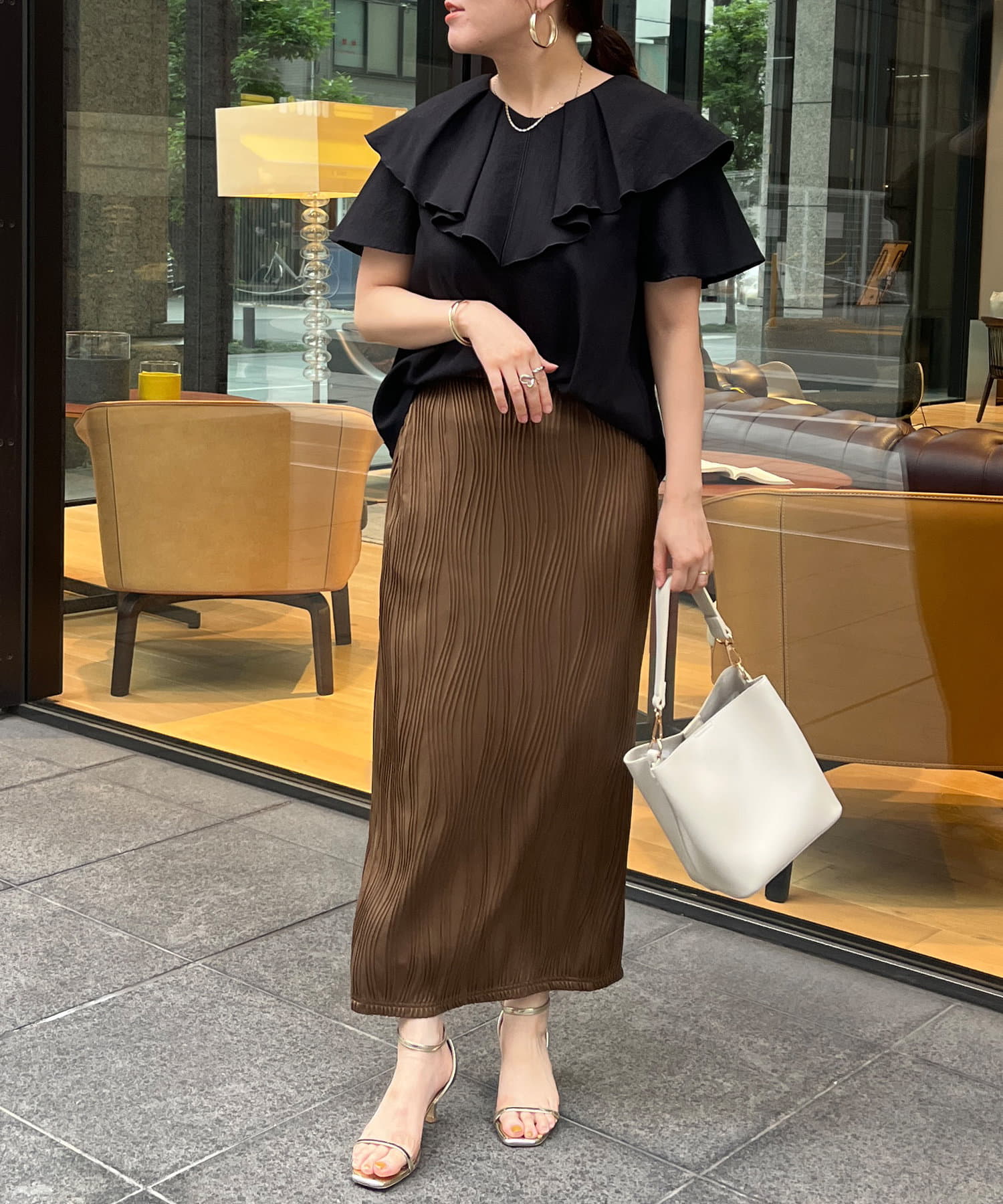 後ろにはスリット入り。女性らしさもプラスしてくれます。