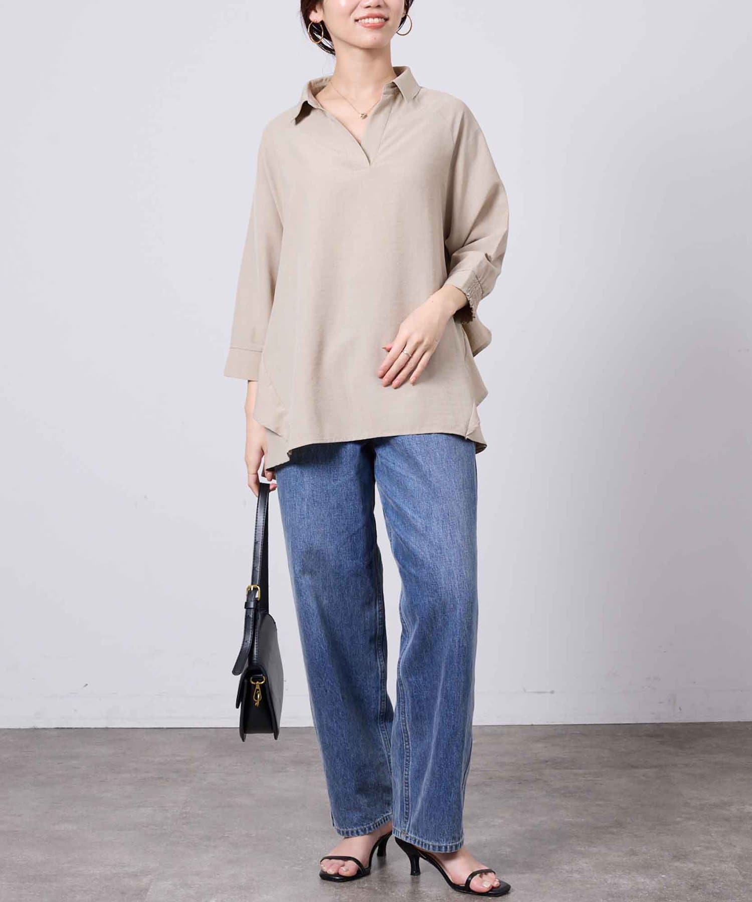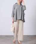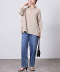 麻調合繊の生地を使用した軽い着心地のスキッパーシャツです。