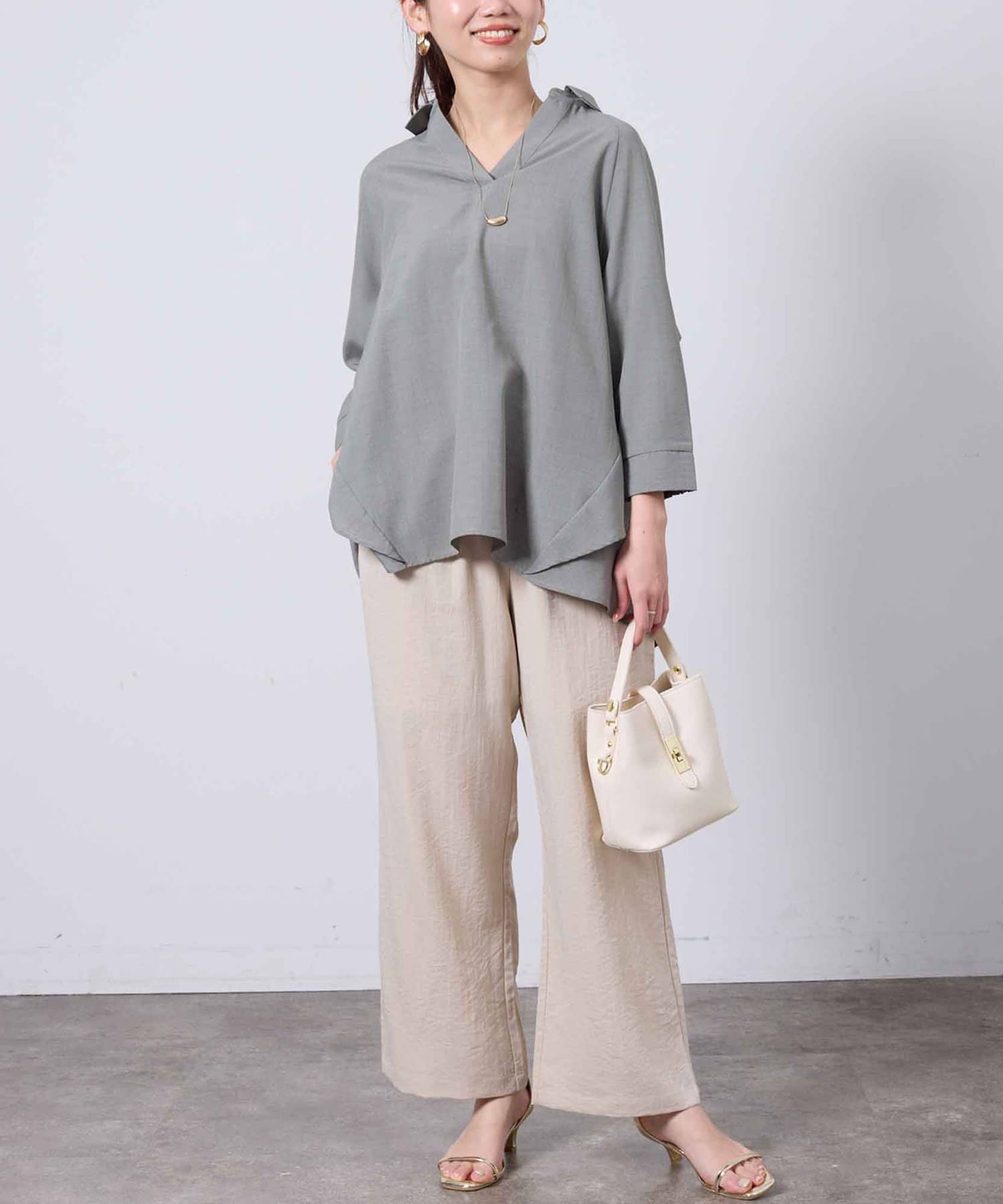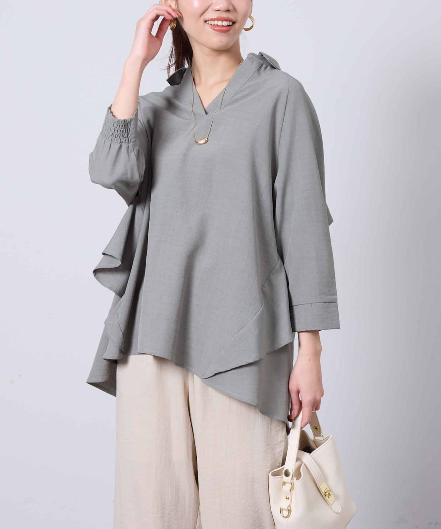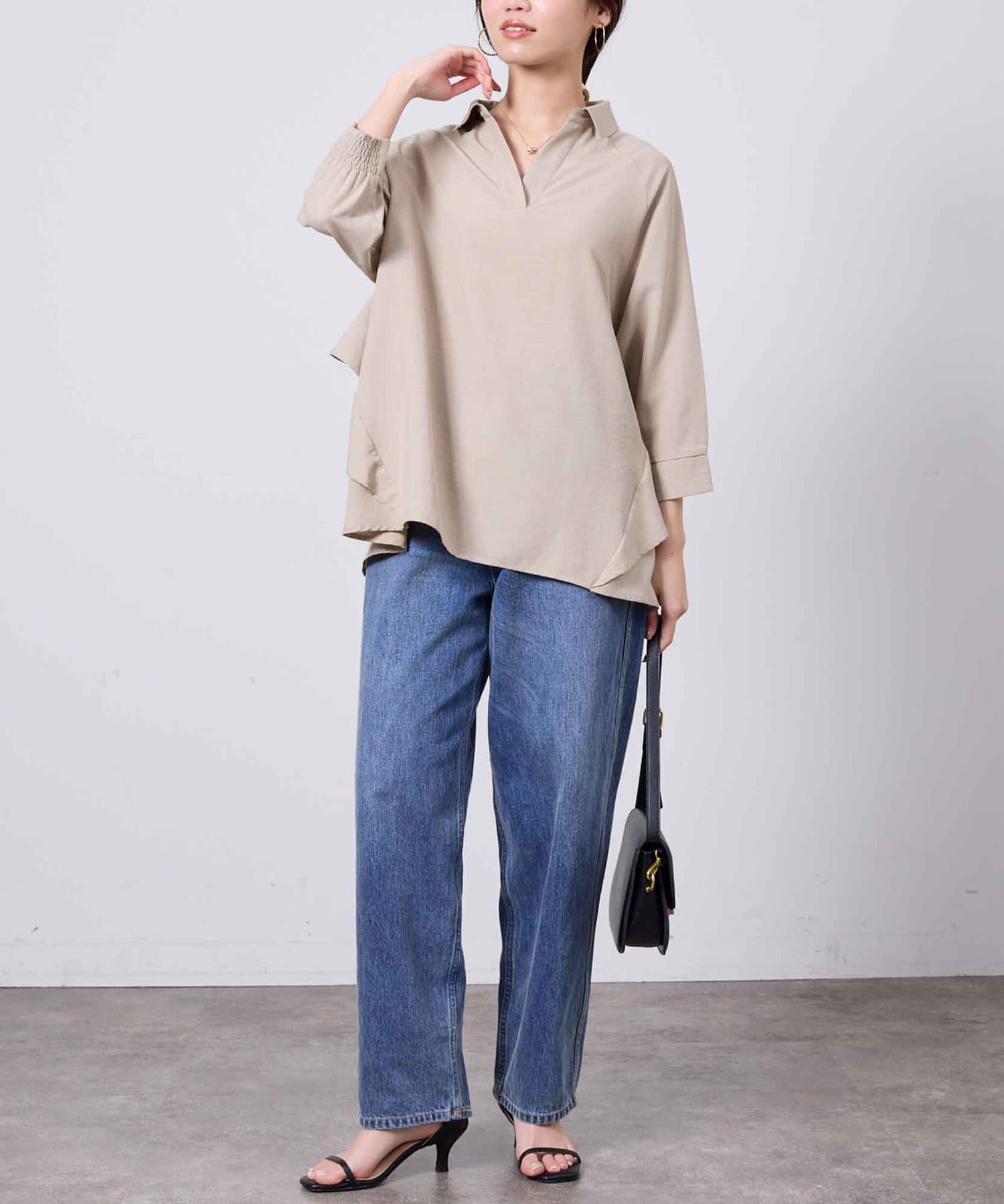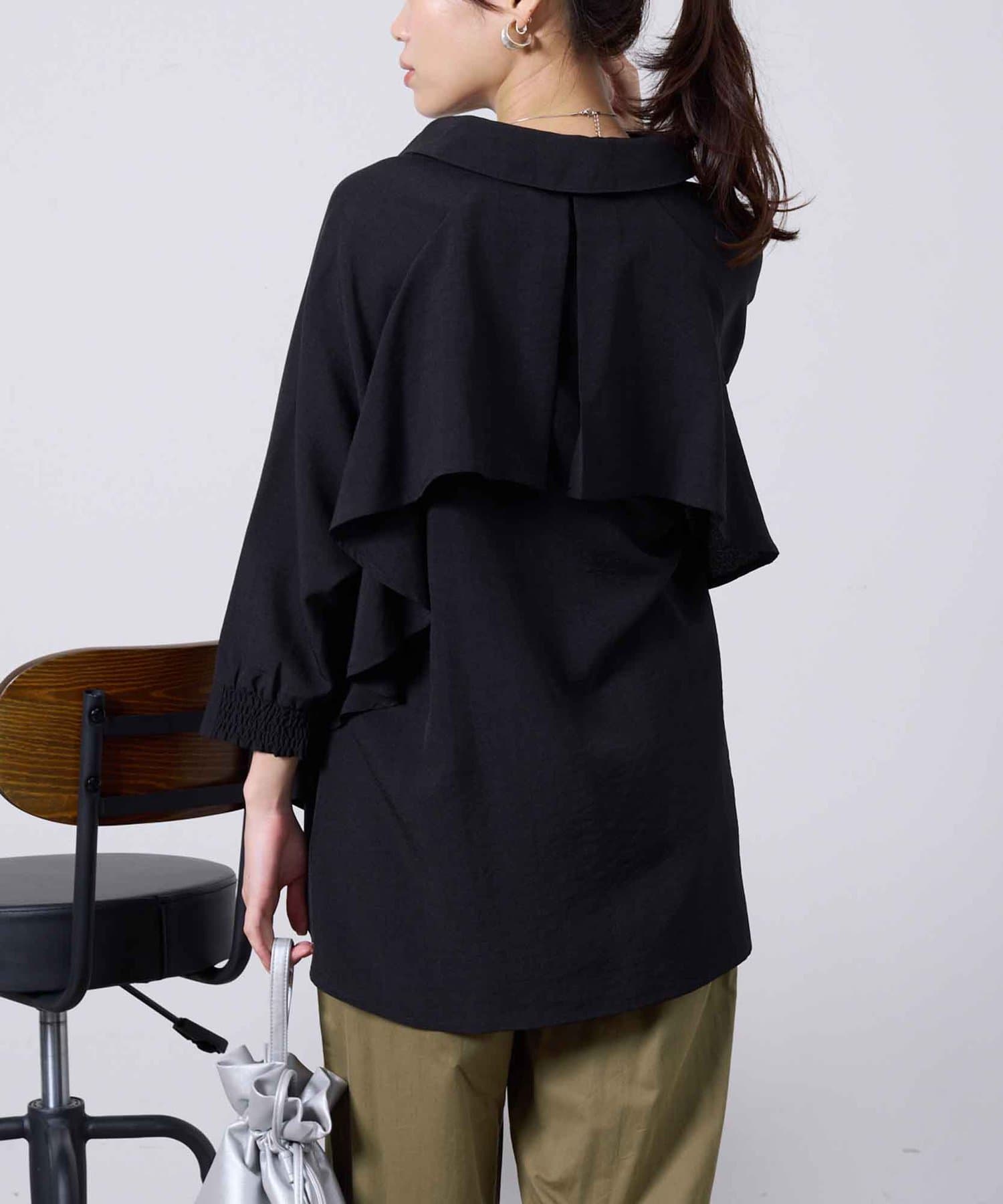 後ヨーク部分がフリルになっているデザインなので、ふんわりと広がるシルエットが大人可愛い印象に仕上げてくれます。