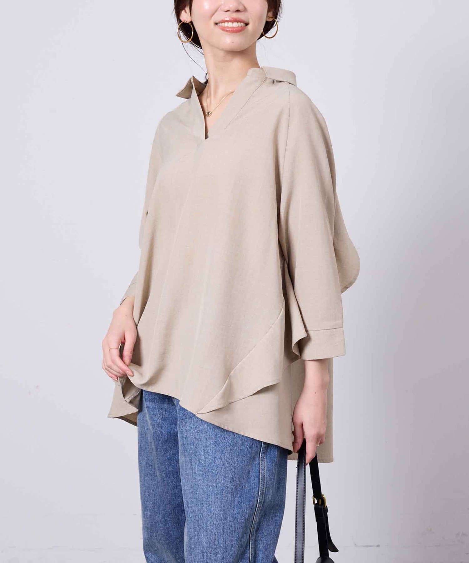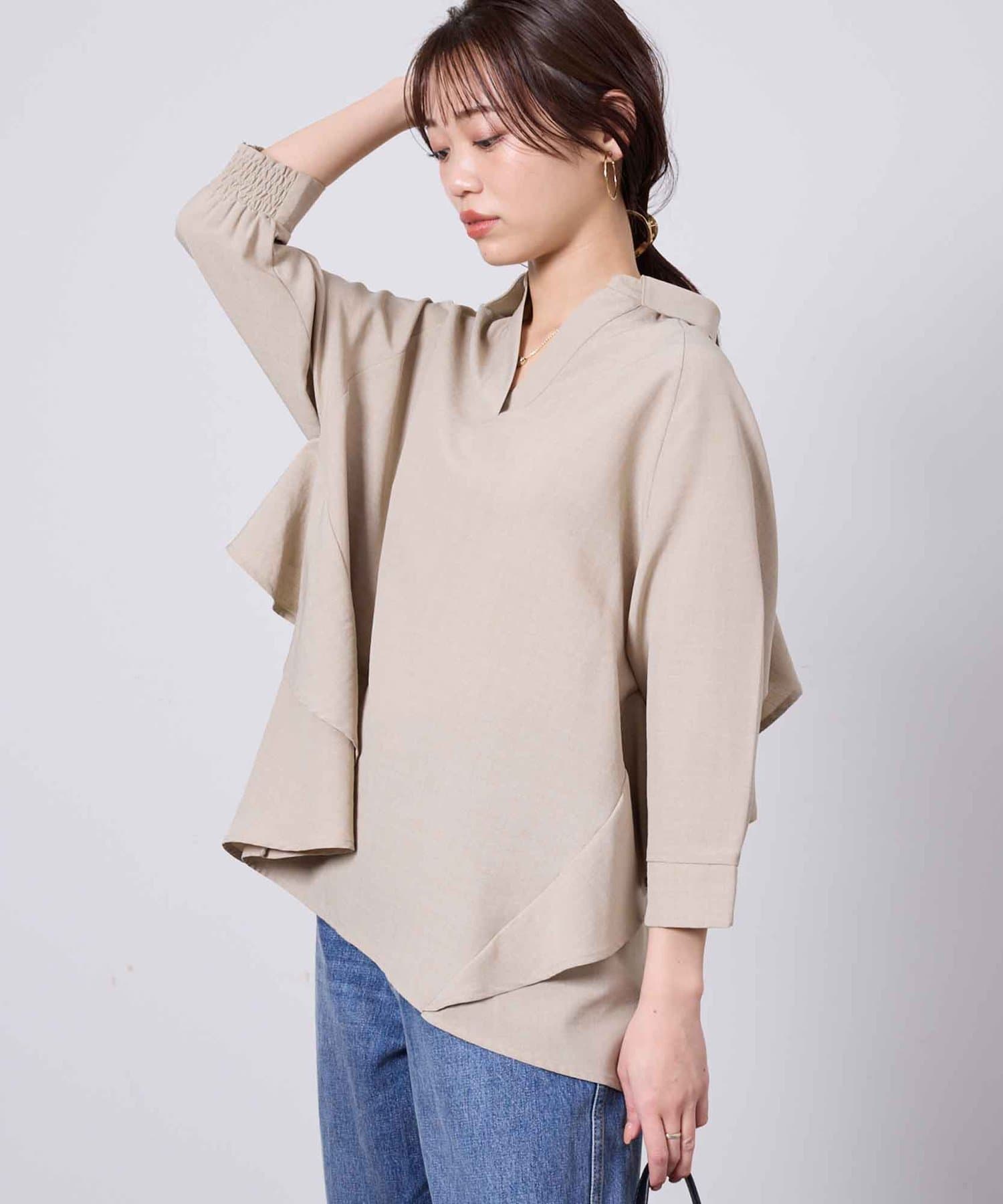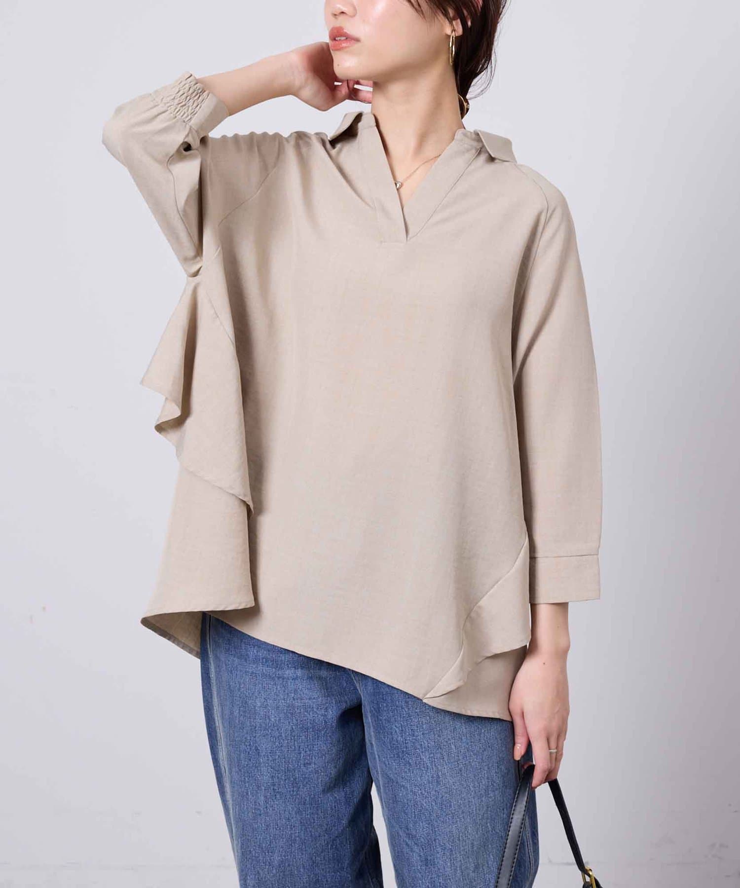【お気に入り1000人突破!!】リネンタッチBACKフリルスキッパーシャツ