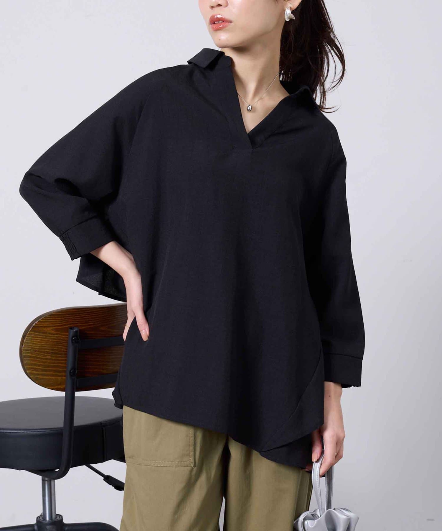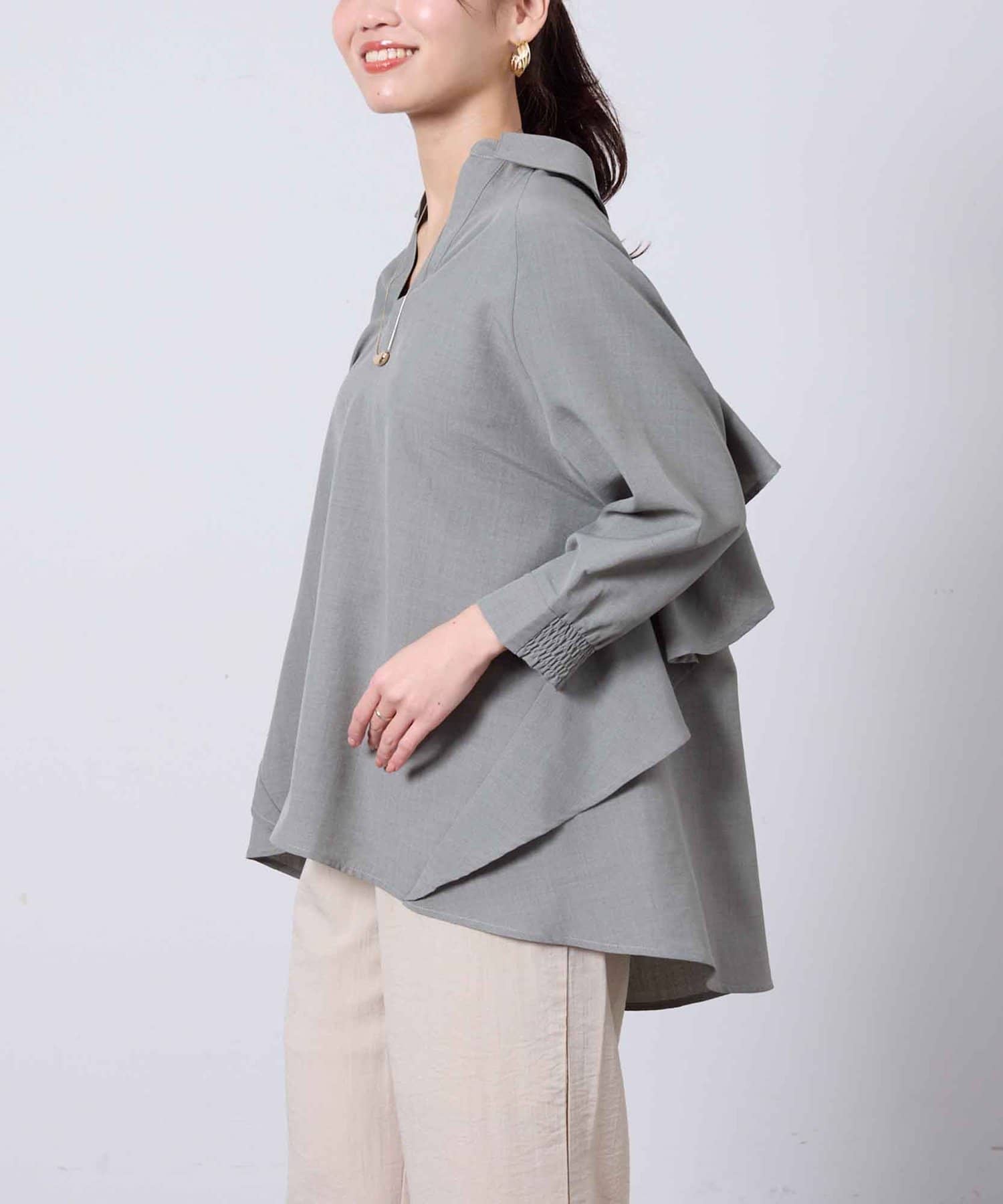 バックフリルデザインのスキッパーシャツ