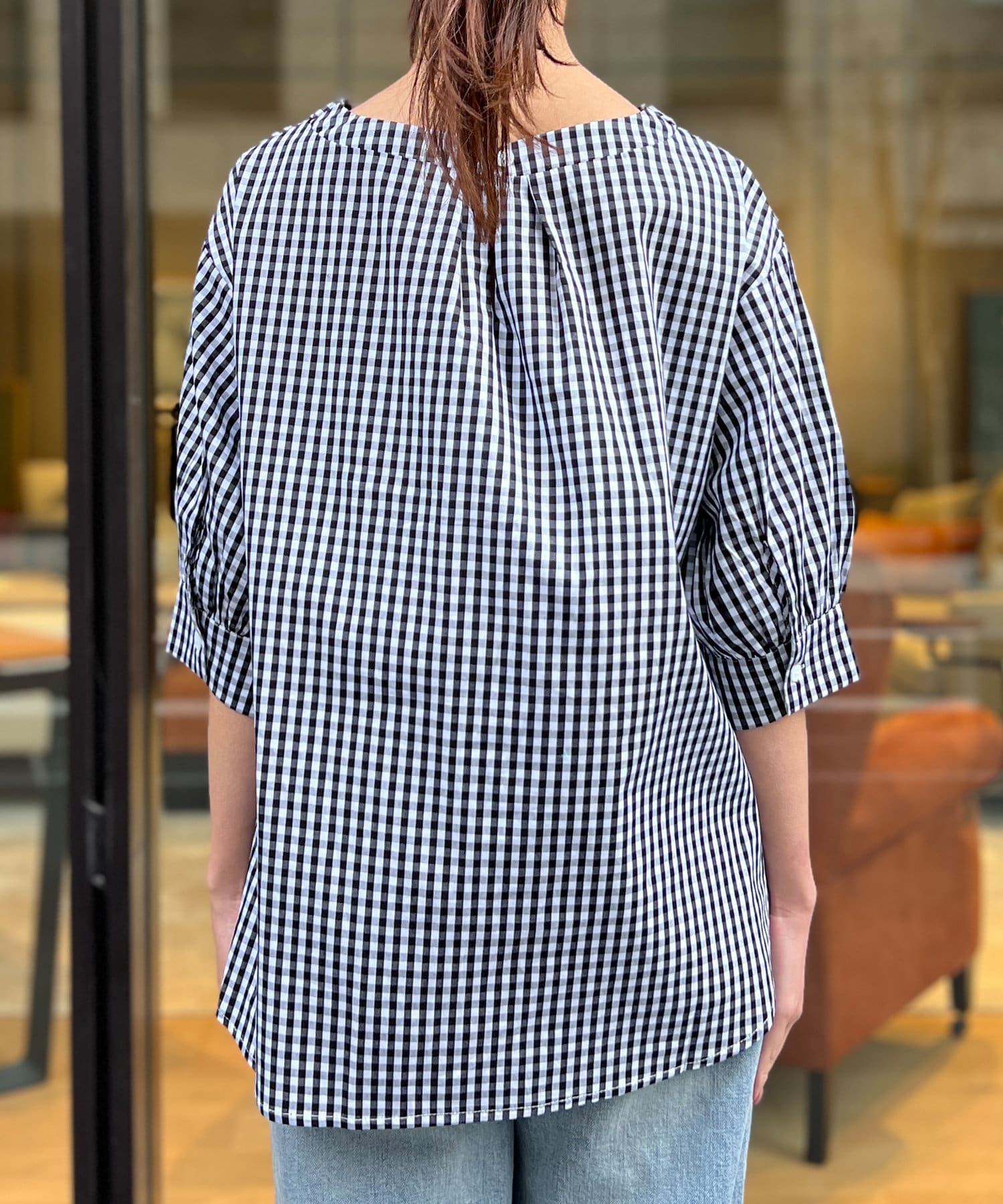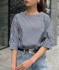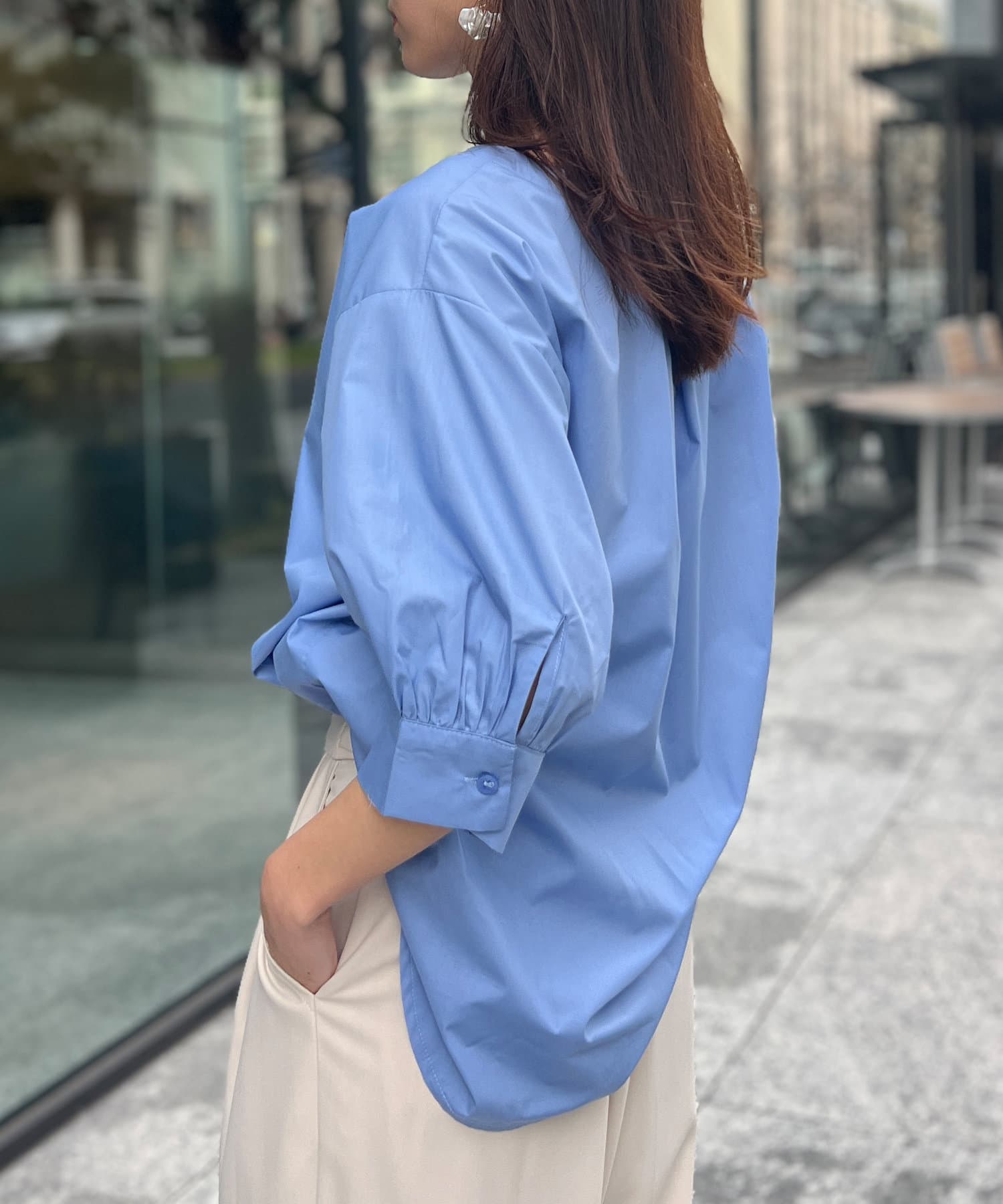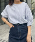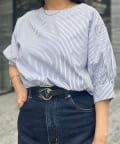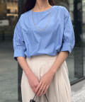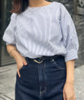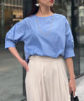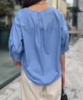 ふんわりとしたボリューム袖が女性らしいシルエットのブラウス。