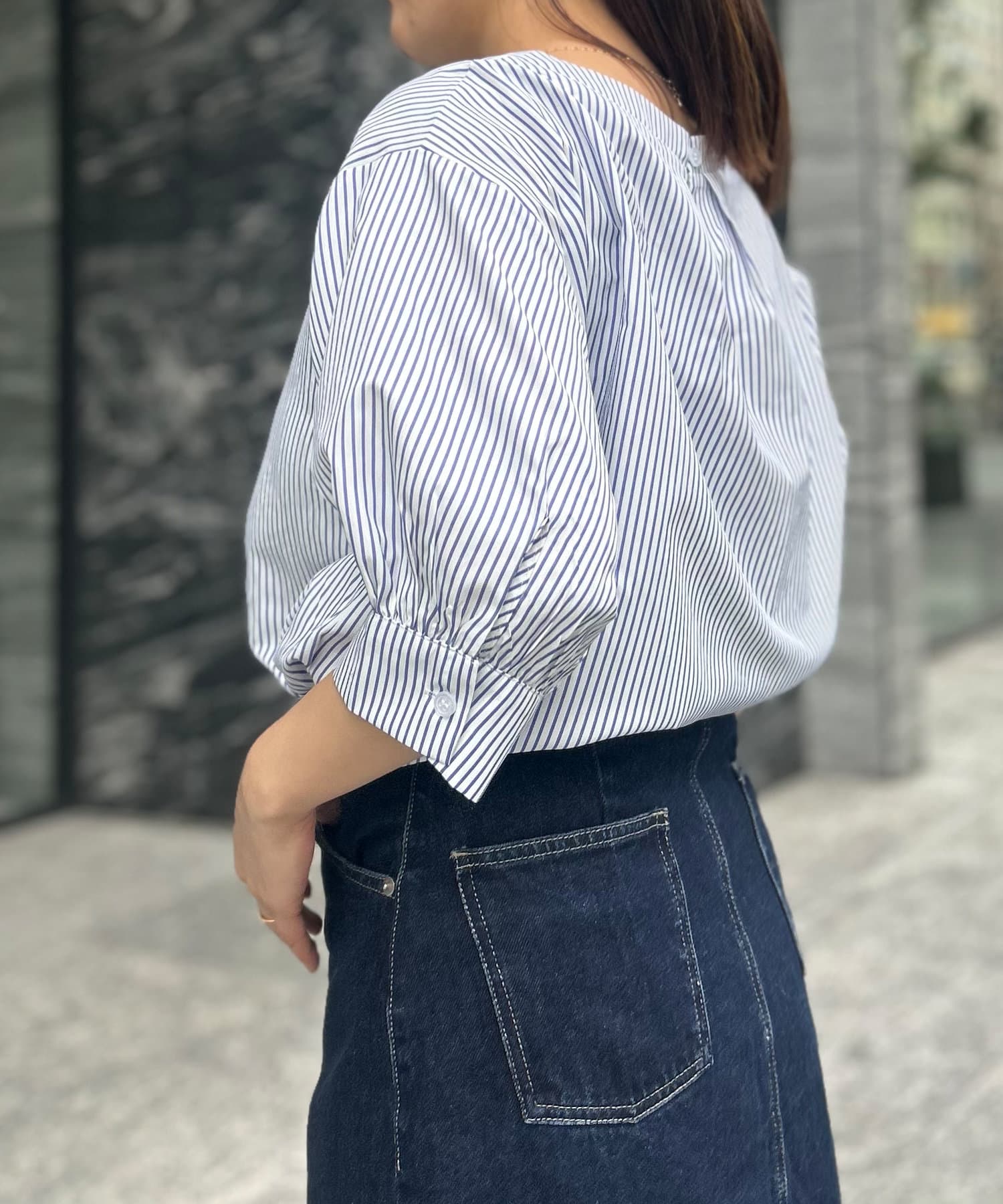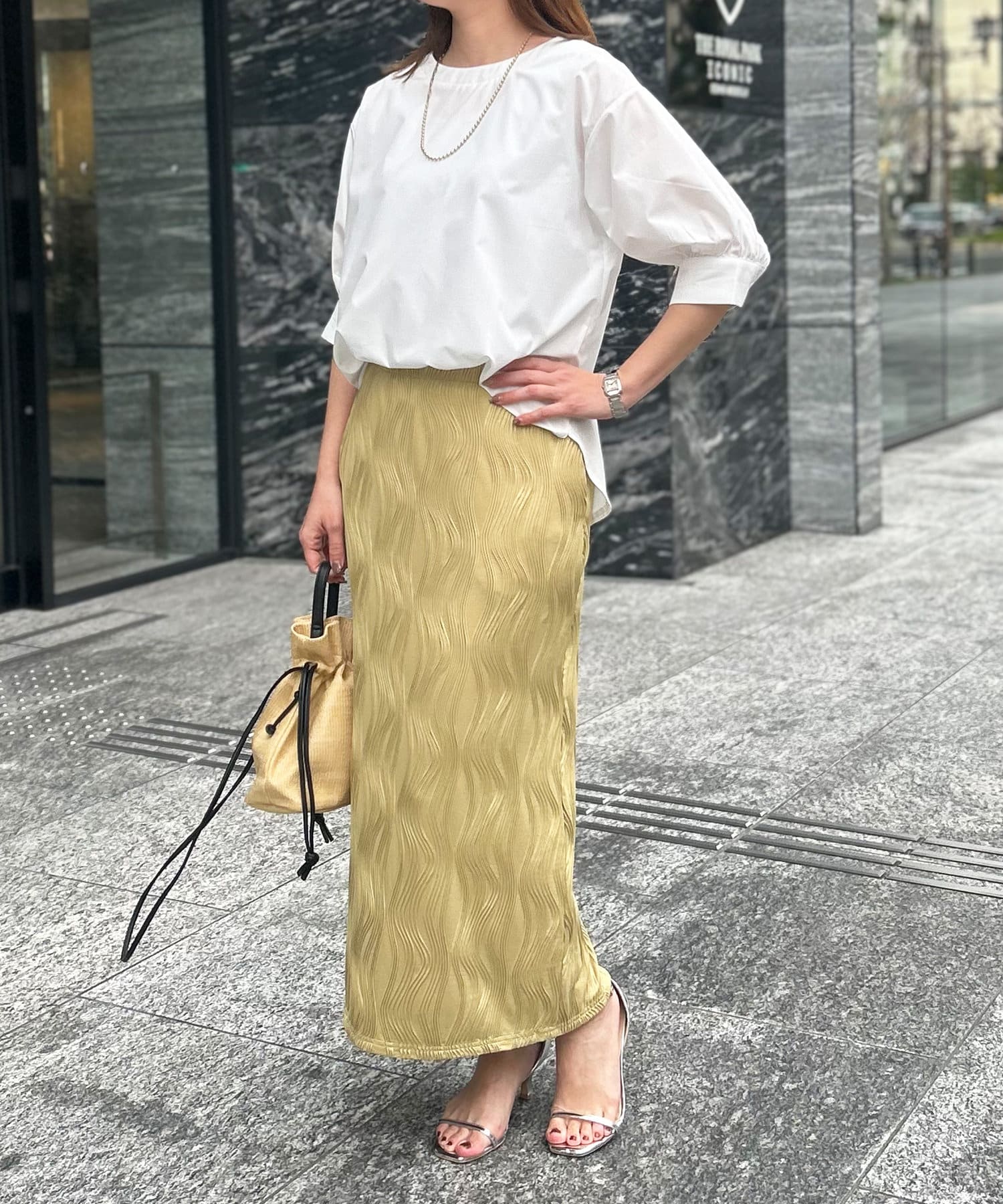 ナロースカートなどと合わせてフェミニンなスタイルもお勧め。
