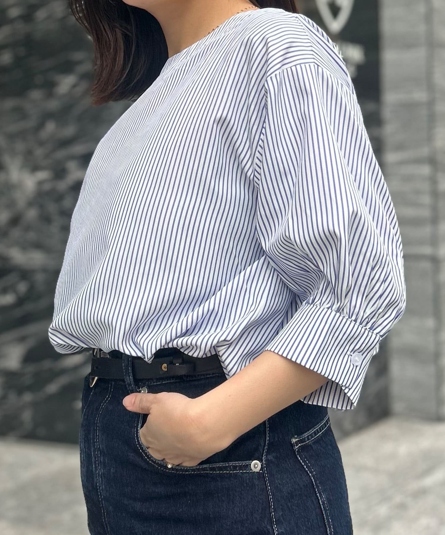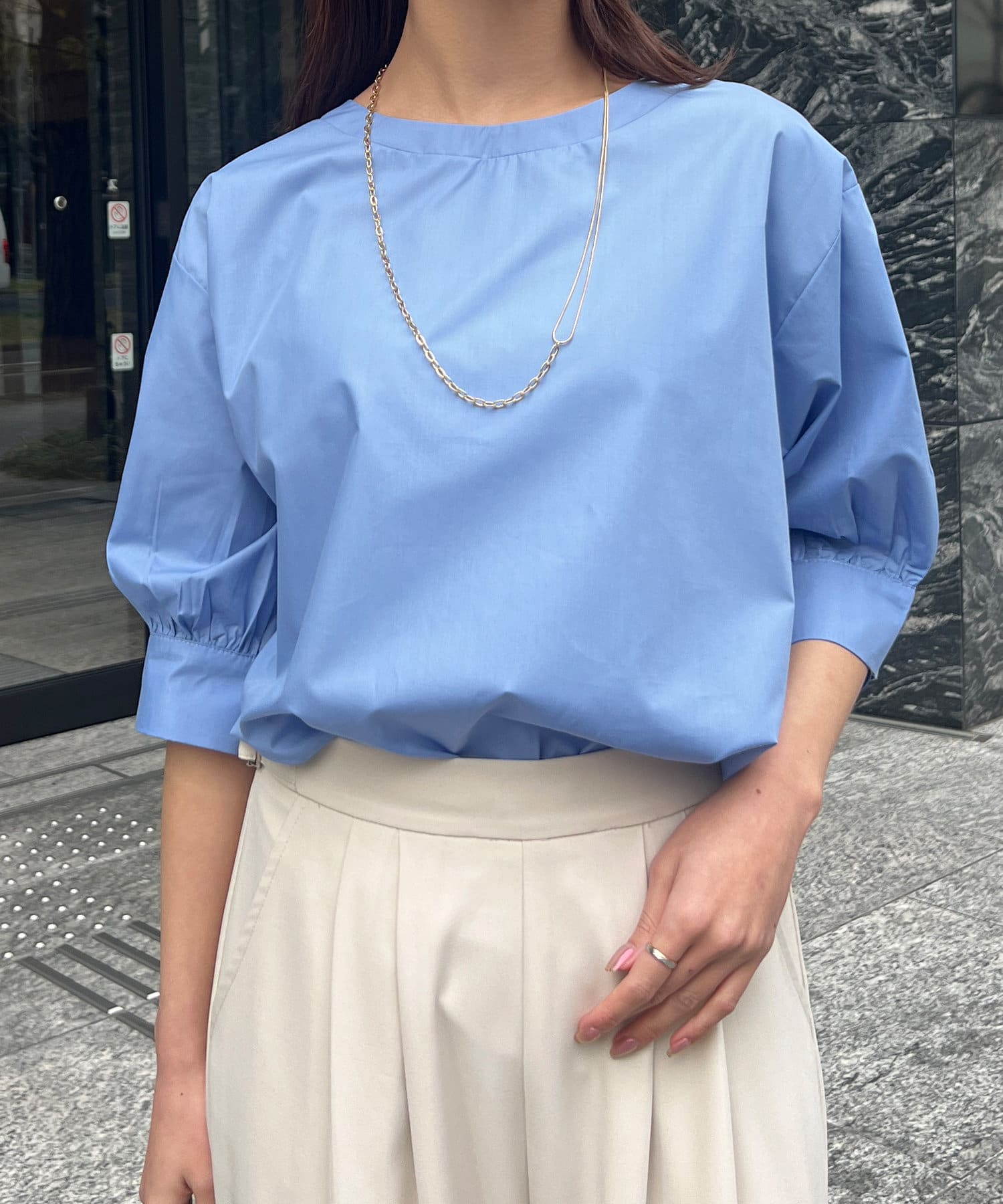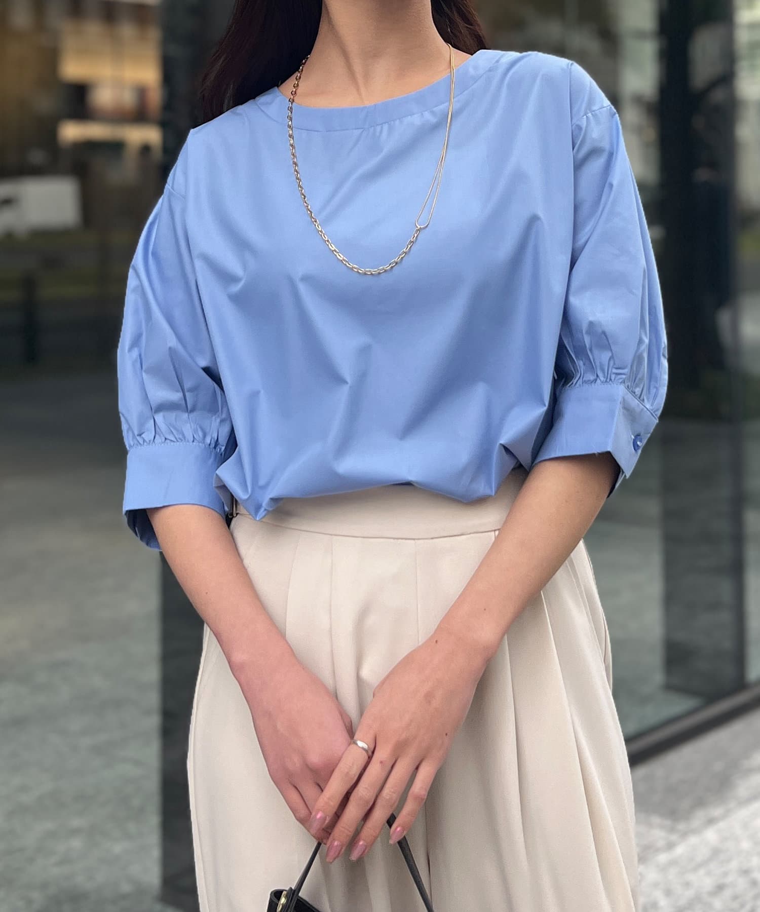 さらっとした生地感で程よい張り感がこなれ感のある印象に。