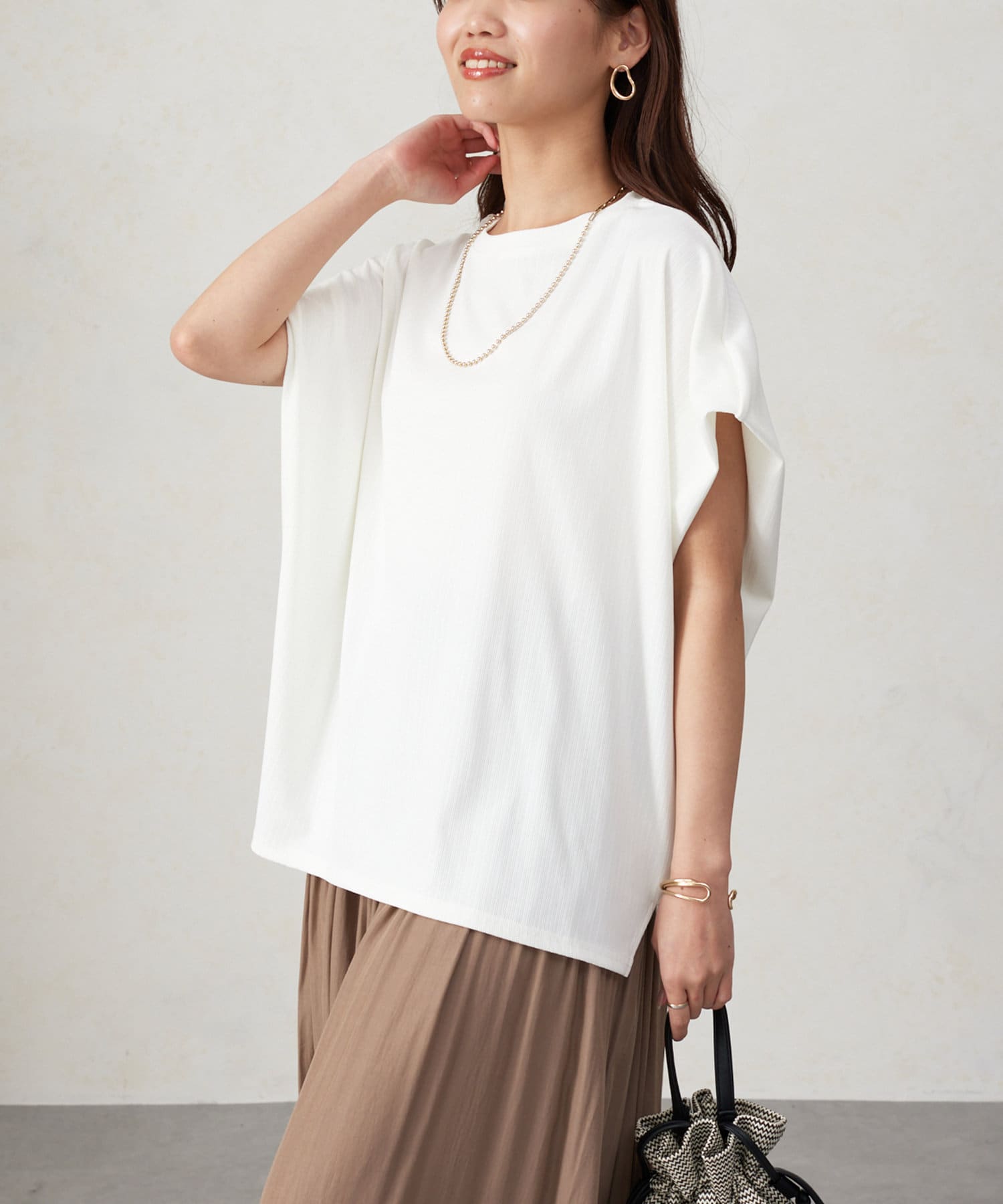 トップス。肩に入ったタックデザインが肩回りや二の腕をすっきり