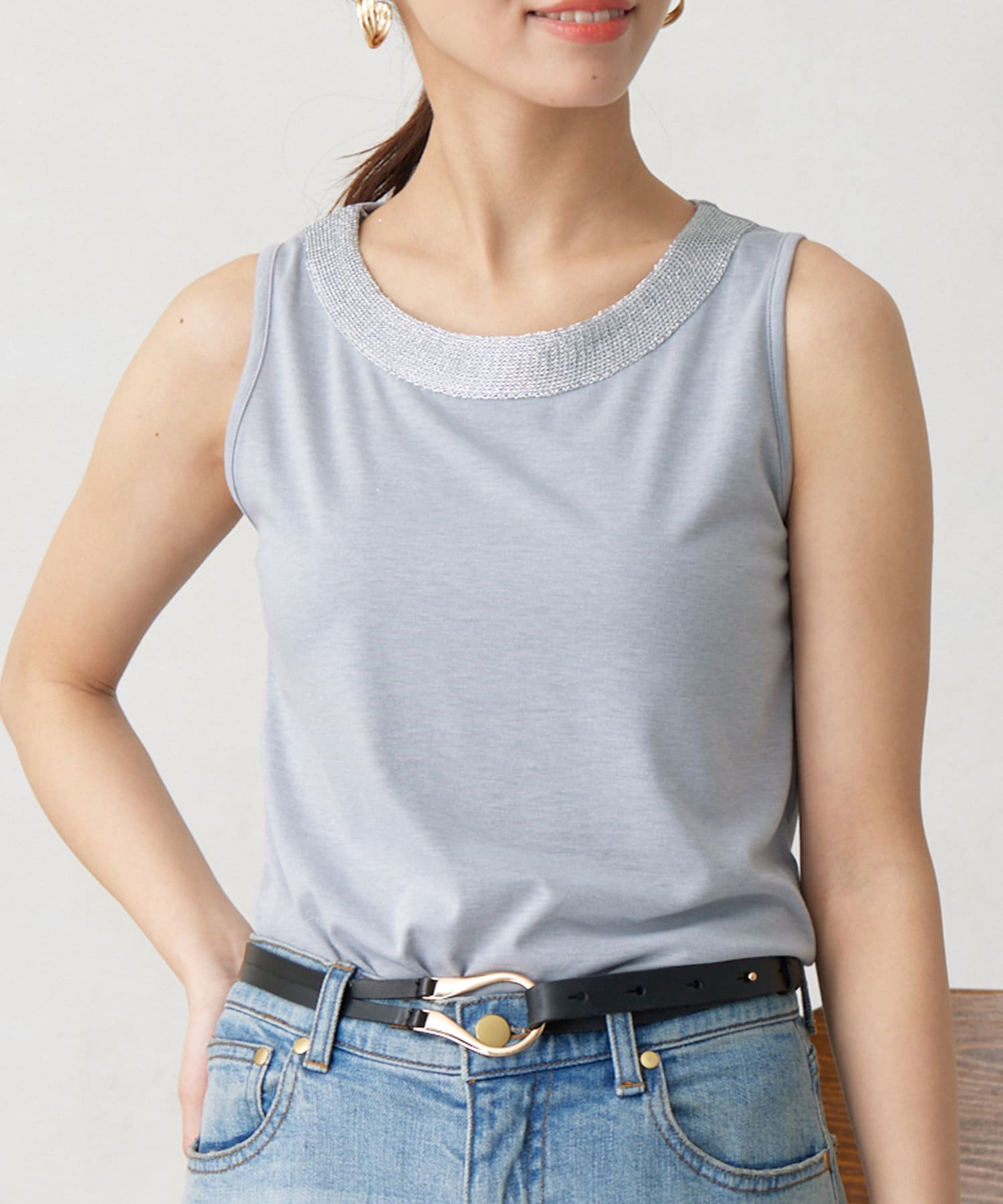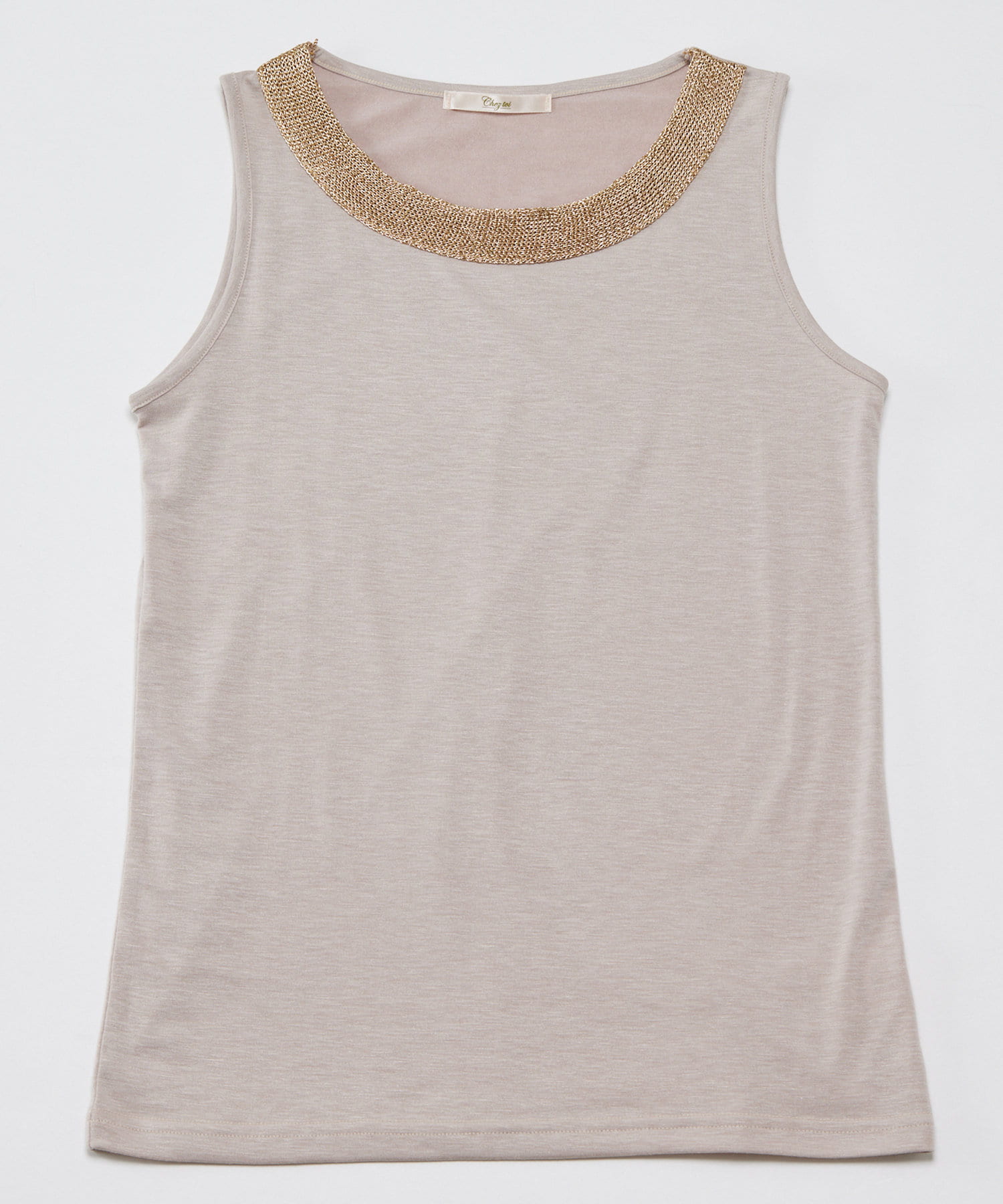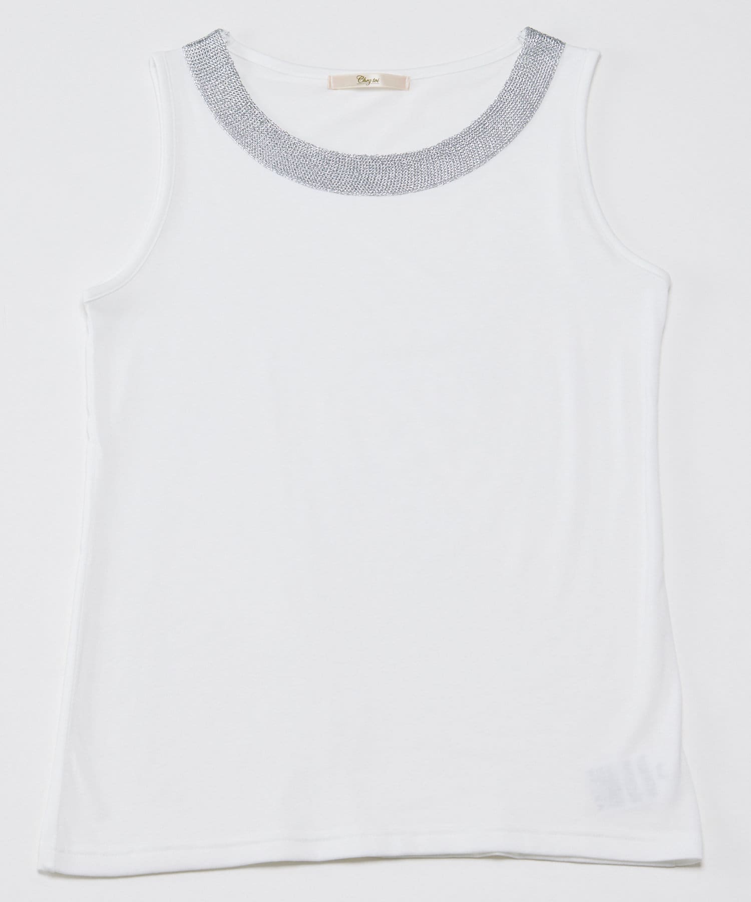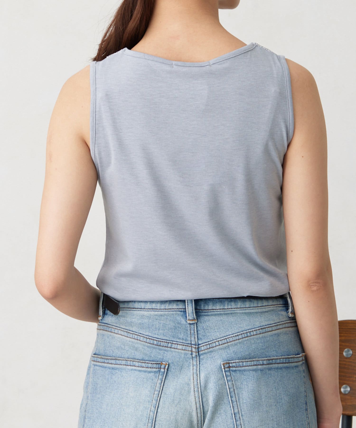 施し大人キレイ目タンクトップ。シンプルながらネックレスのように