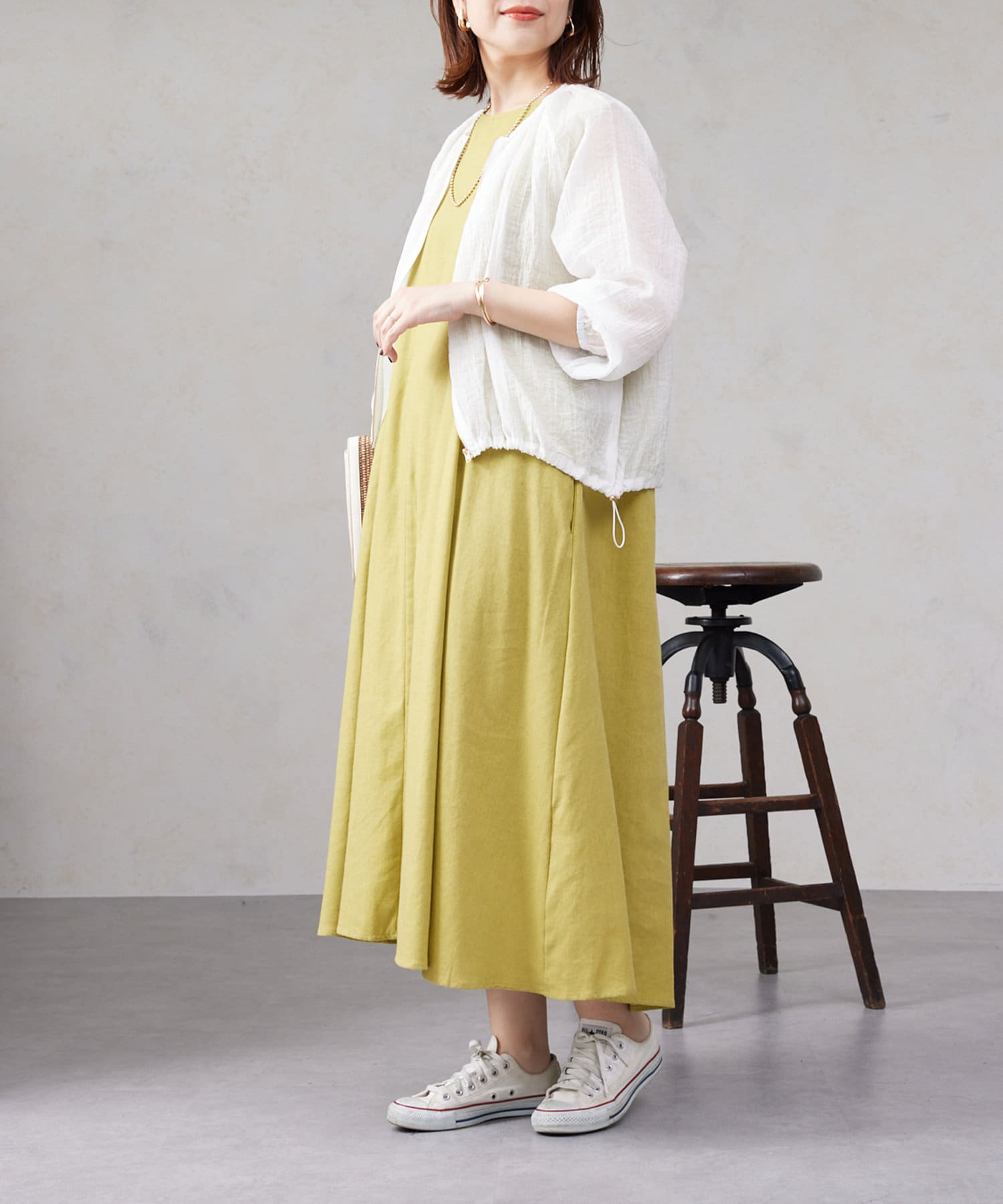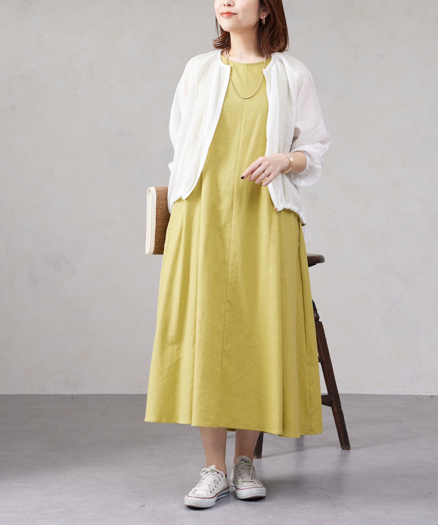 スカートやワンピースなどフェミニンなアイテムと合わせて