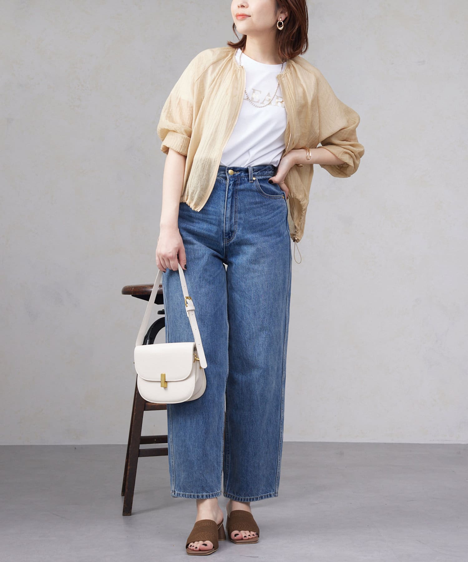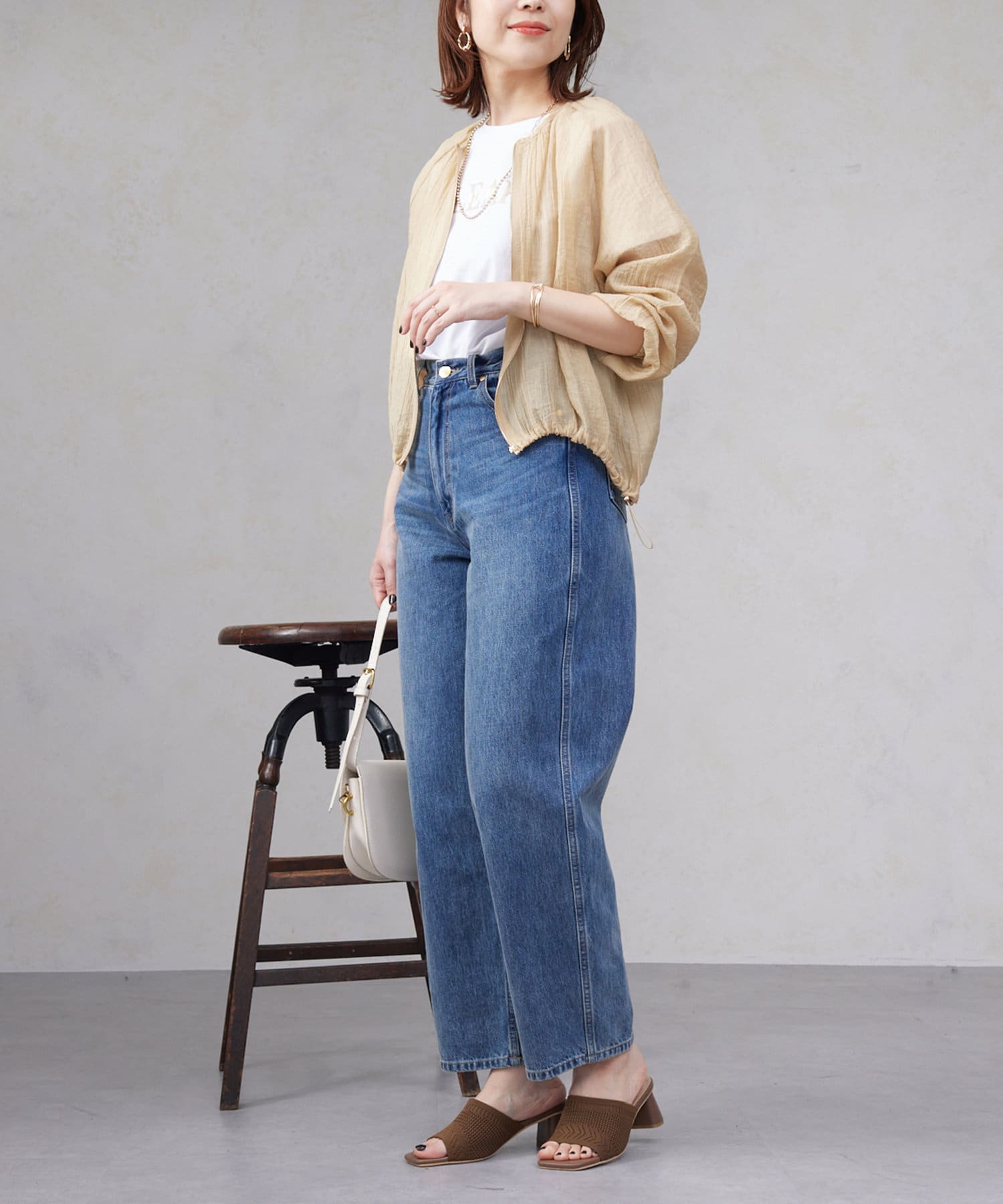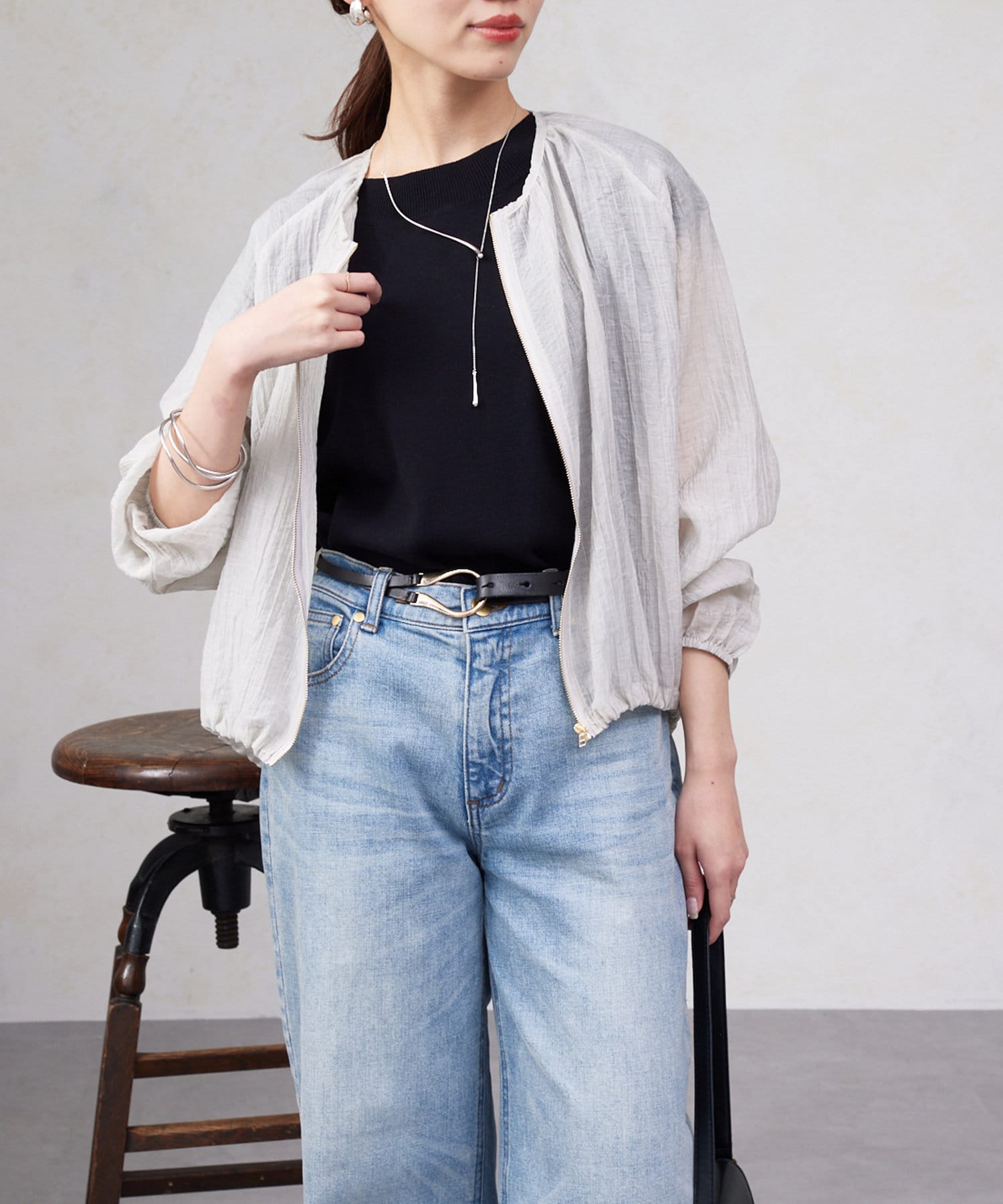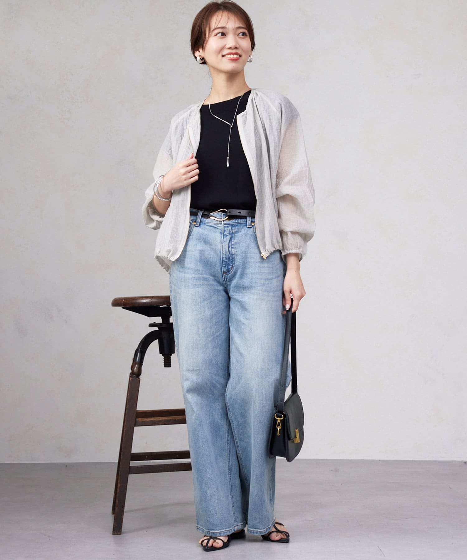 シンプルにデニムやワイドパンツなどと合わせてデイリー使用に。