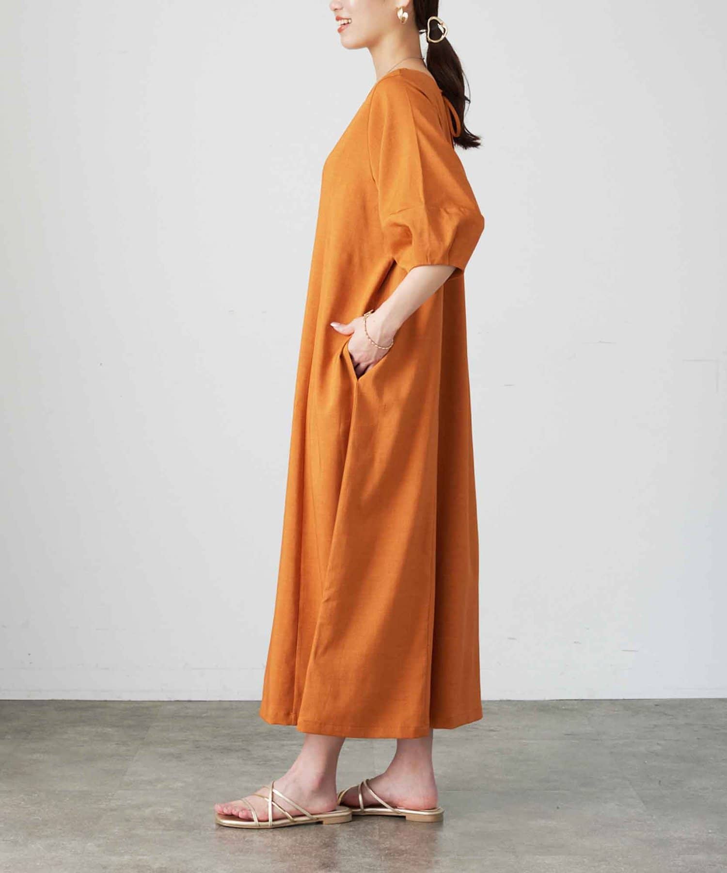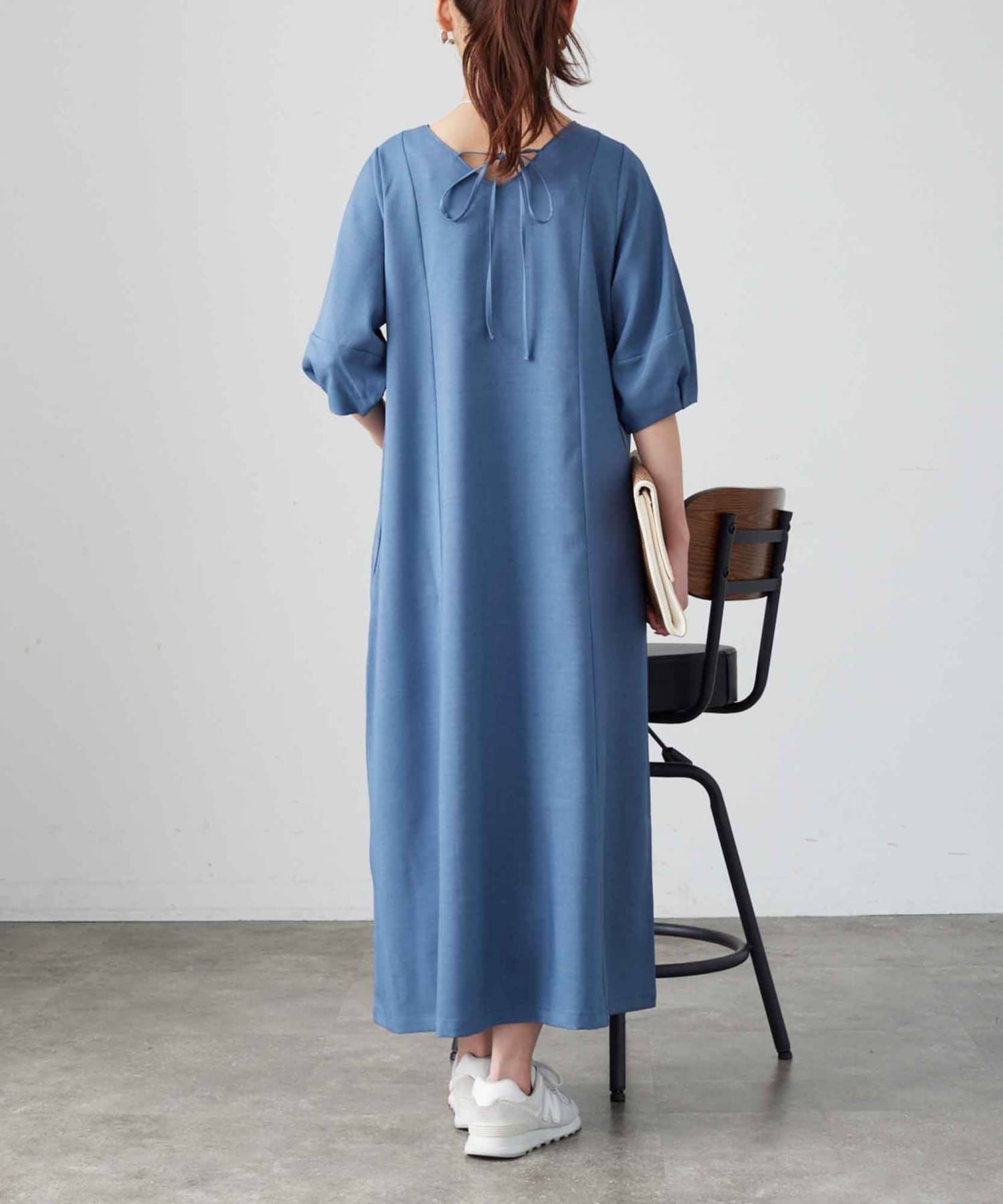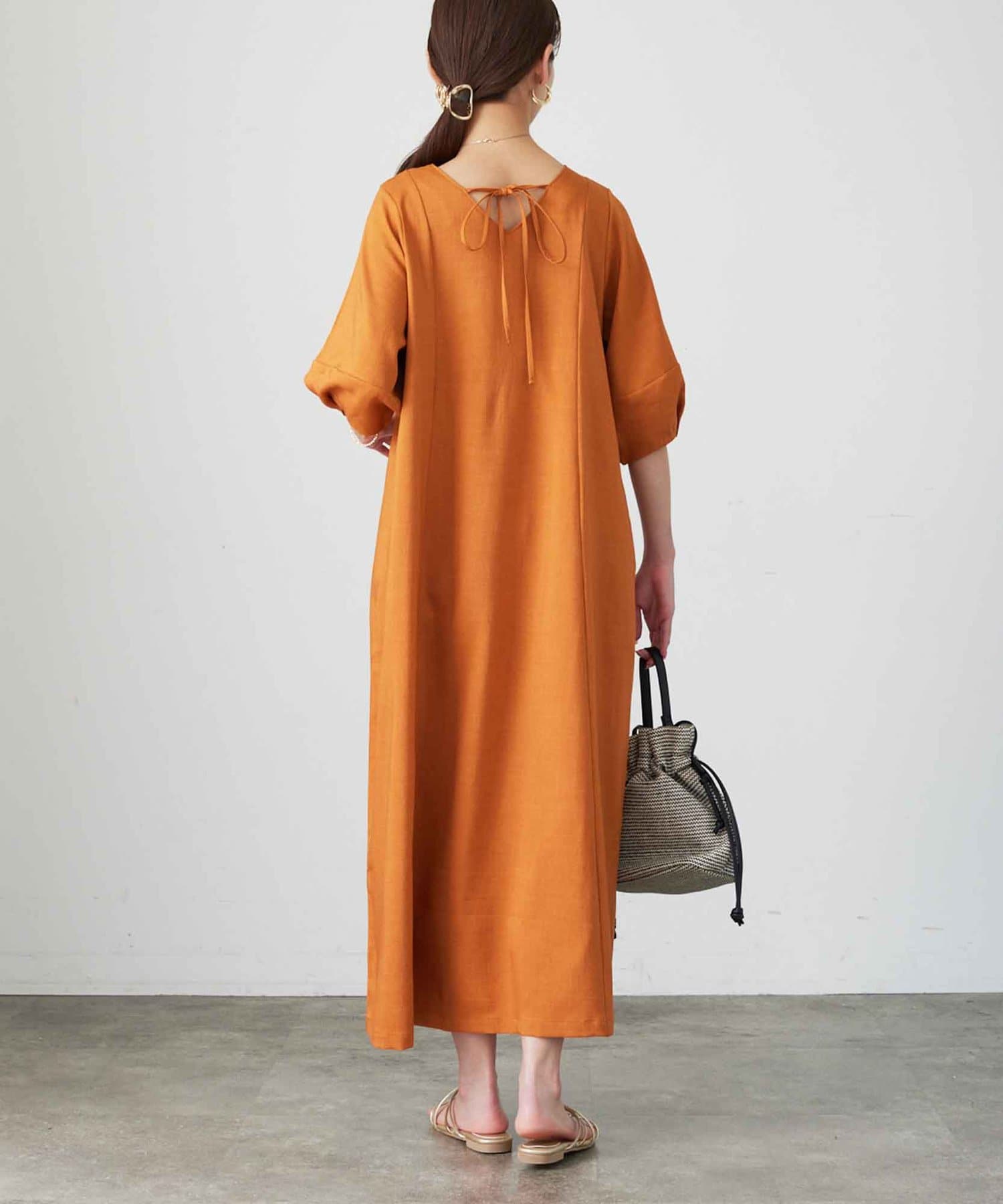 ボリューム袖×後ろリボンの大人かわいいワンピース