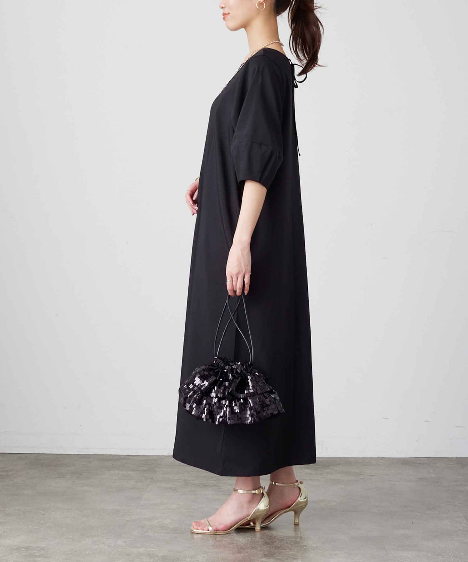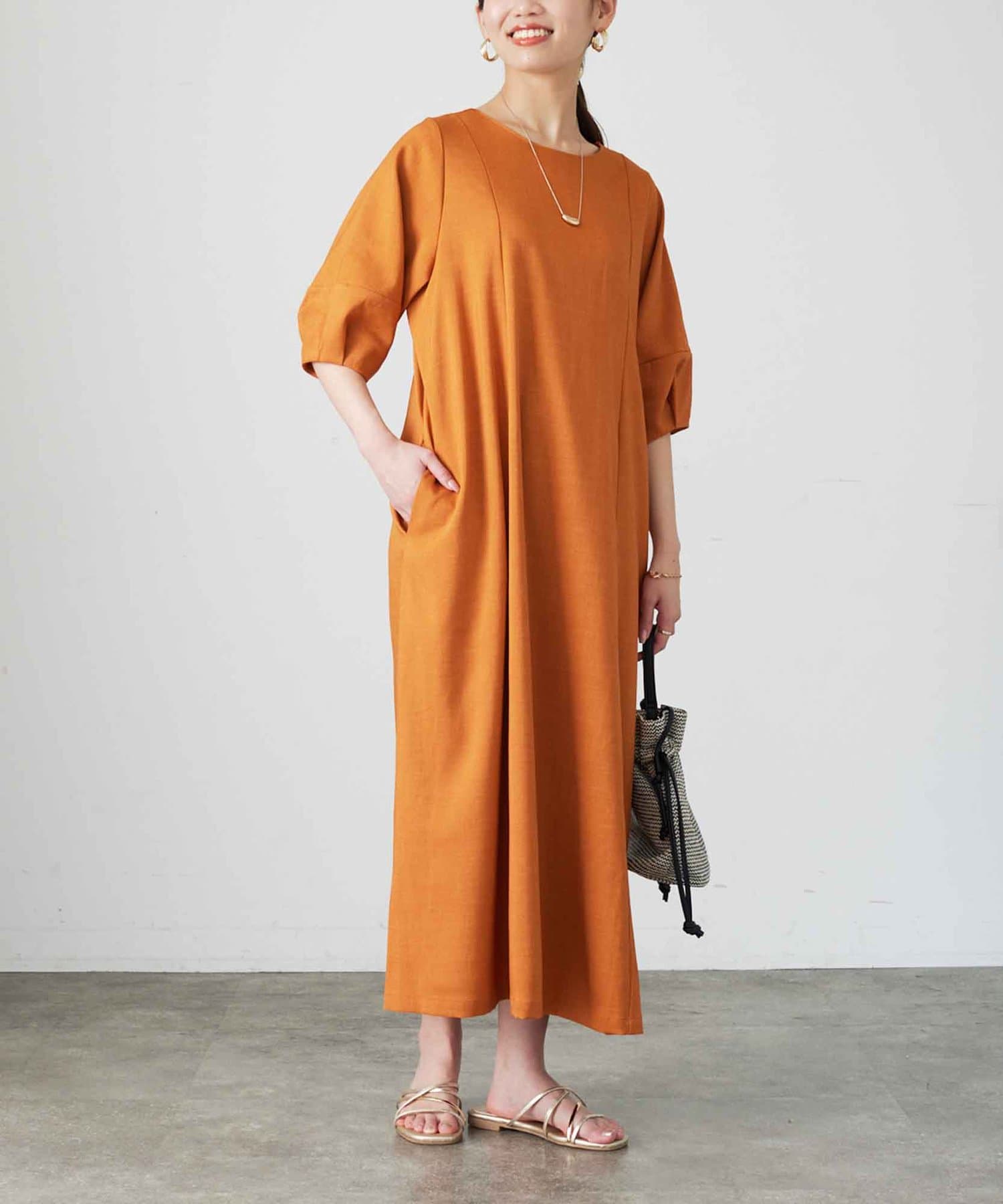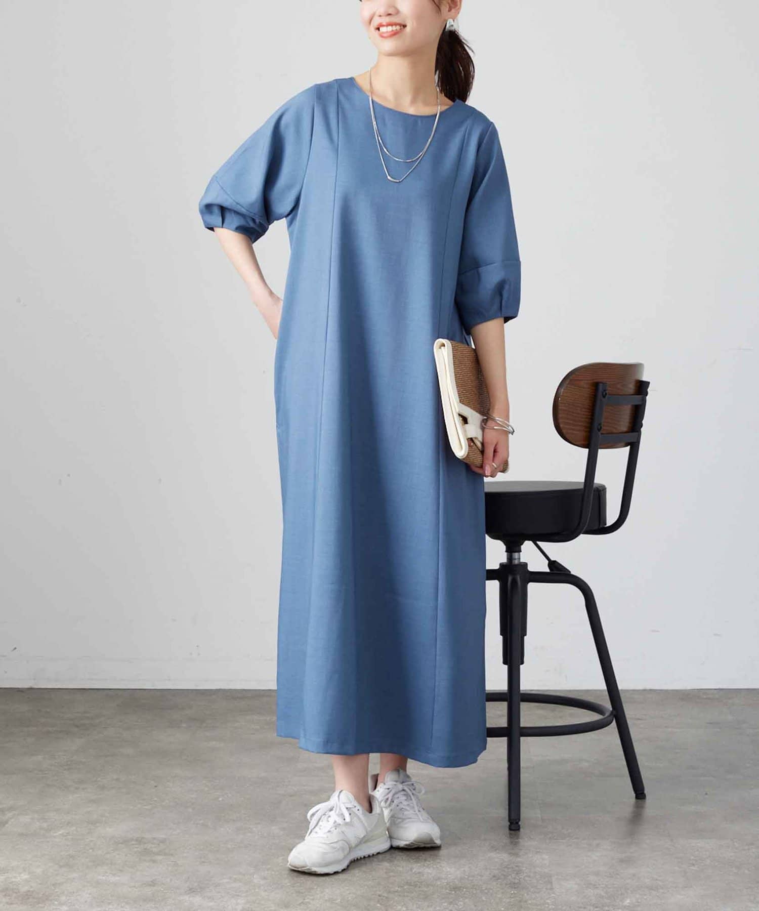 ボリューム袖×後ろリボンの大人かわいいワンピース