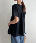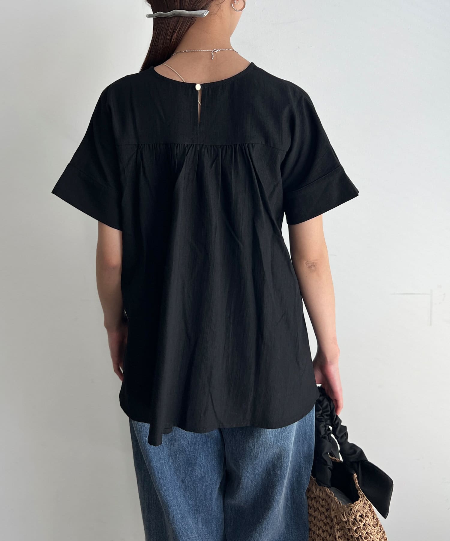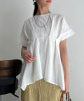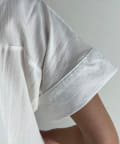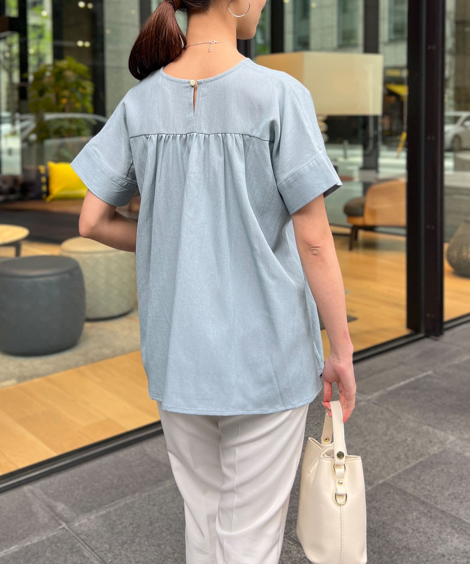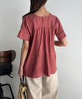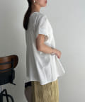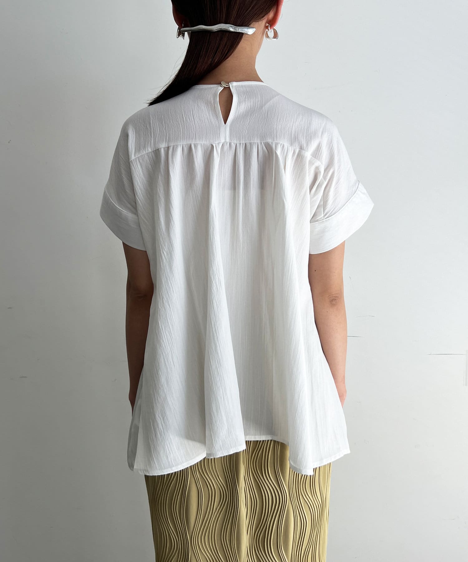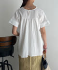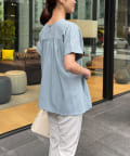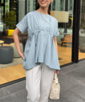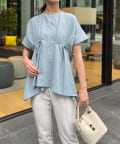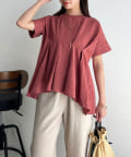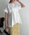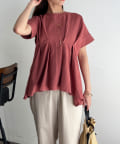ウエストにタックが施されたペプラムブラウス。