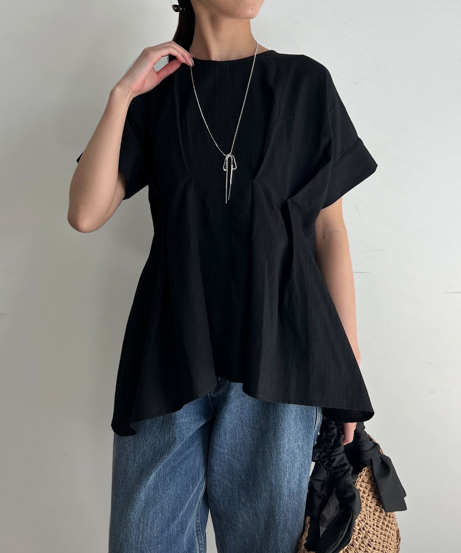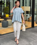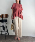 【マイナス3キロ見え】ウエストタックペプラムブラウス