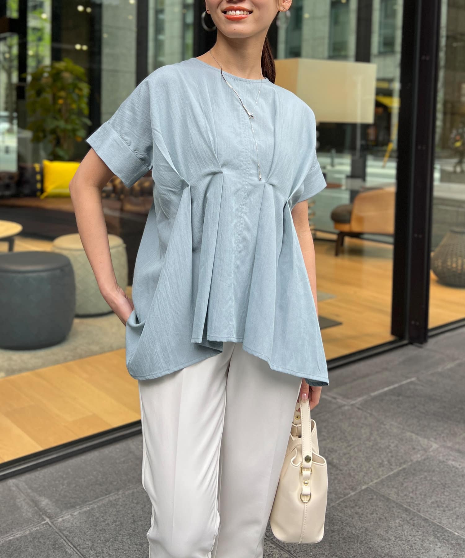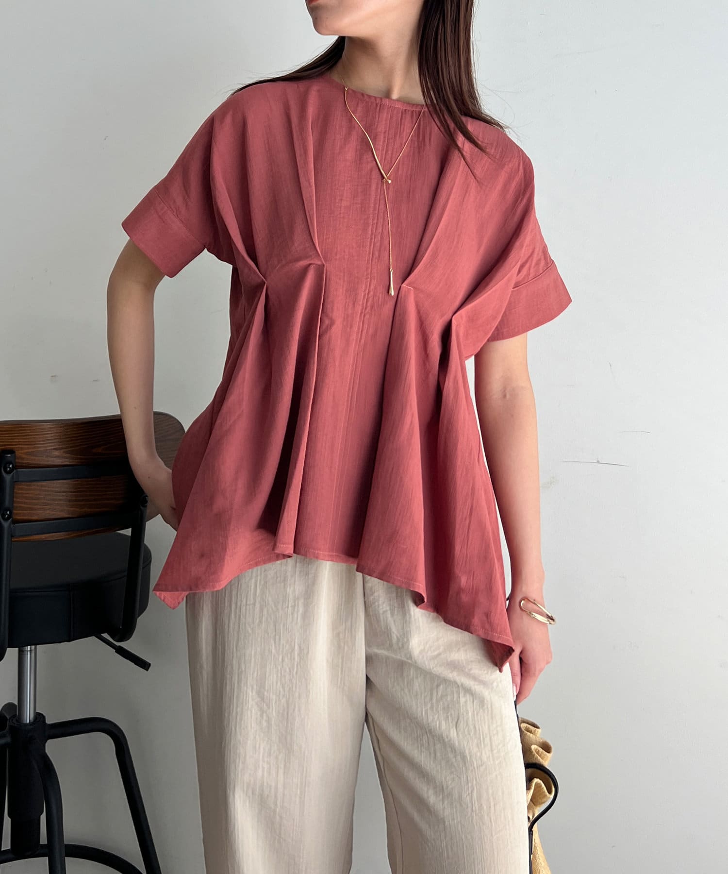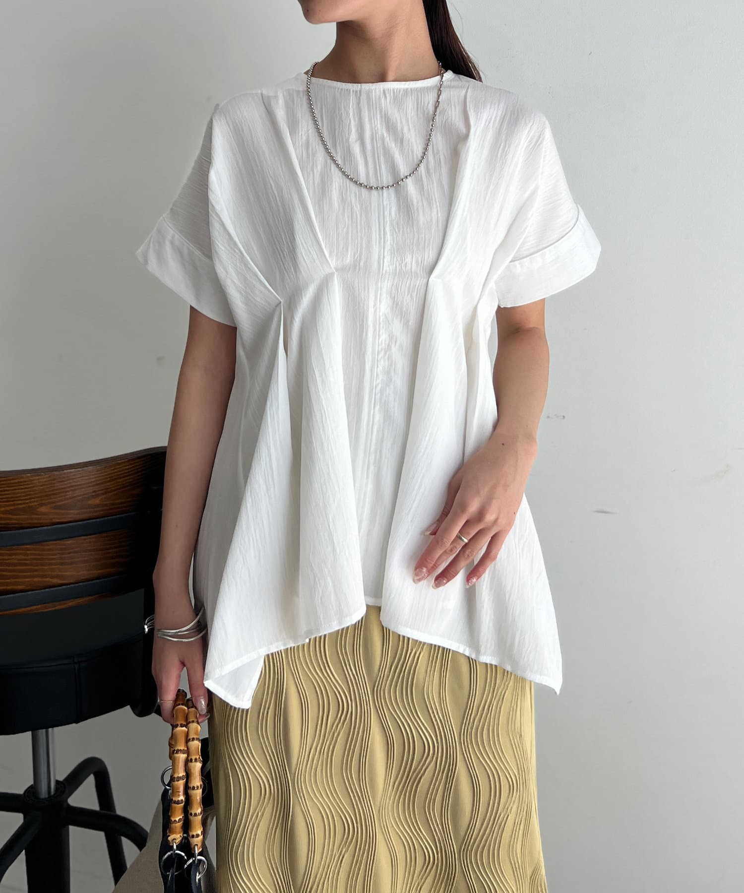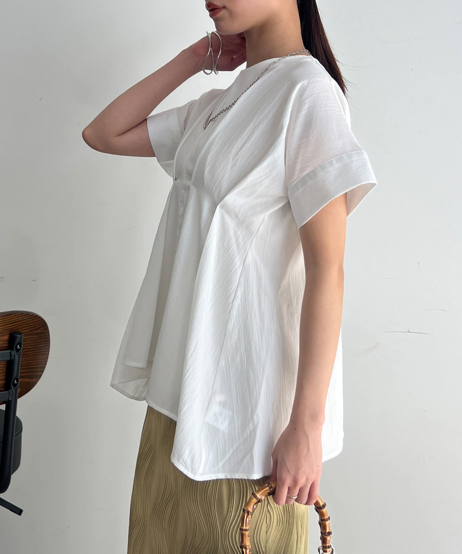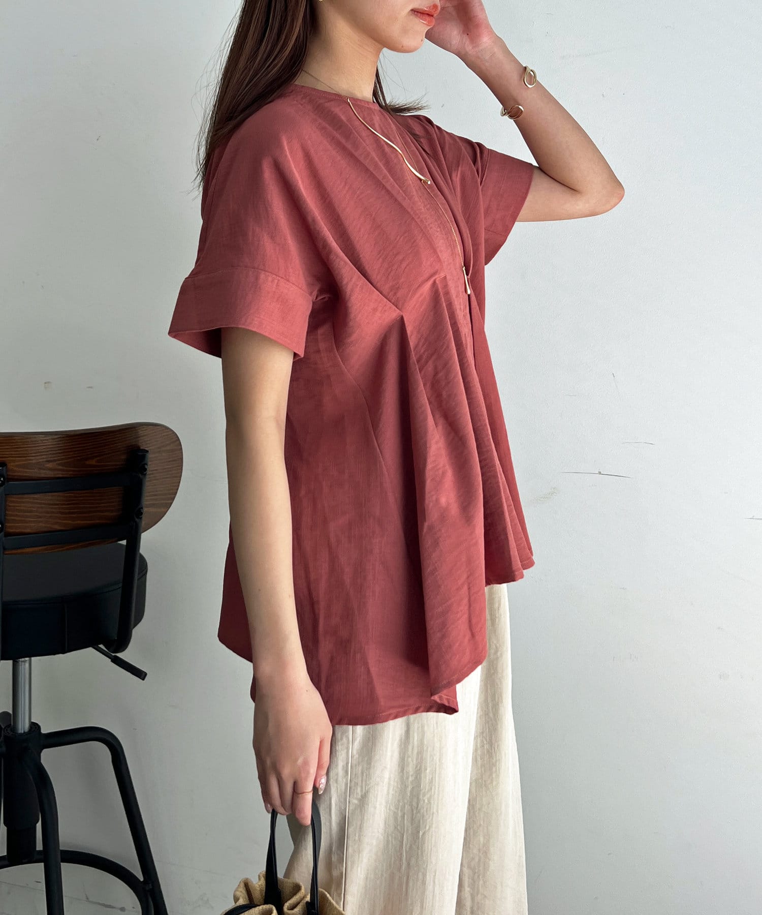 タックが施され身幅を細く見せてくれるので華奢見え効果も◎