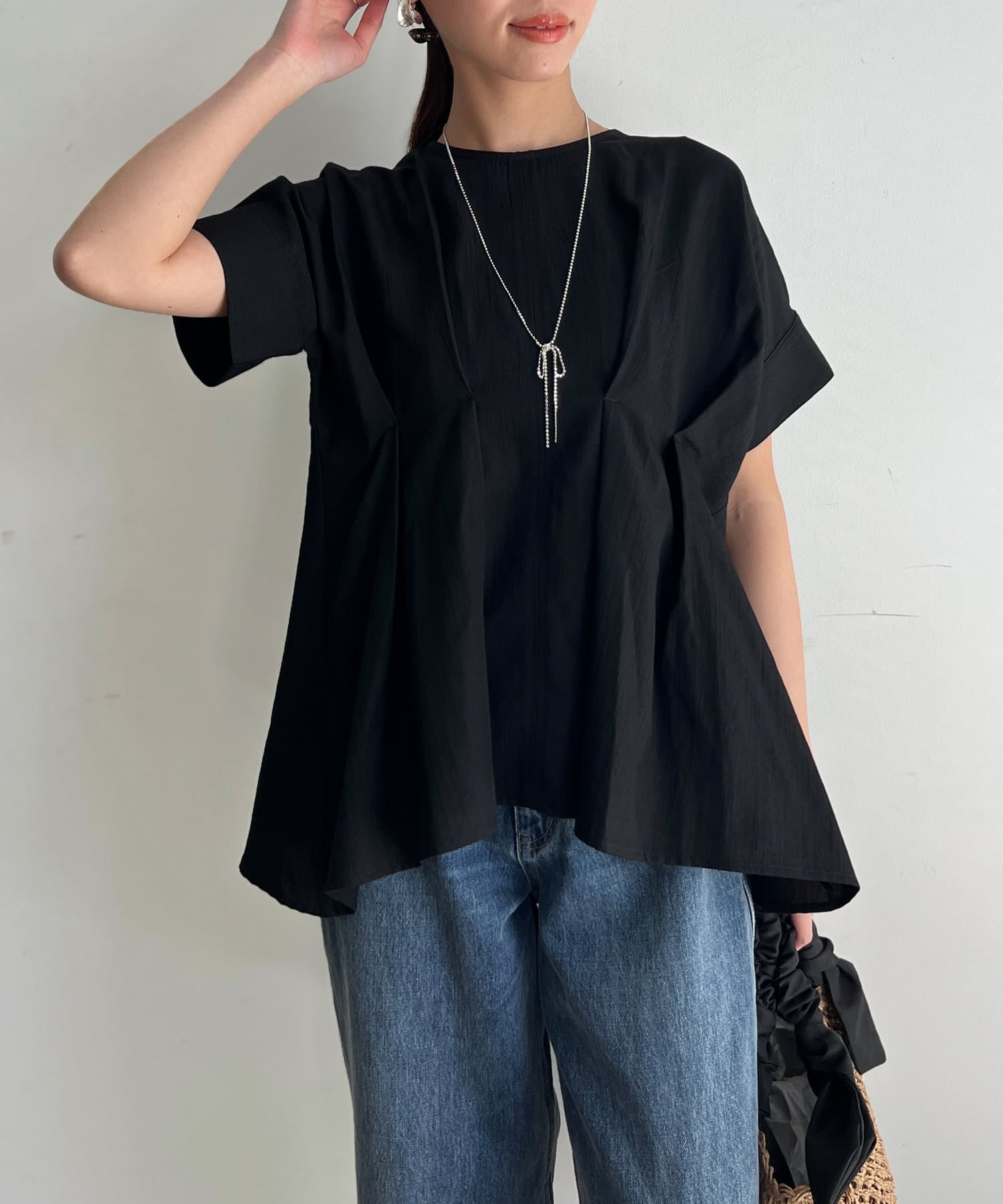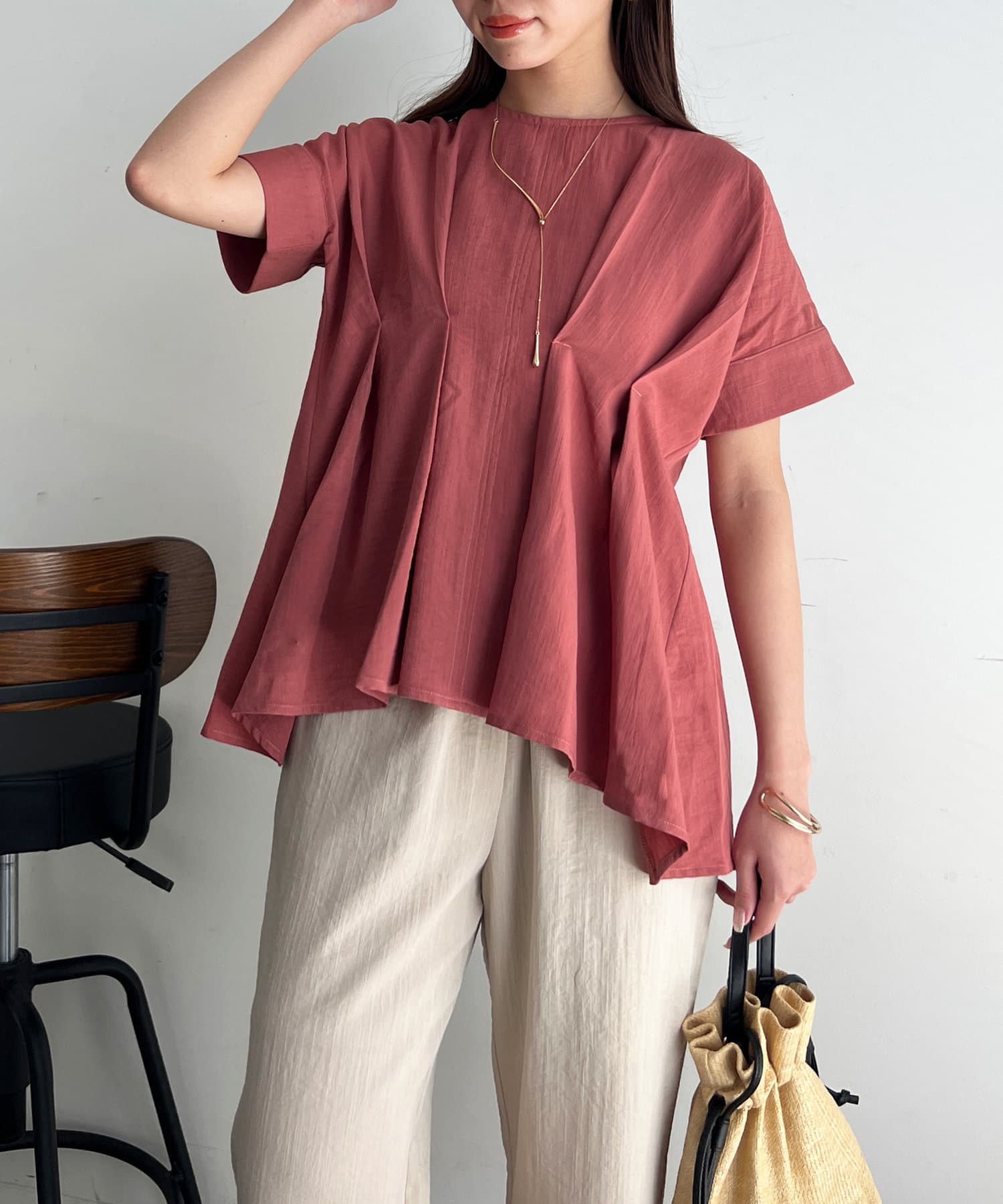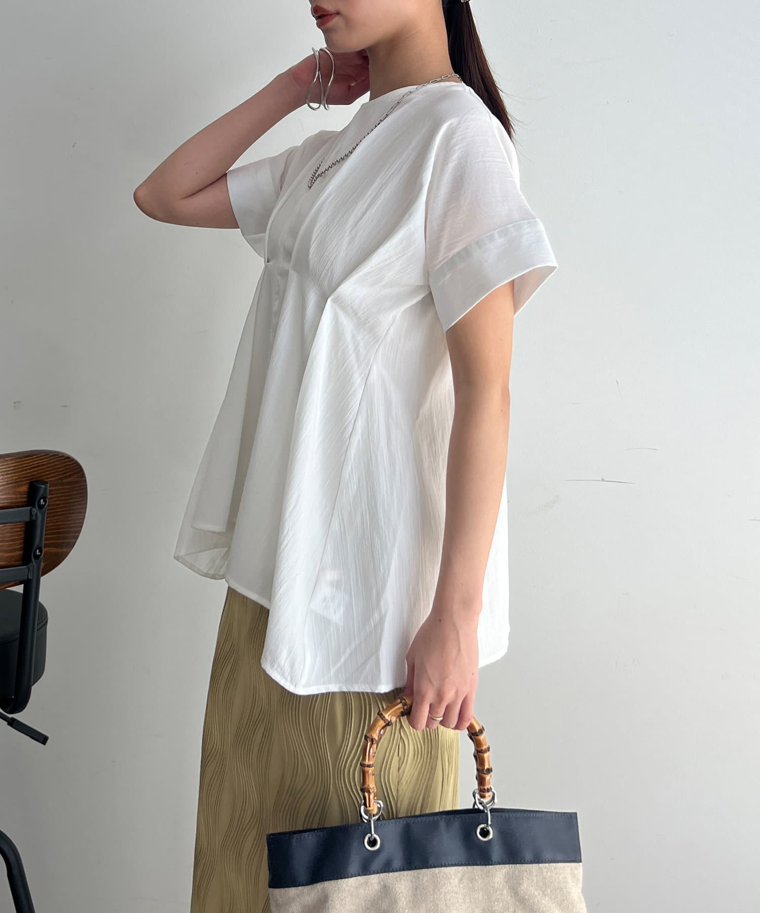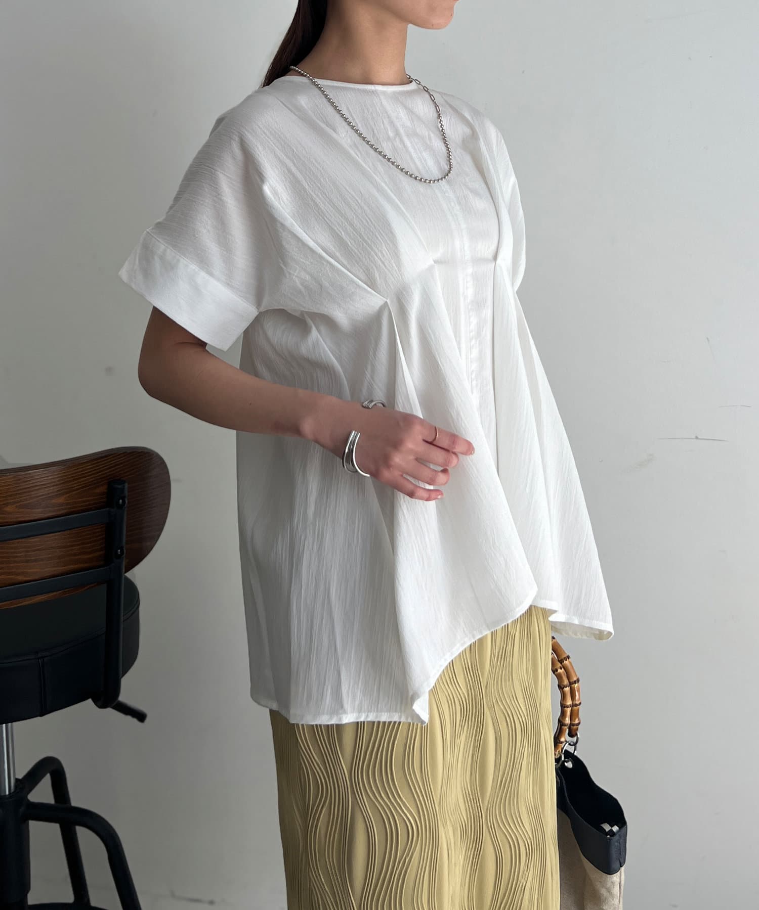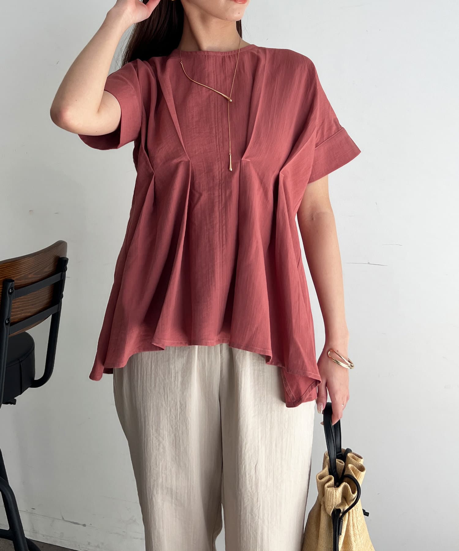 タックが施され身幅を細く見せてくれるので華奢見え効果も◎