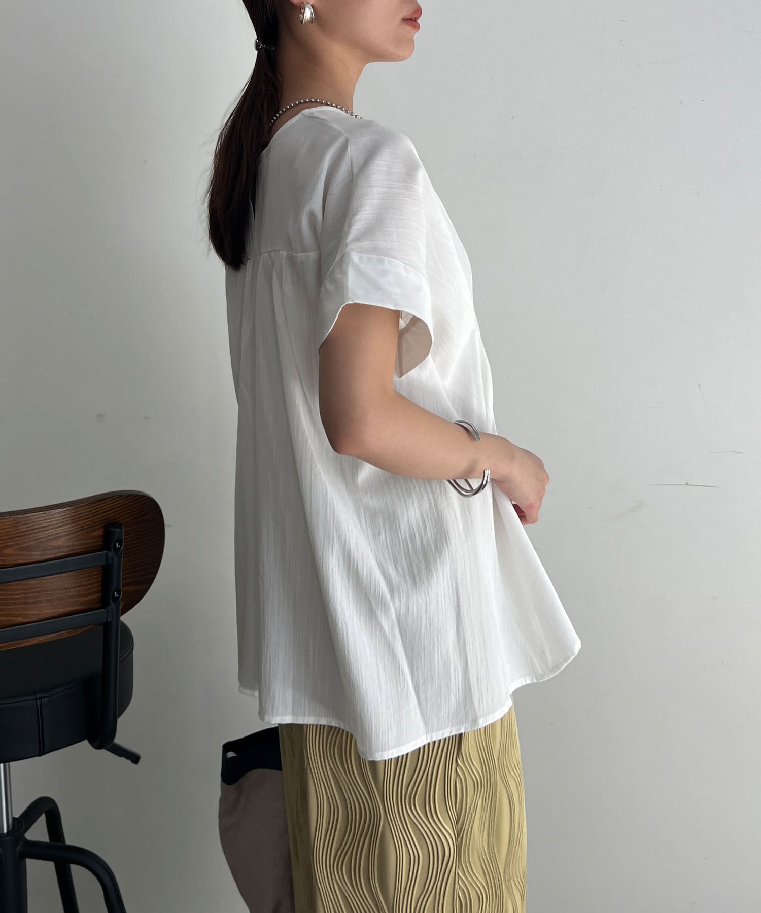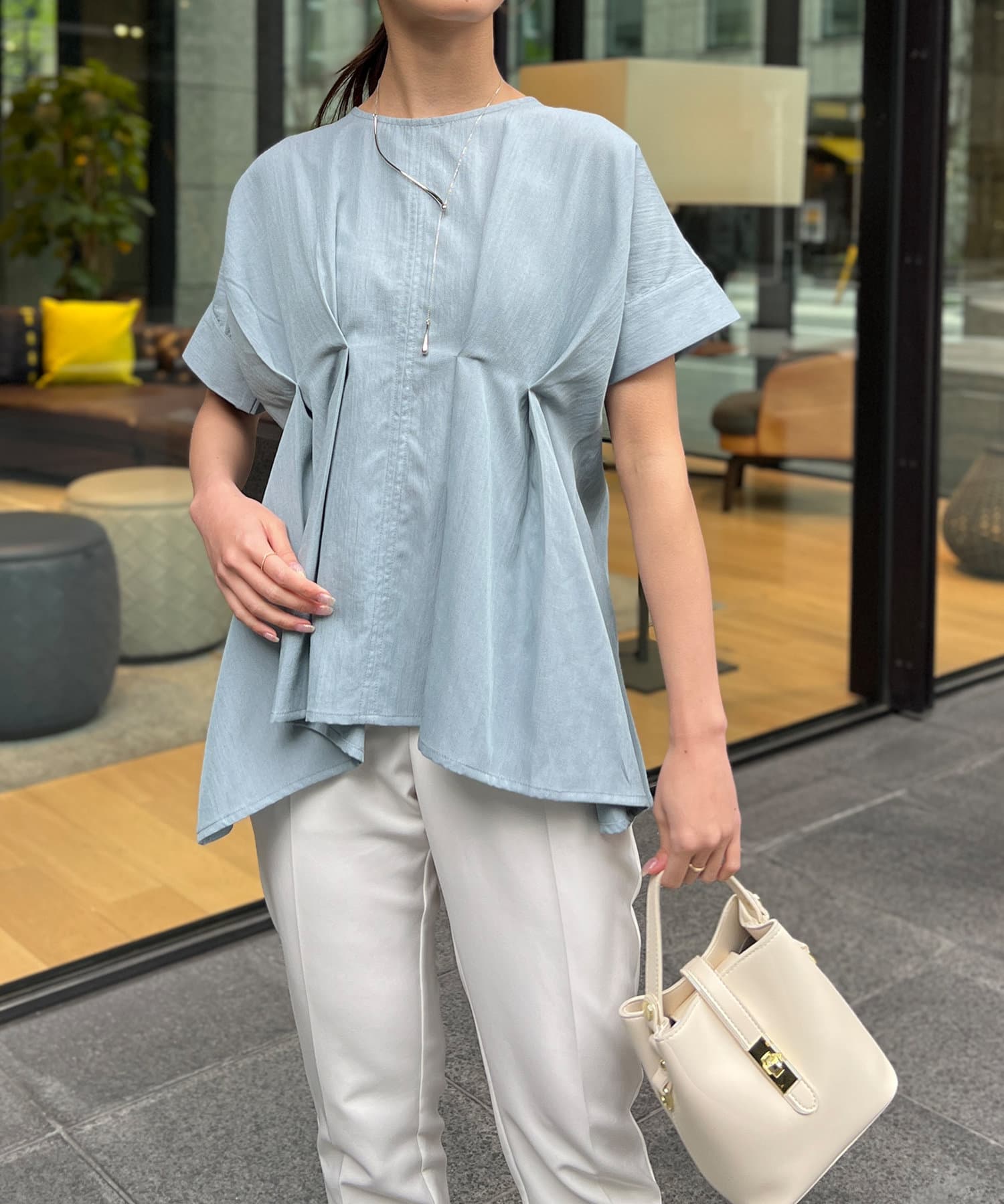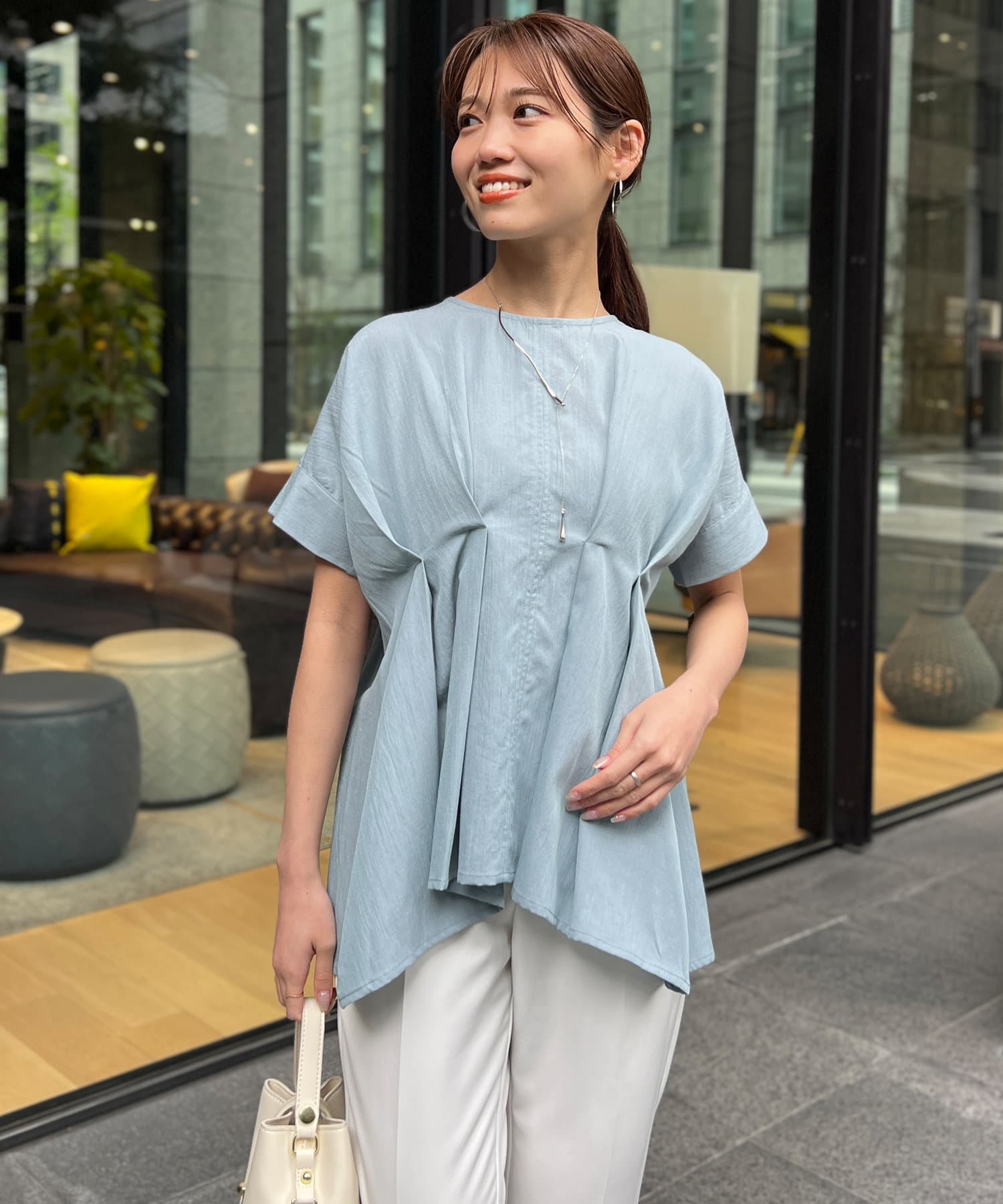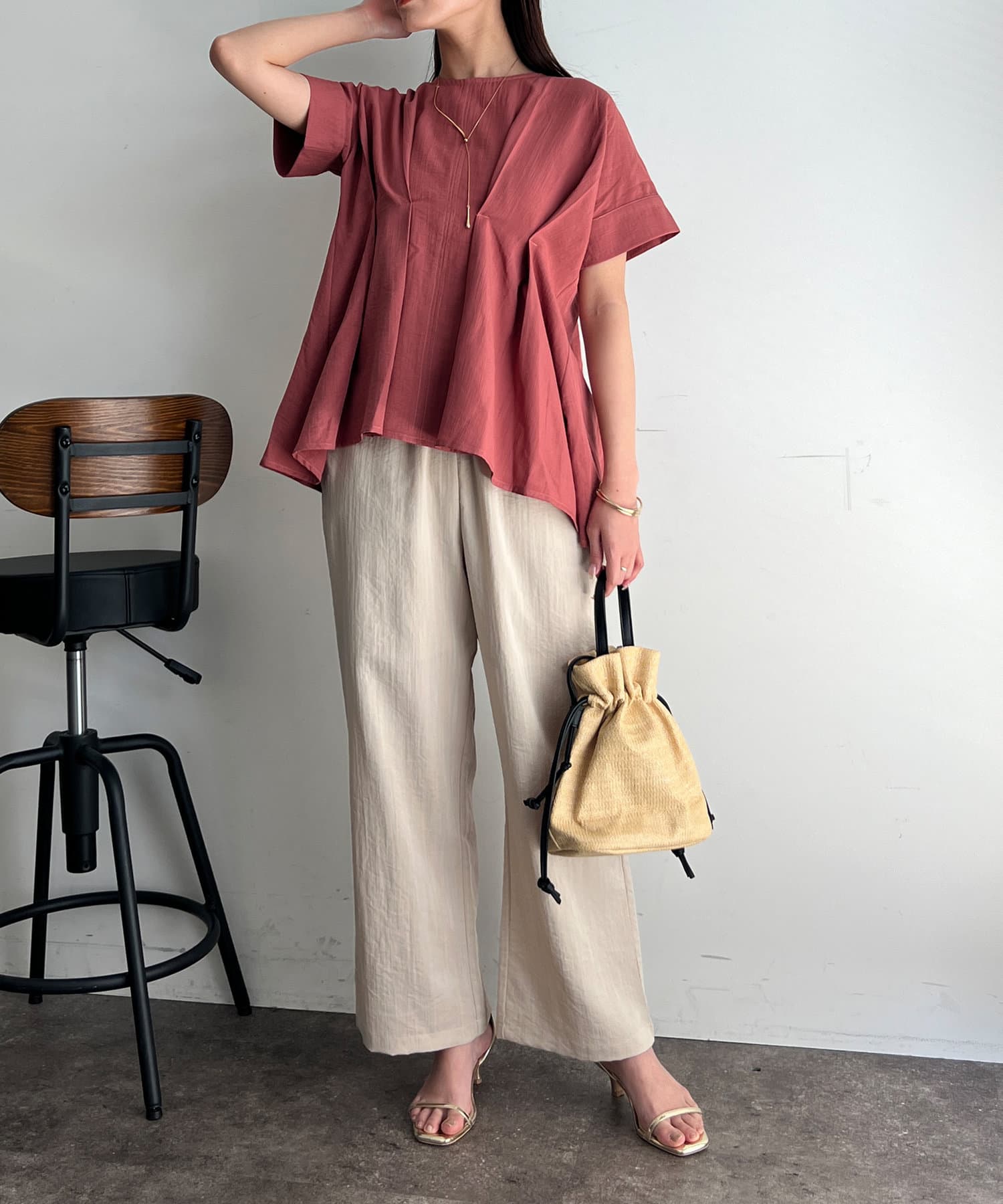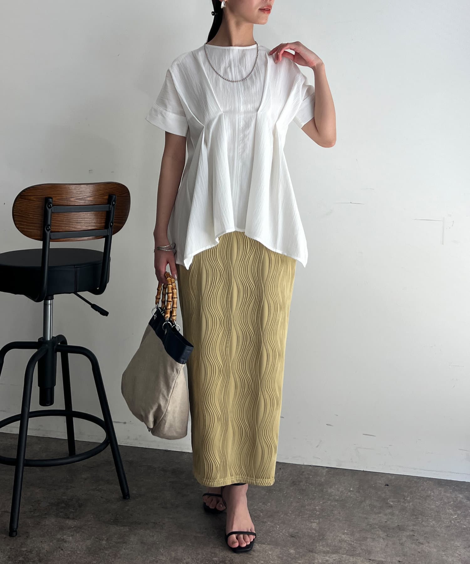 タックが施され身幅を細く見せてくれるので華奢見え効果も◎