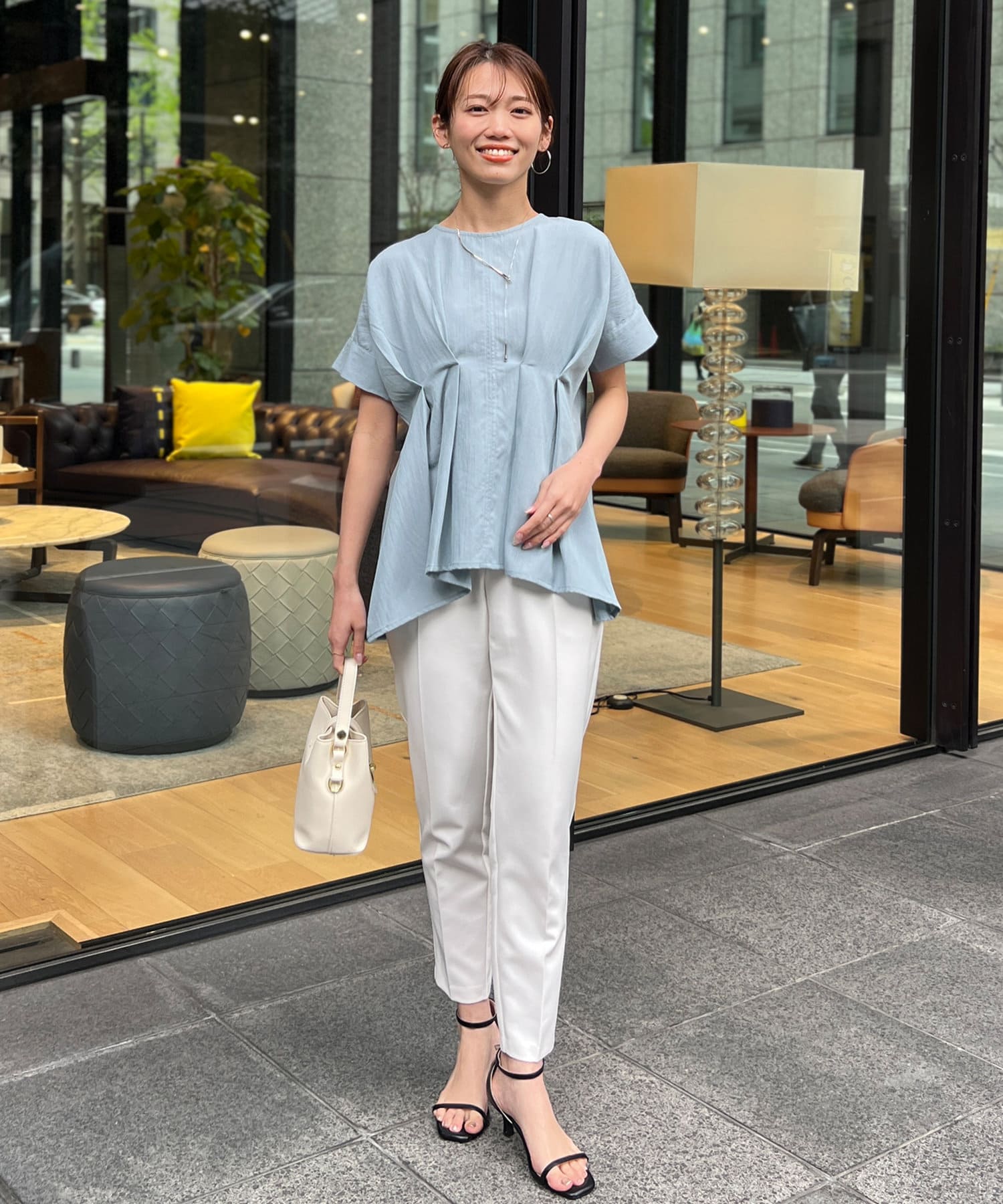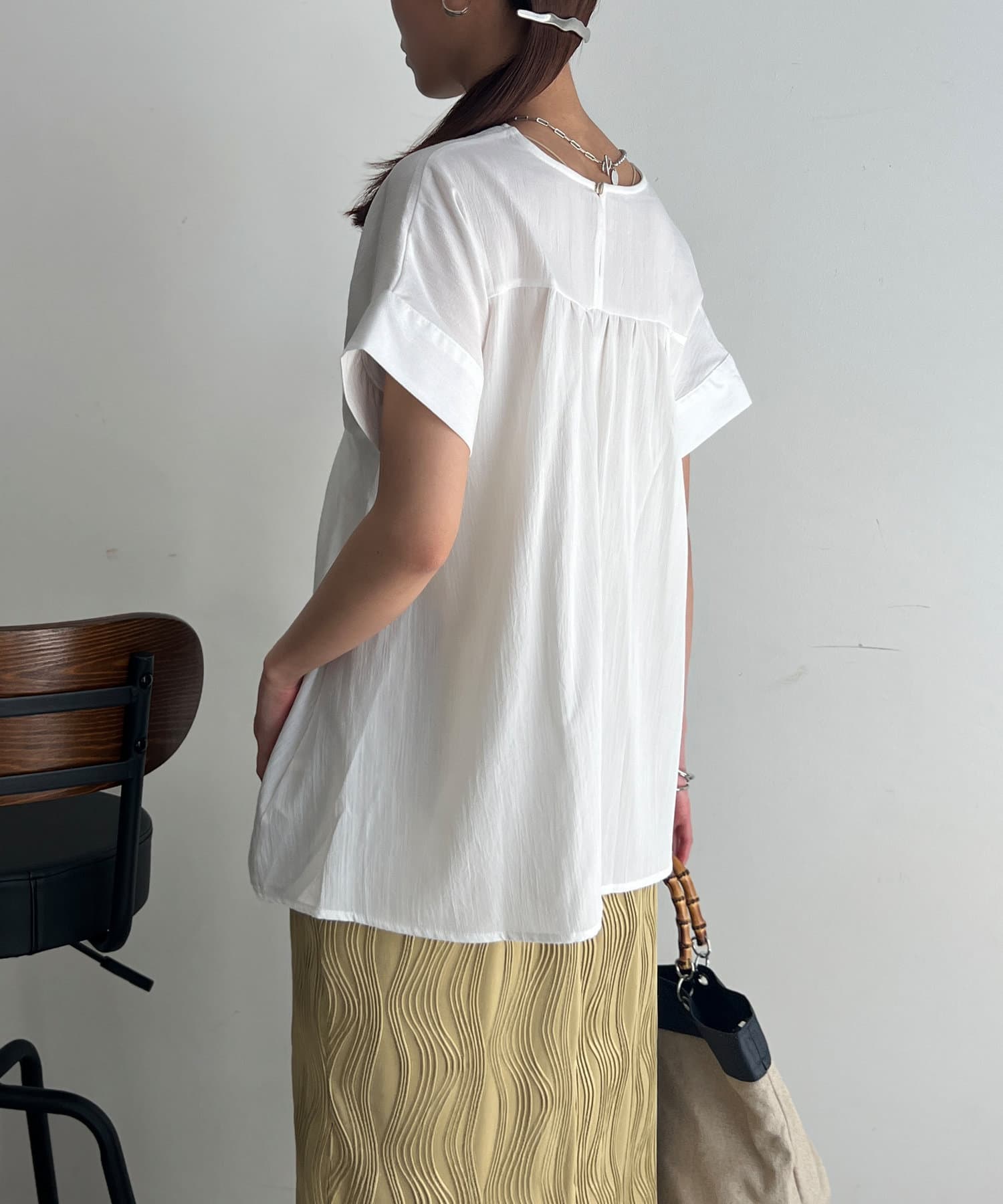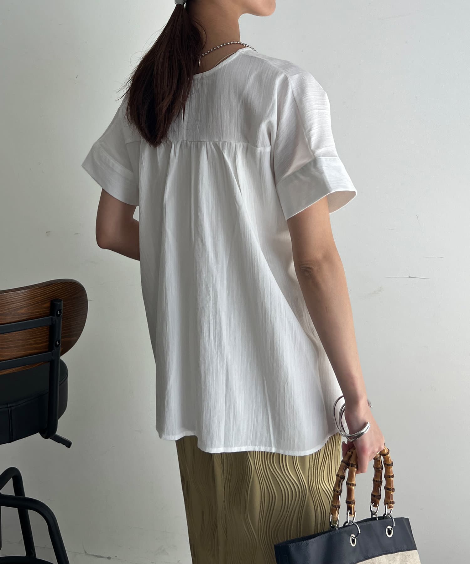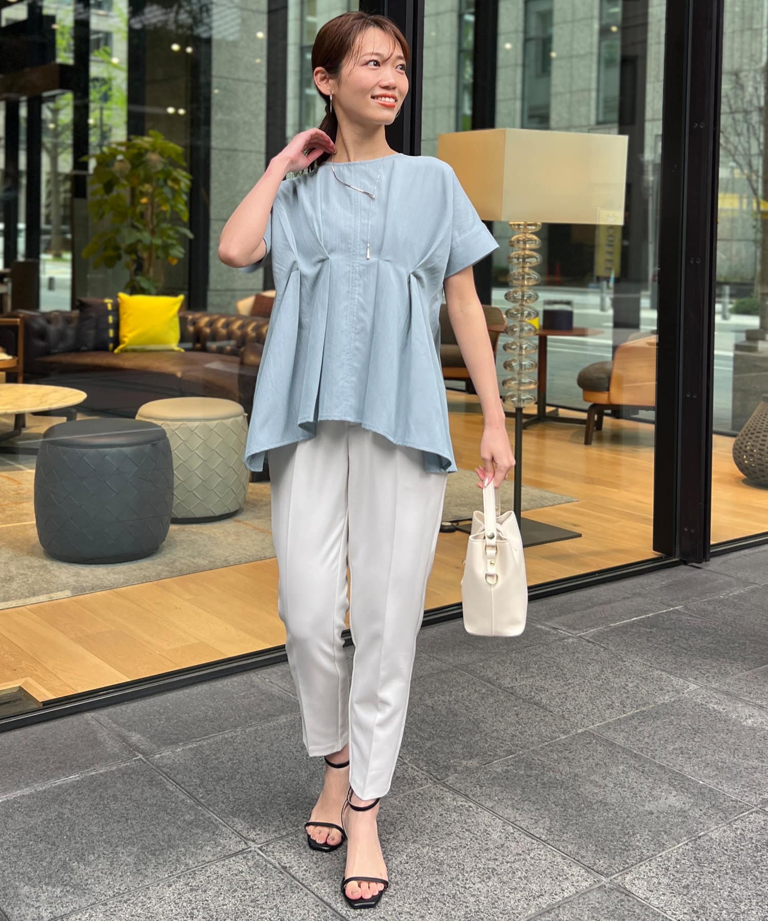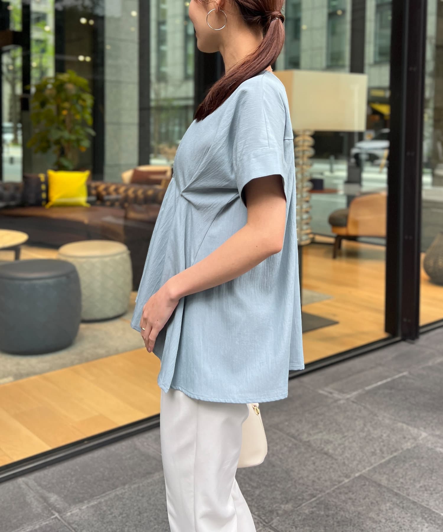 タックが施され身幅を細く見せてくれるので華奢見え効果も◎