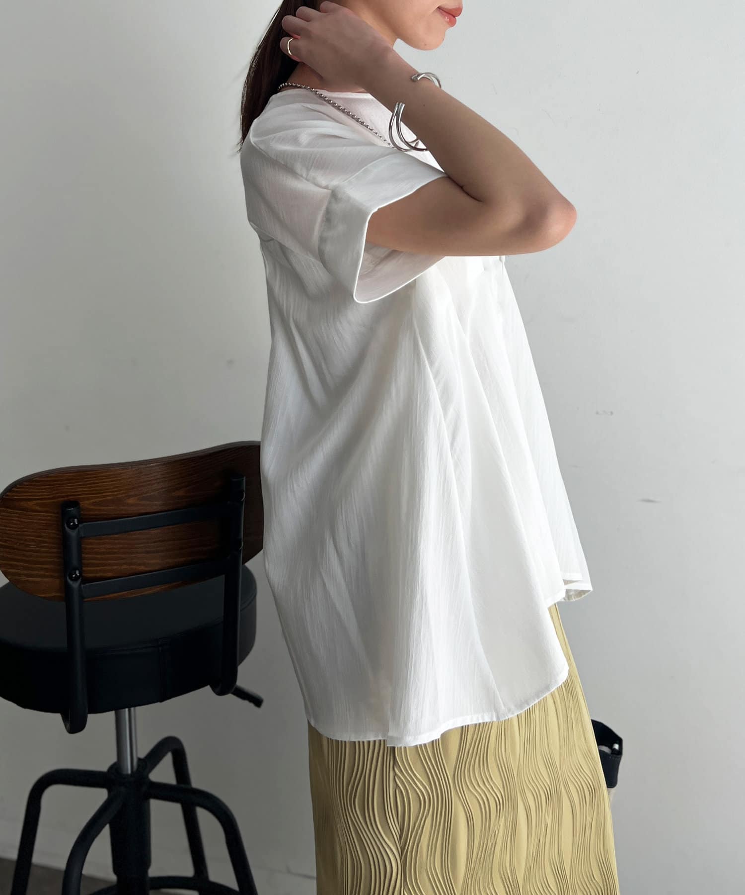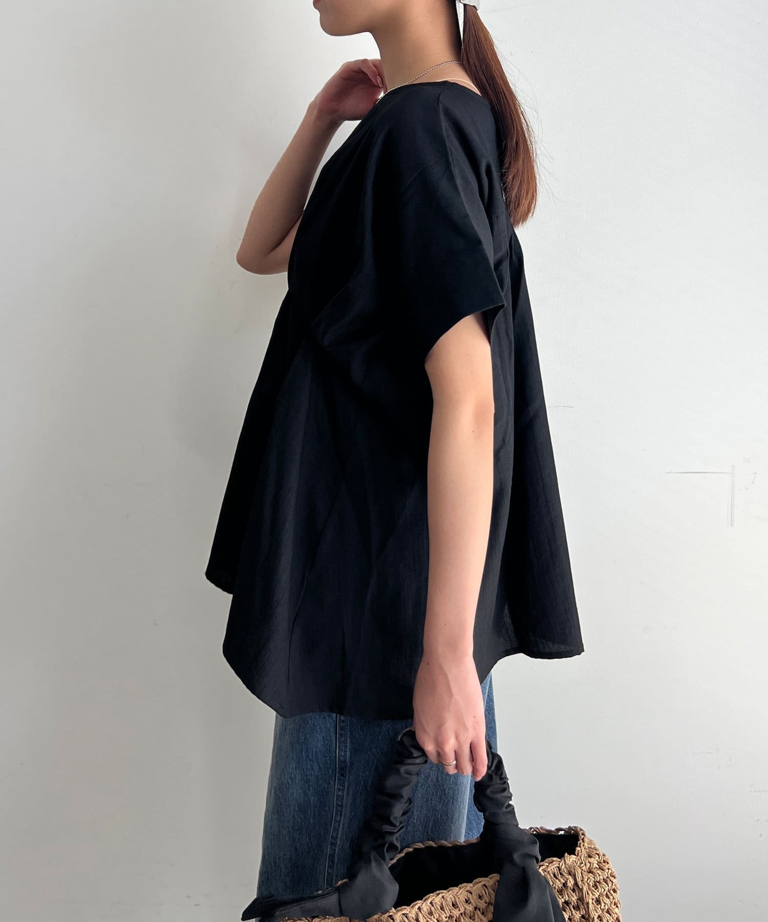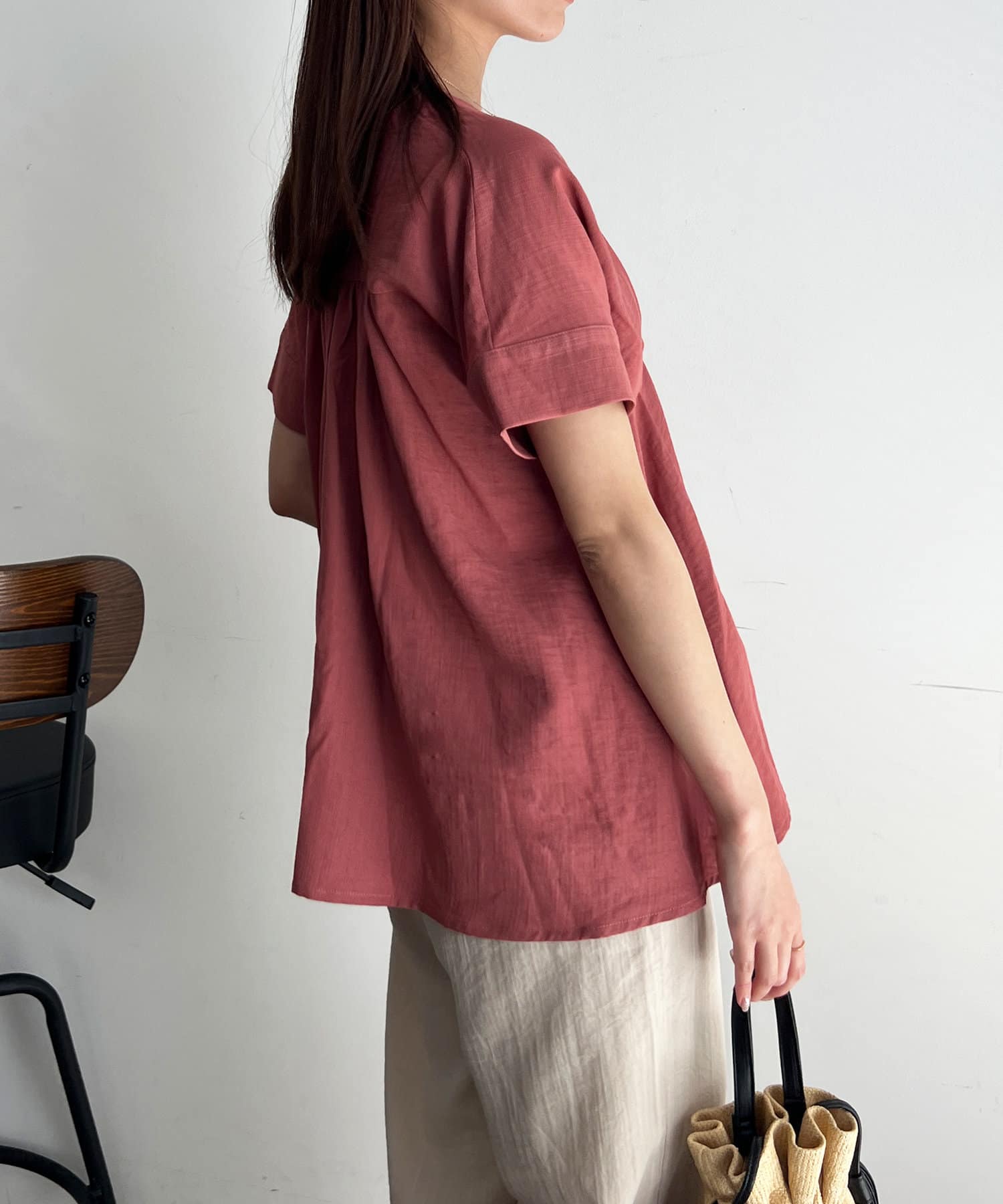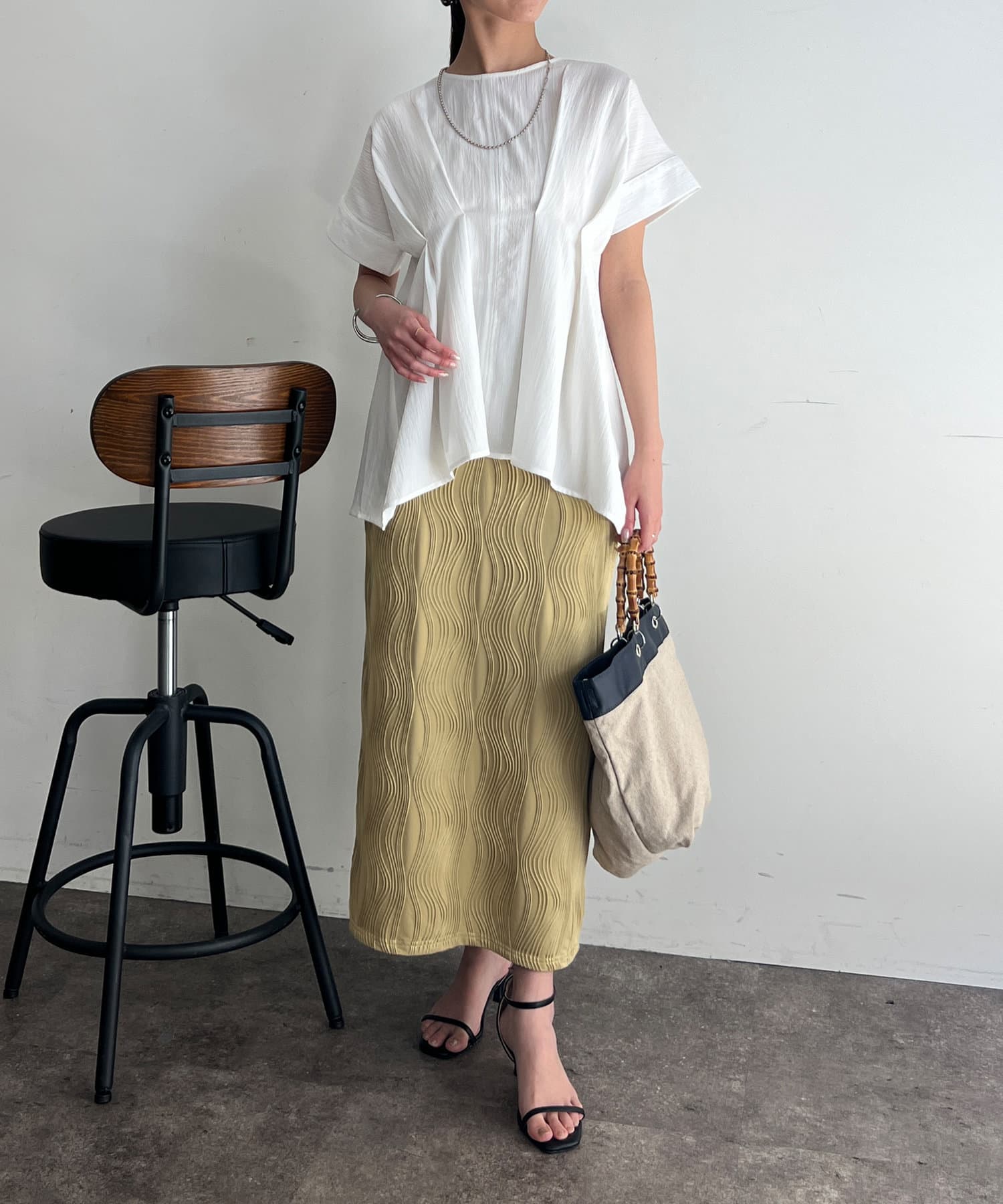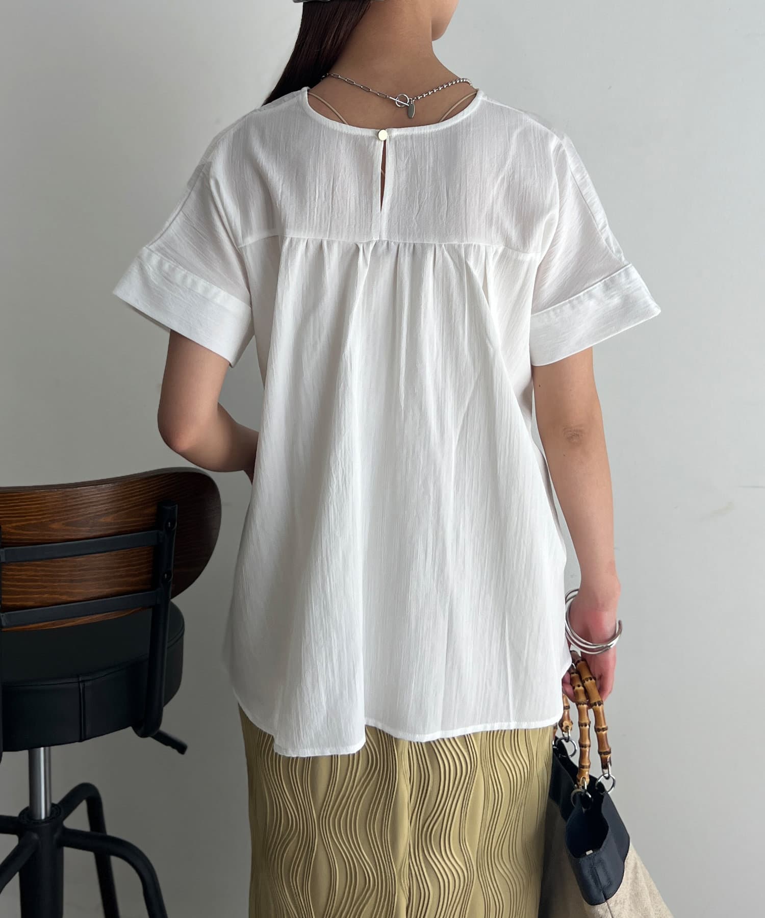 タックが施され身幅を細く見せてくれるので華奢見え効果も◎