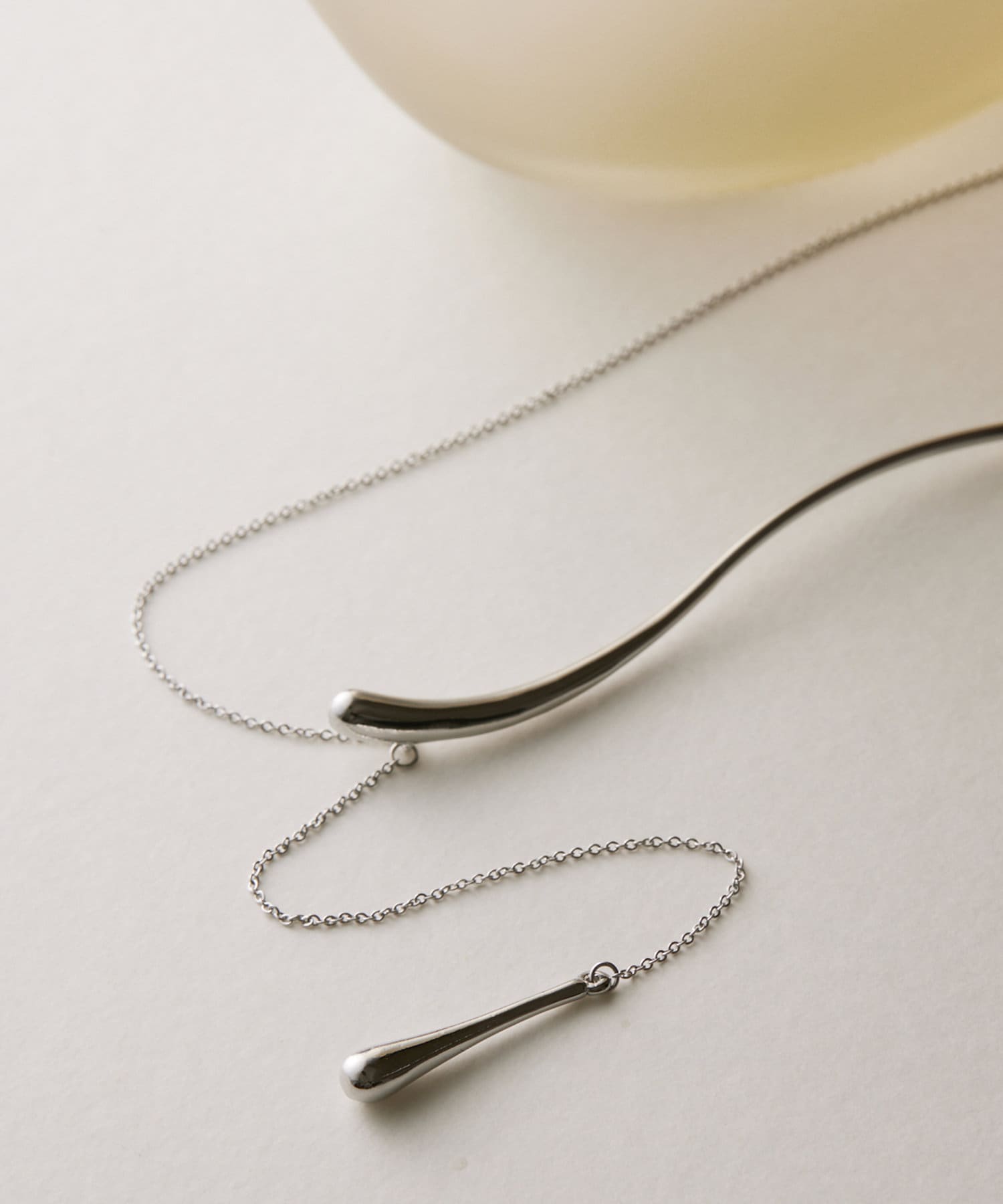 デコルテの開いたトップスにもしっかり映えるデザインで