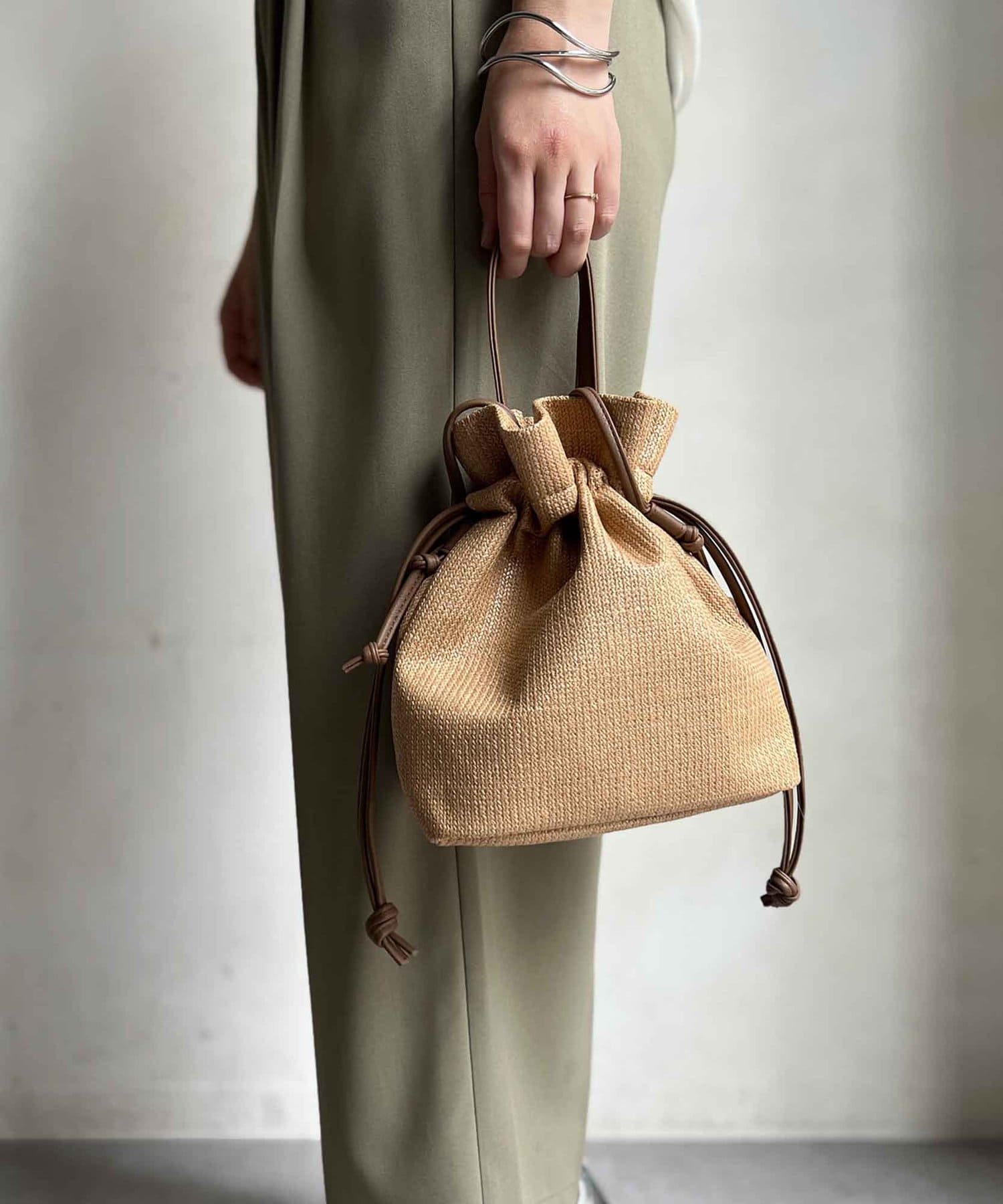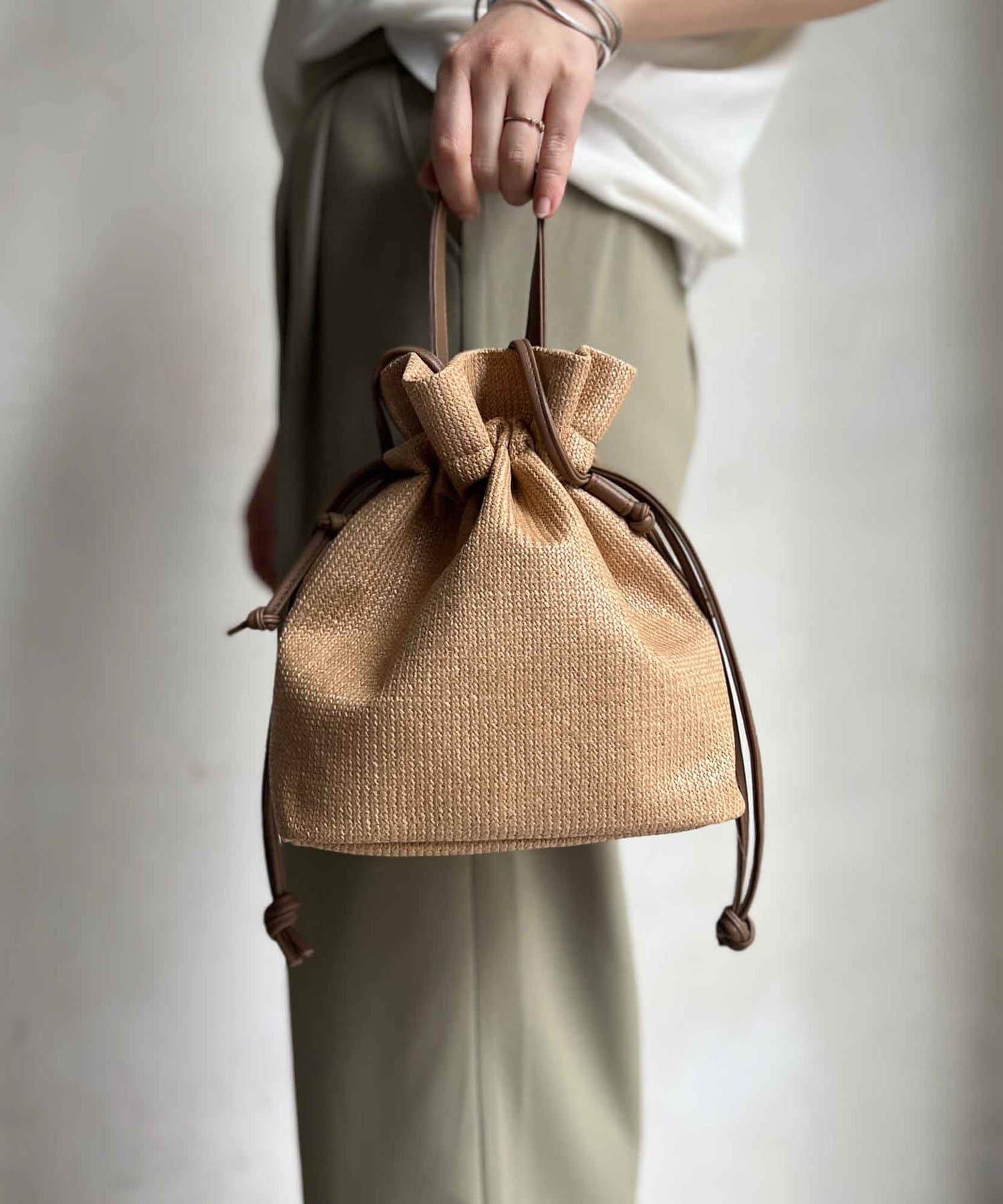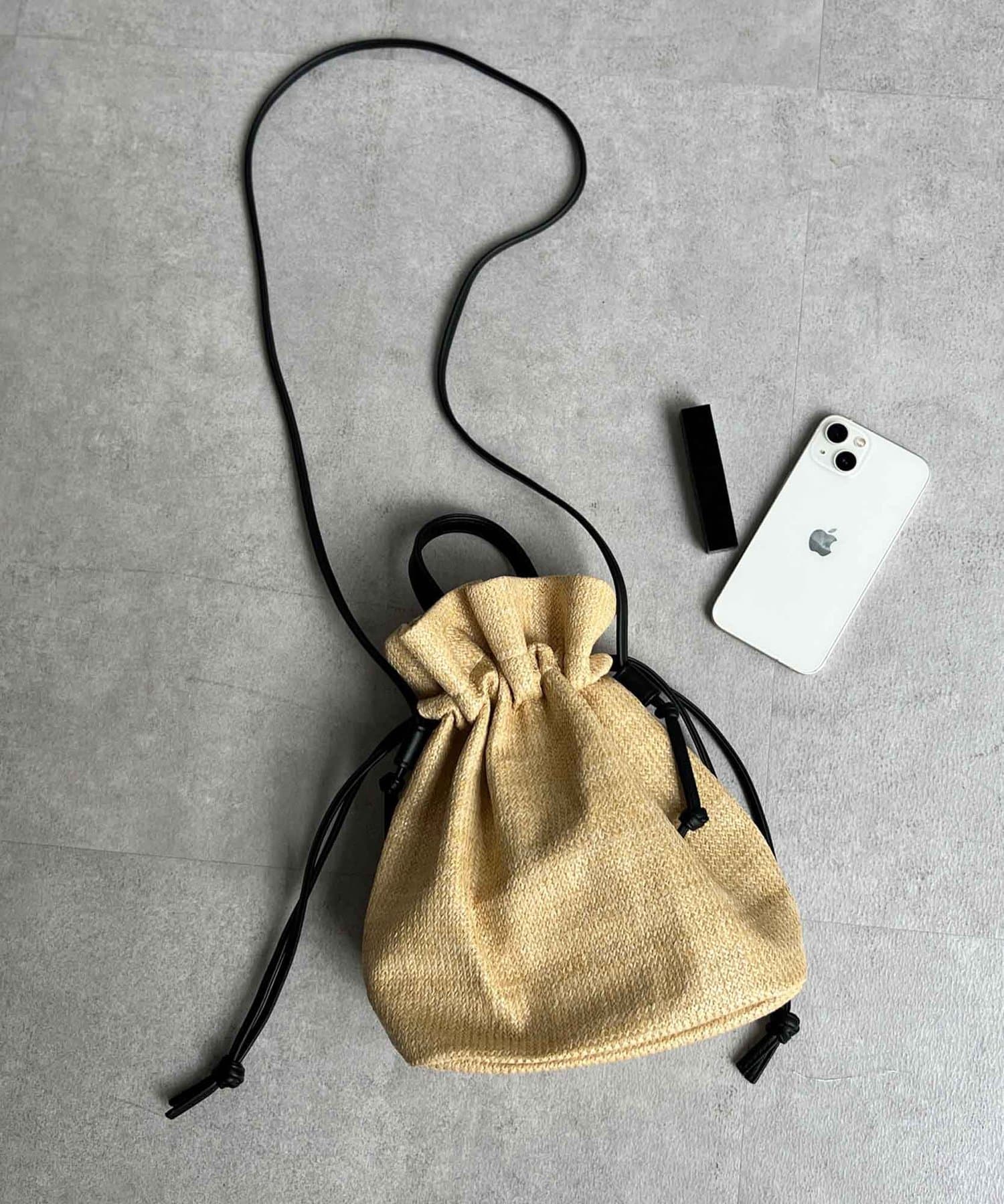 巾着バッグ。小ぶりながらもお出かけ必須アイテムは