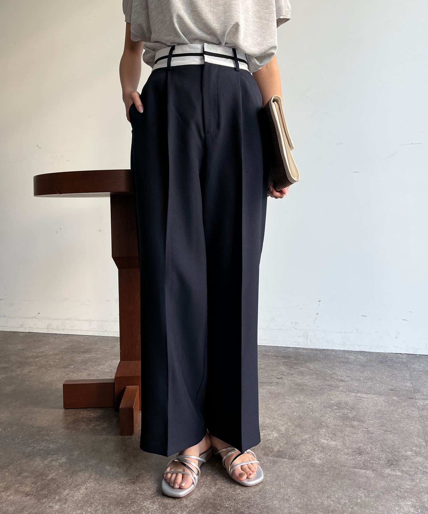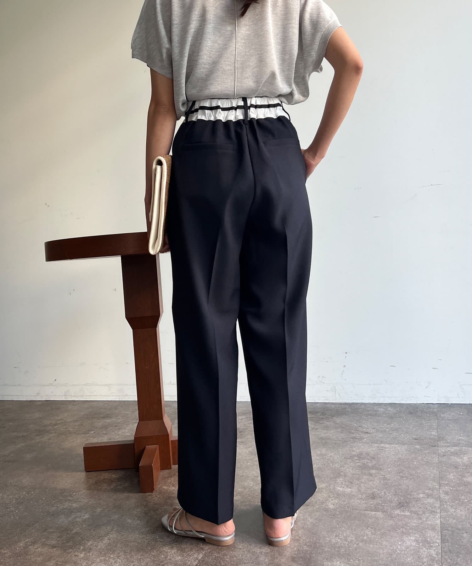 ウエストのバイカラーの配色がコーデのアクセントになるパンツ。