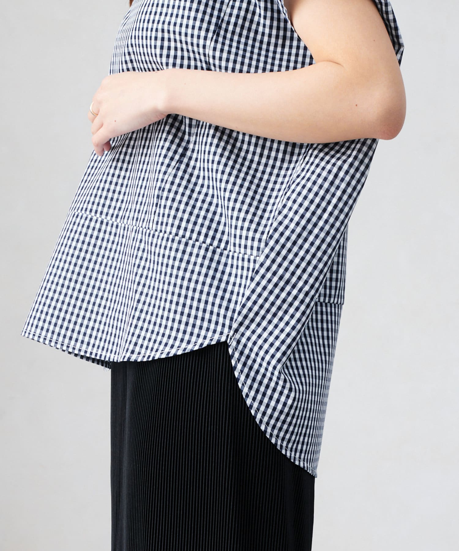 すっきりとした印象に。縦横に切替を施し丸みのあるシルエットに
