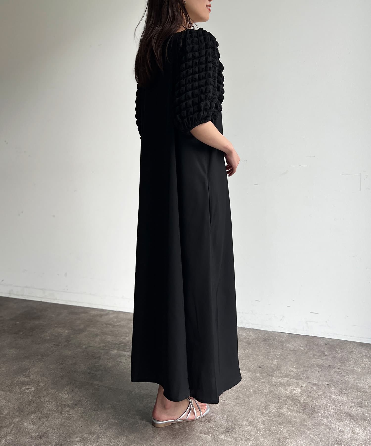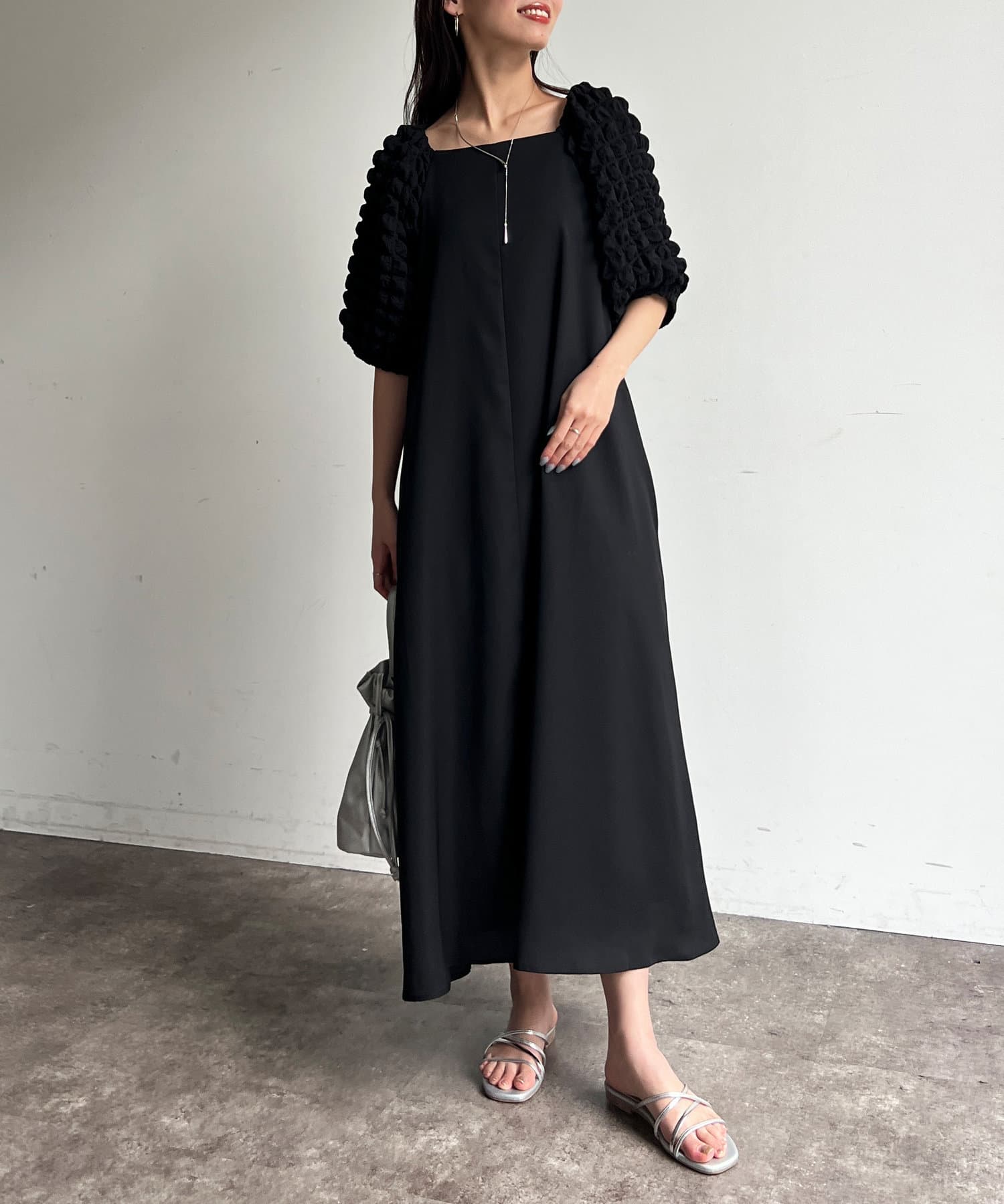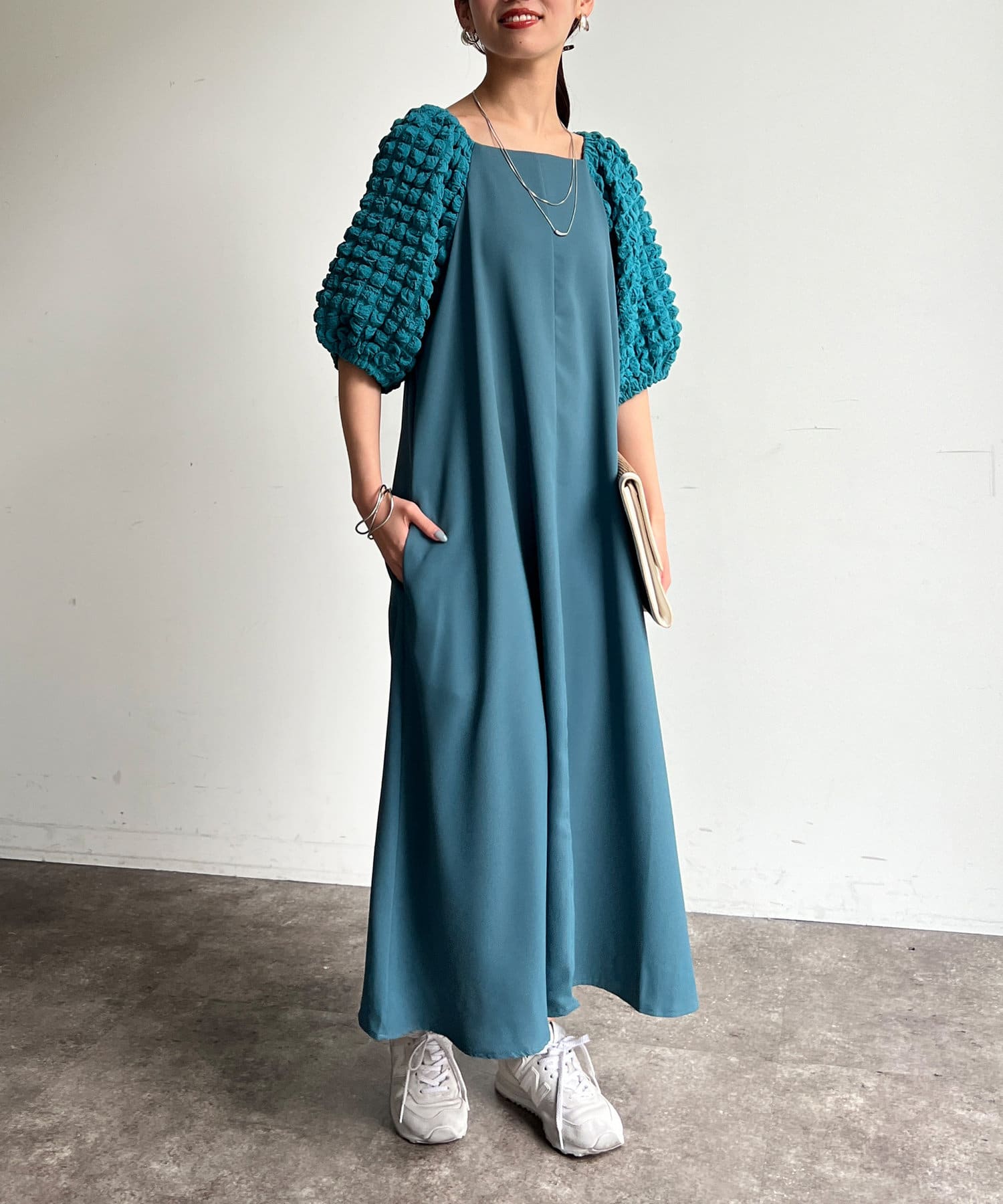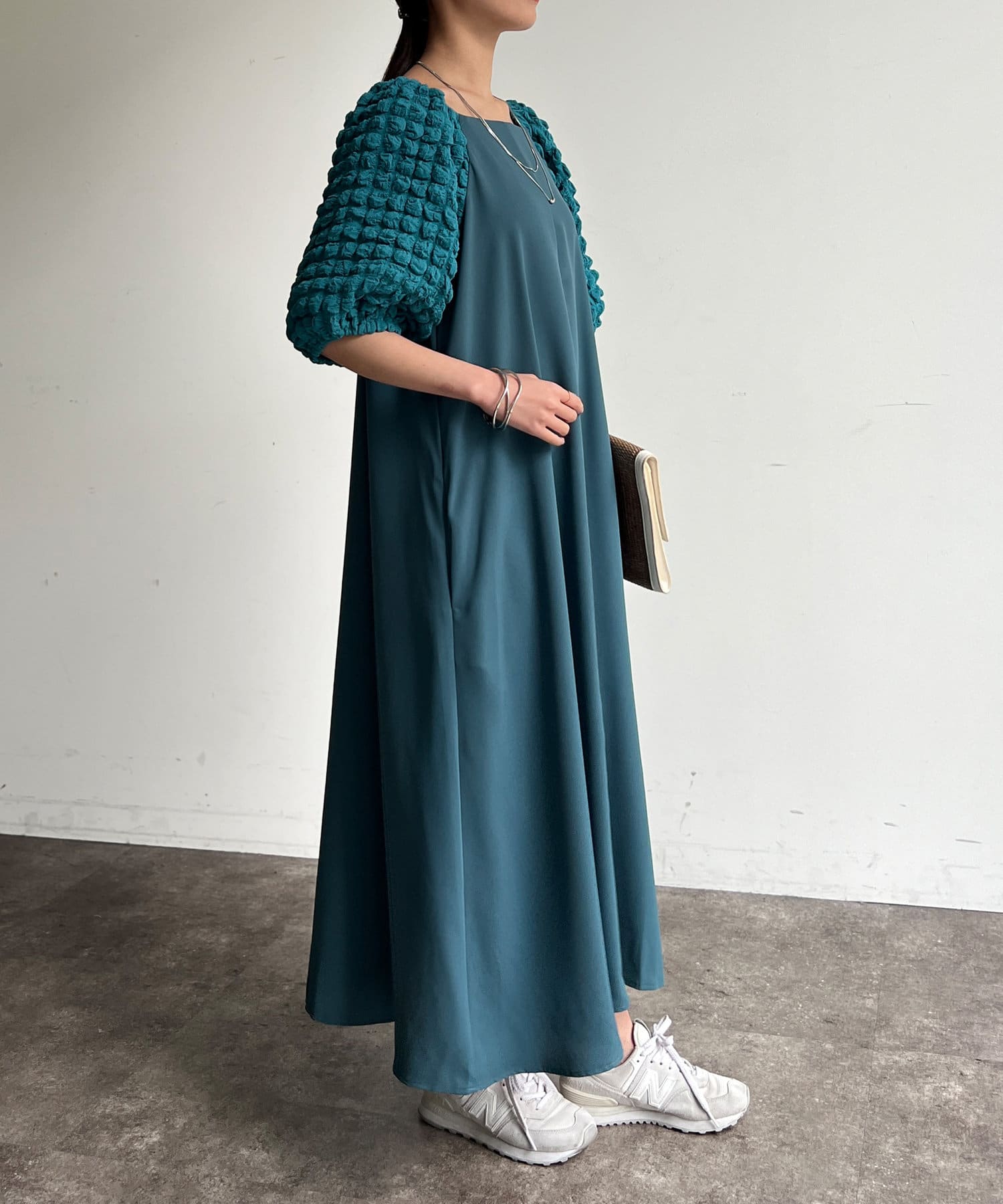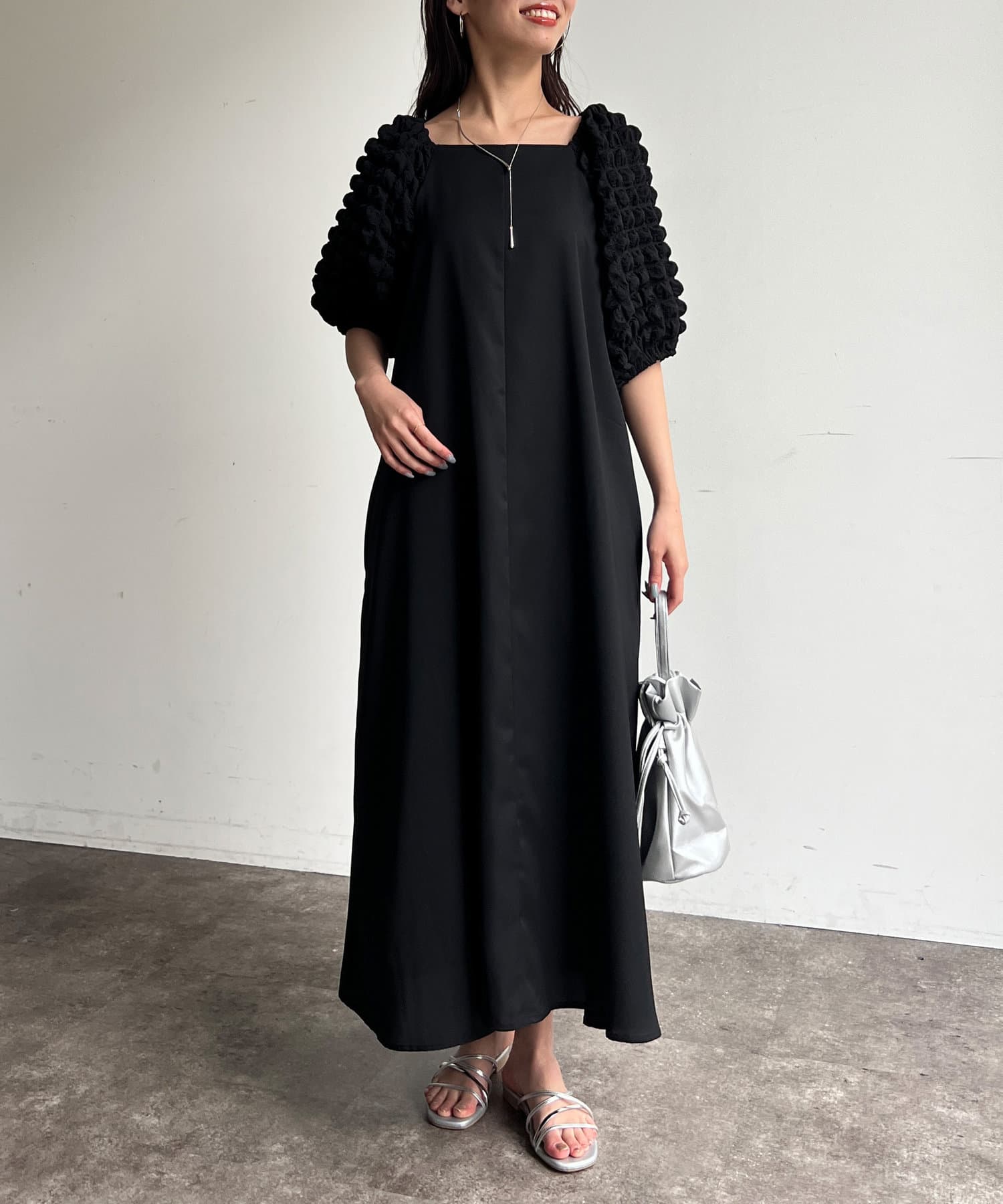 ぽこぽことしたお袖が大人可愛い印象のワンピース。
