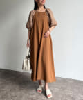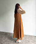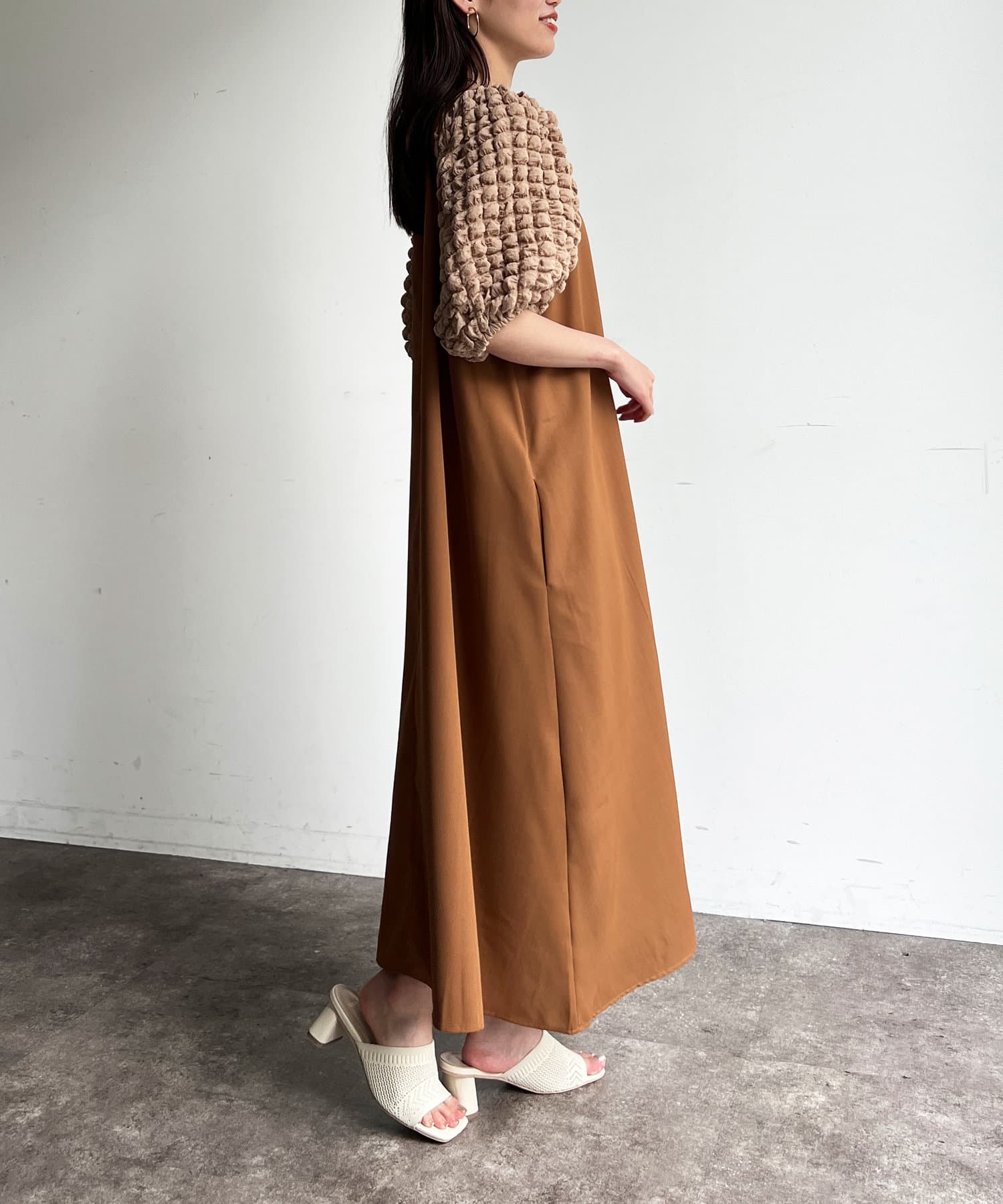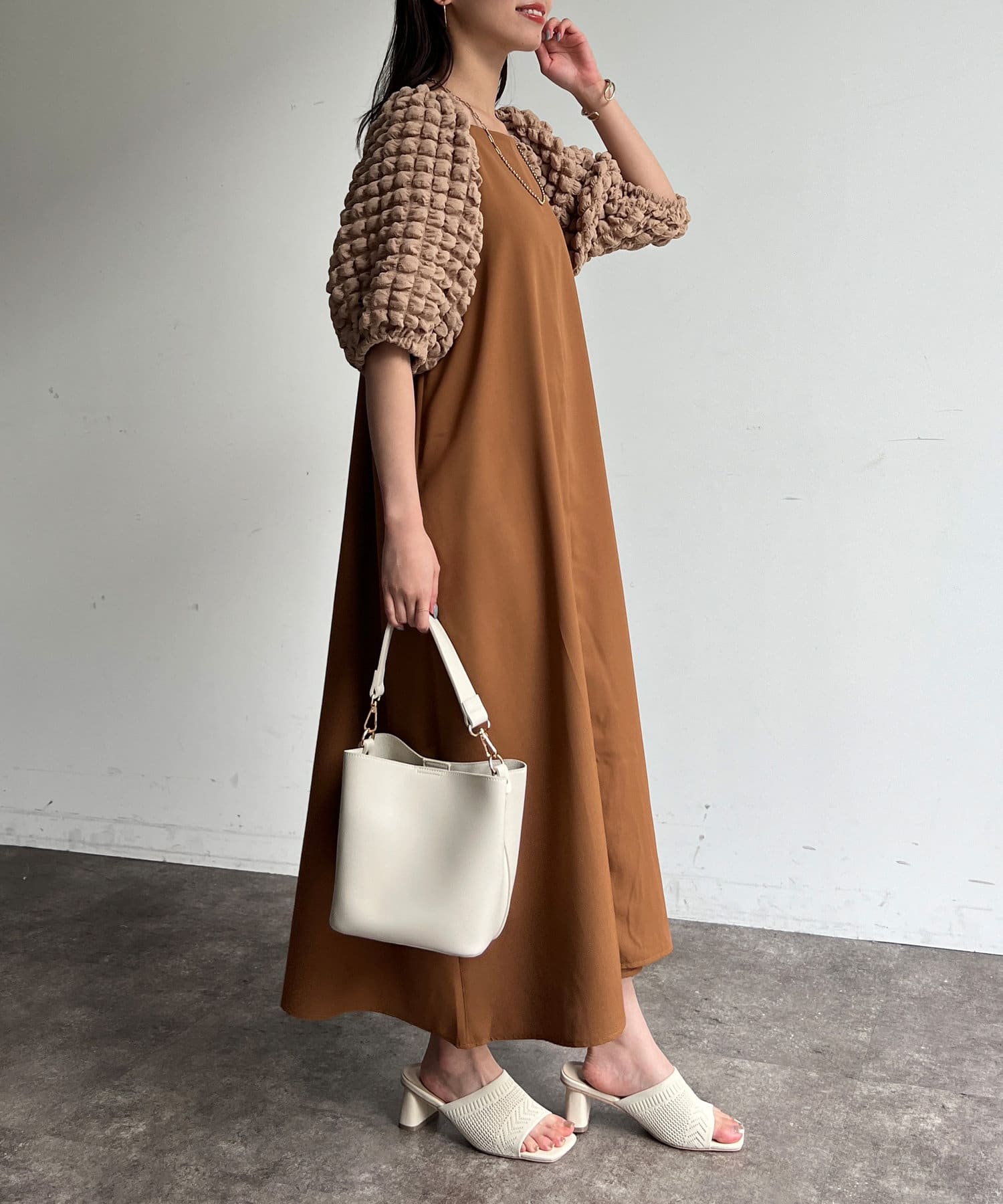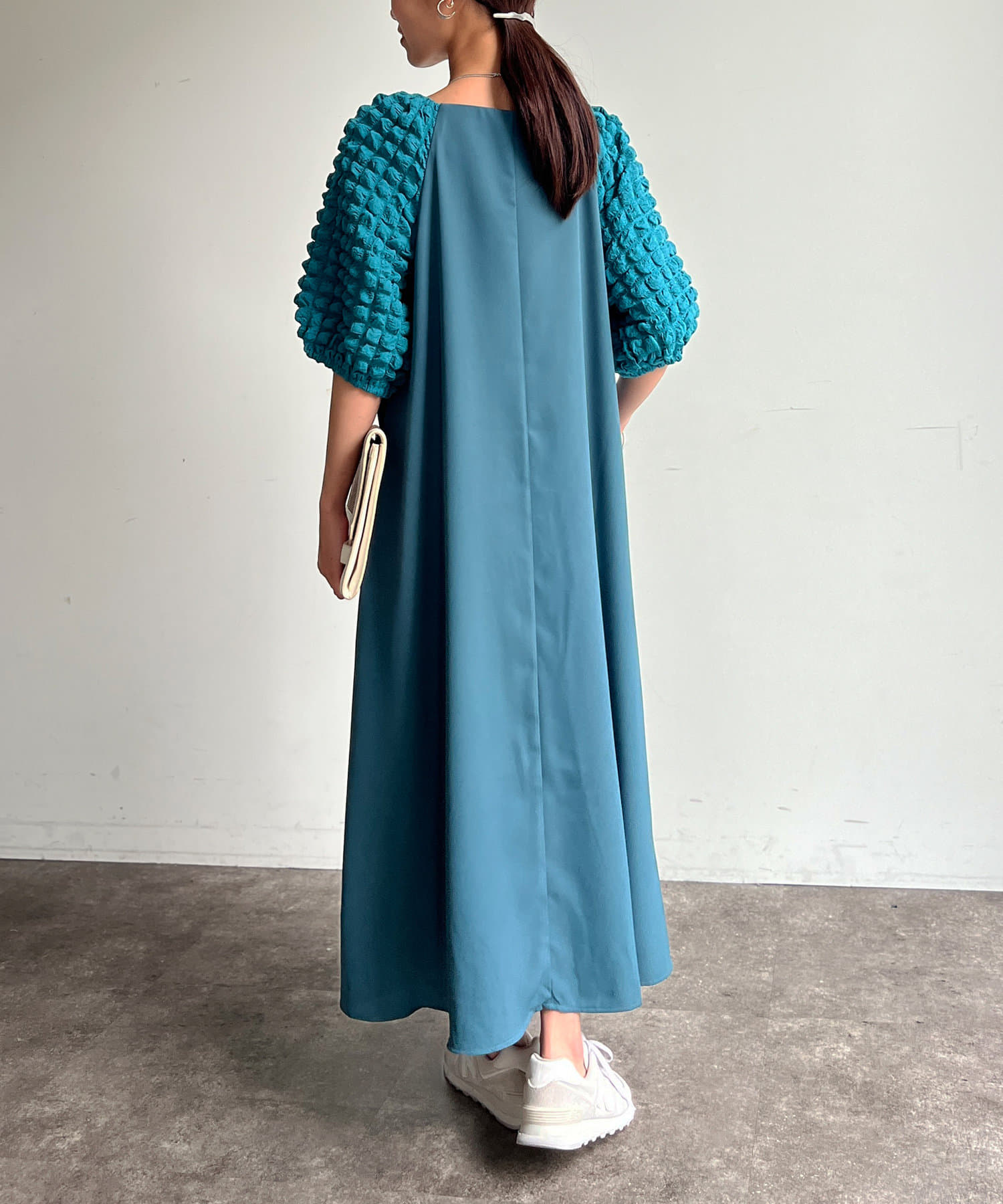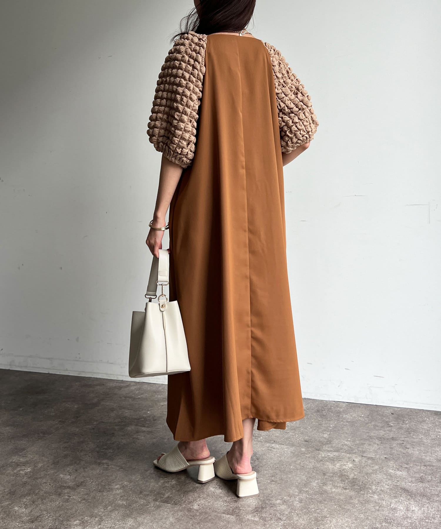 ぽこぽことしたお袖が大人可愛い印象のワンピース。