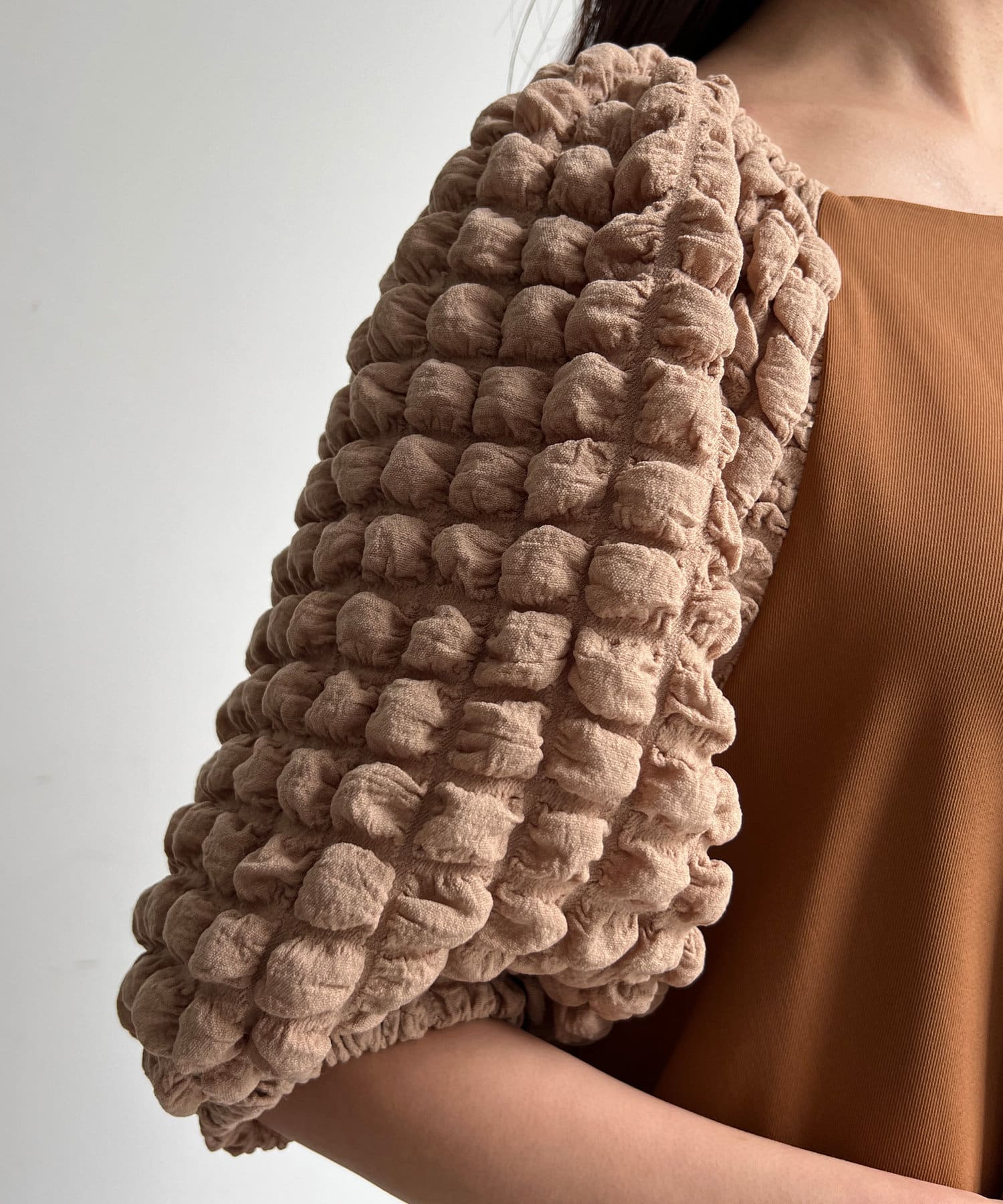 ふんわりとしたボリュームスリーブが二の腕をカバーし、