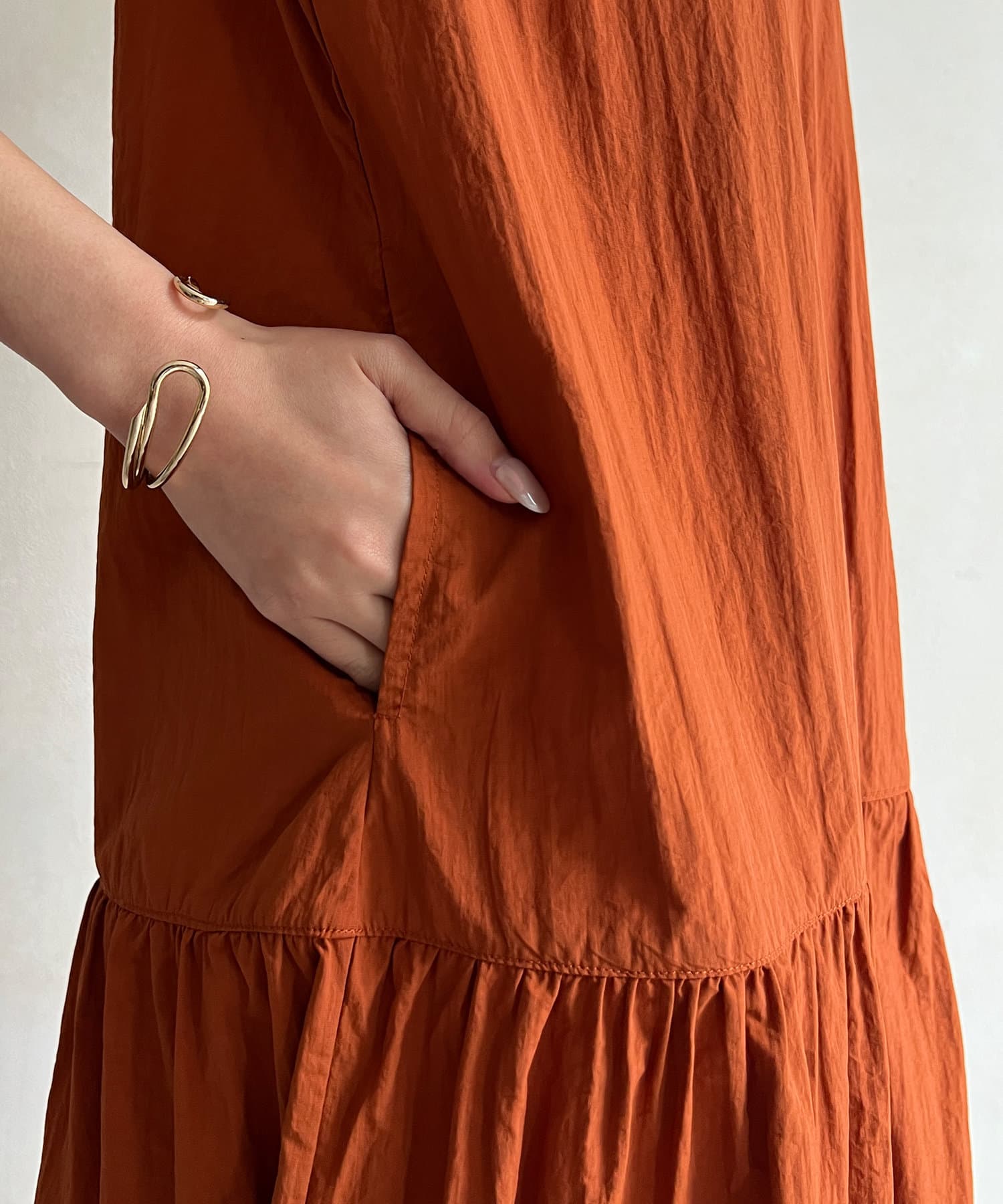 機能が付いたワンピース。カジュアルになりがちなナイロン素材ですが