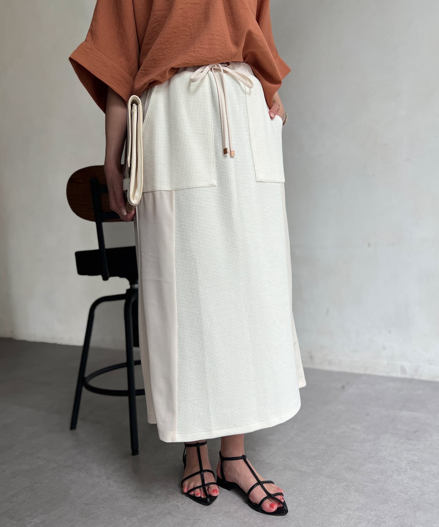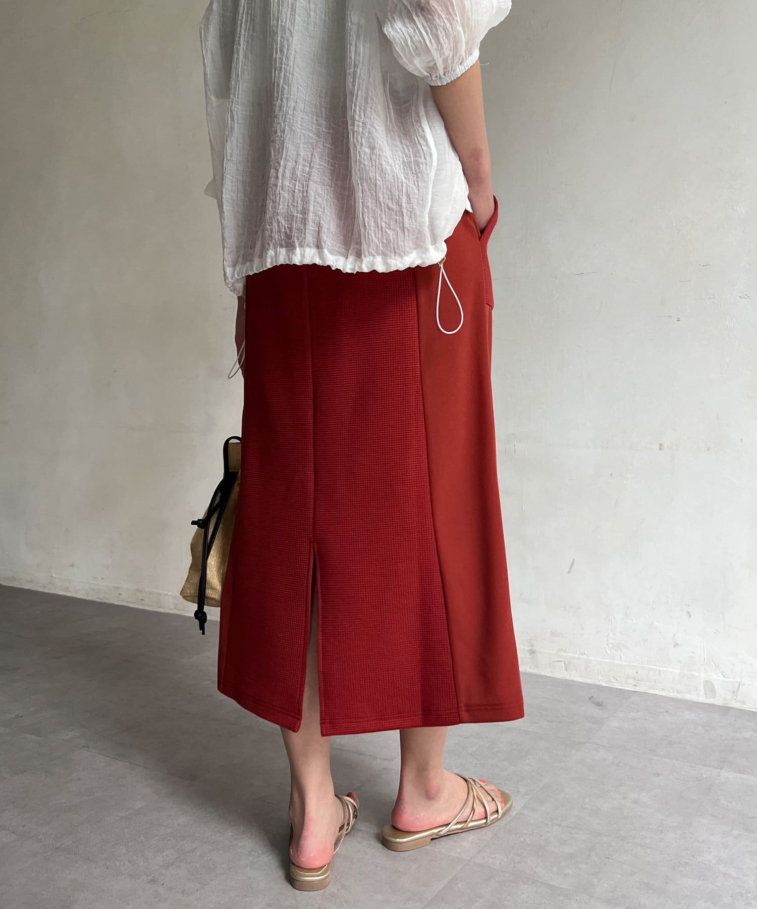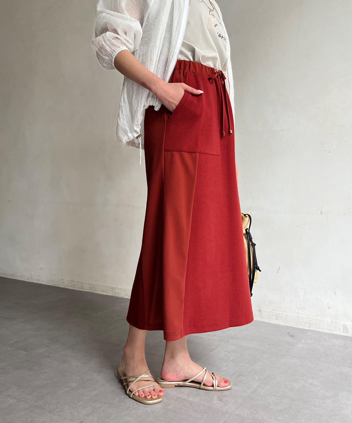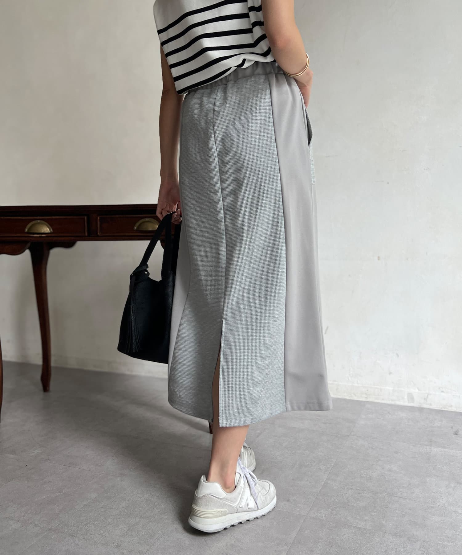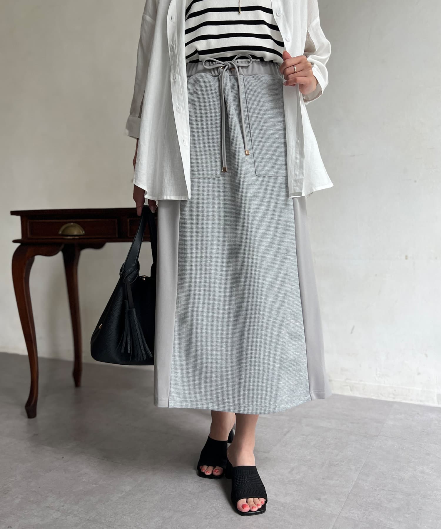 大人カジュアル派にピッタリ!!ワッフル生地の異素材ナロースカート