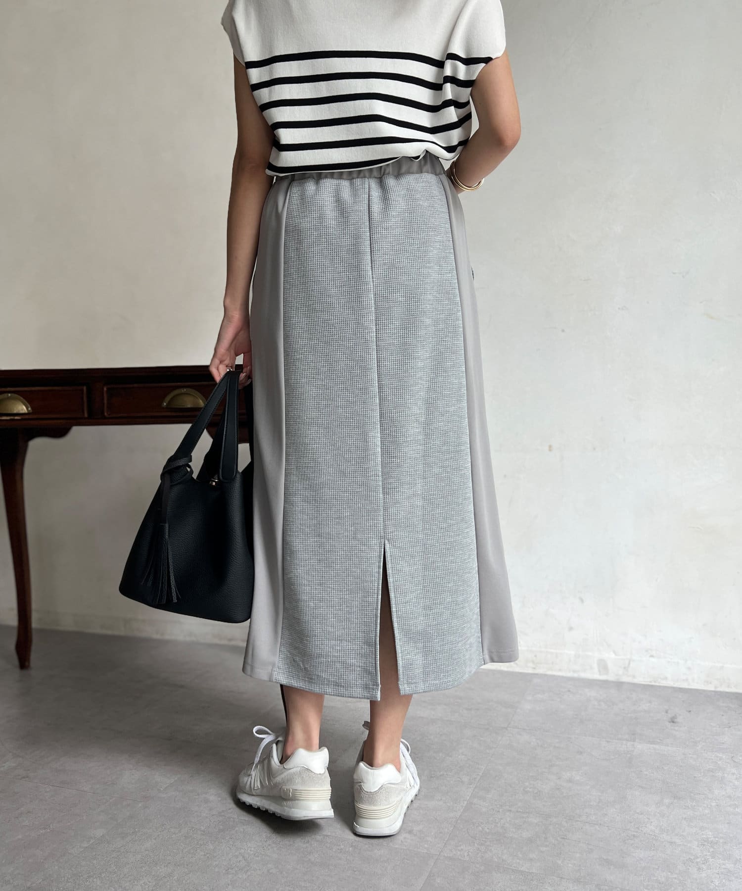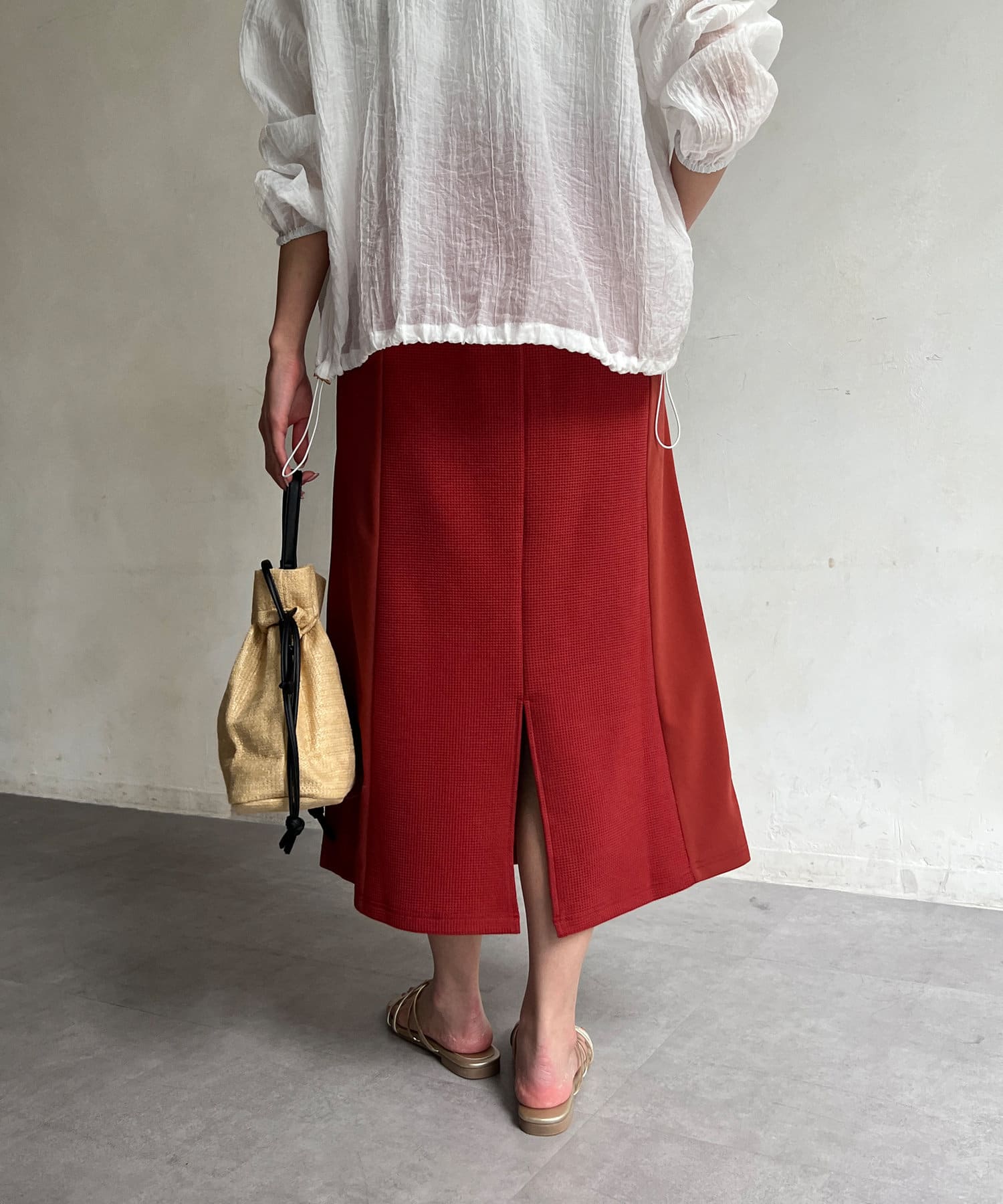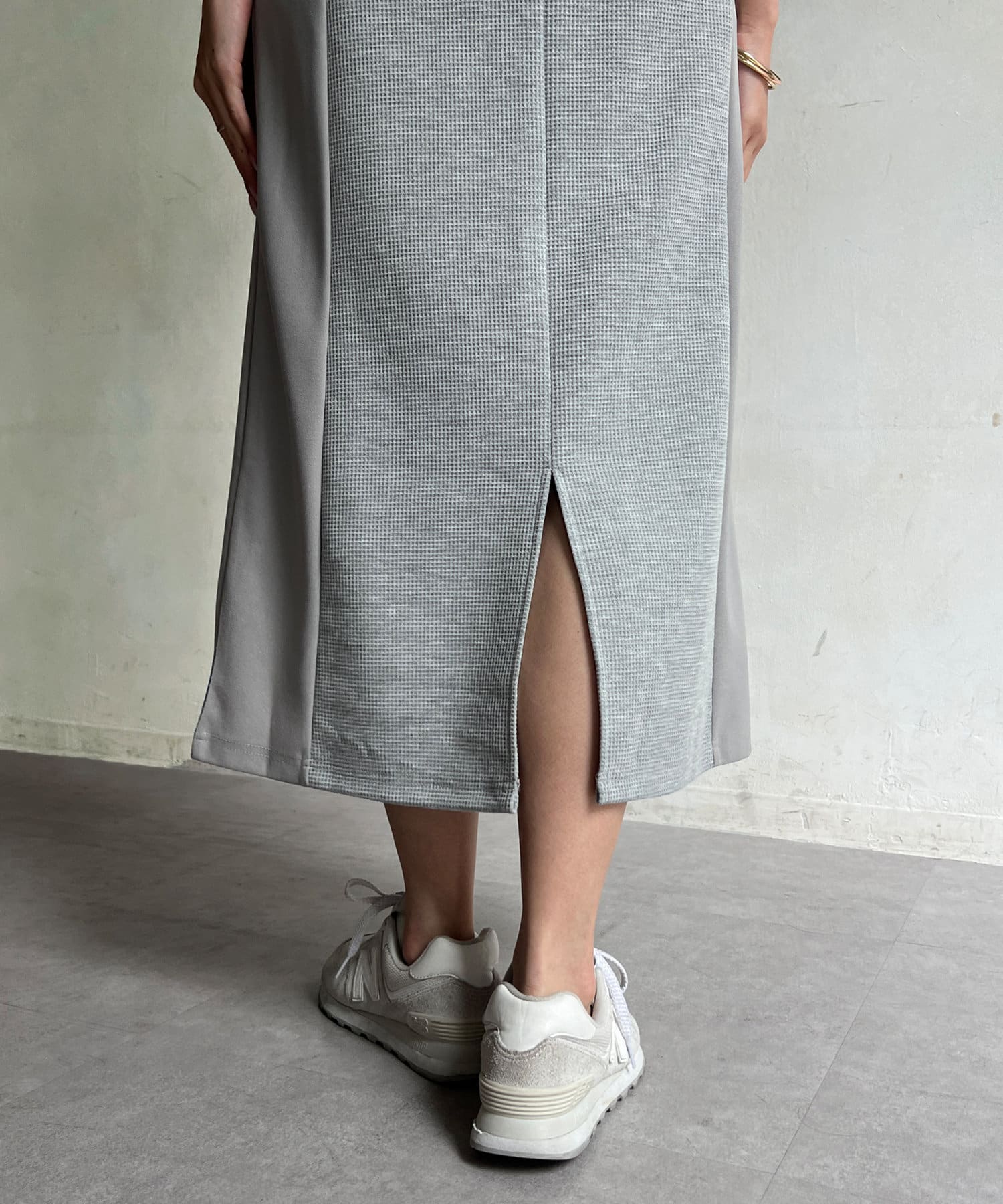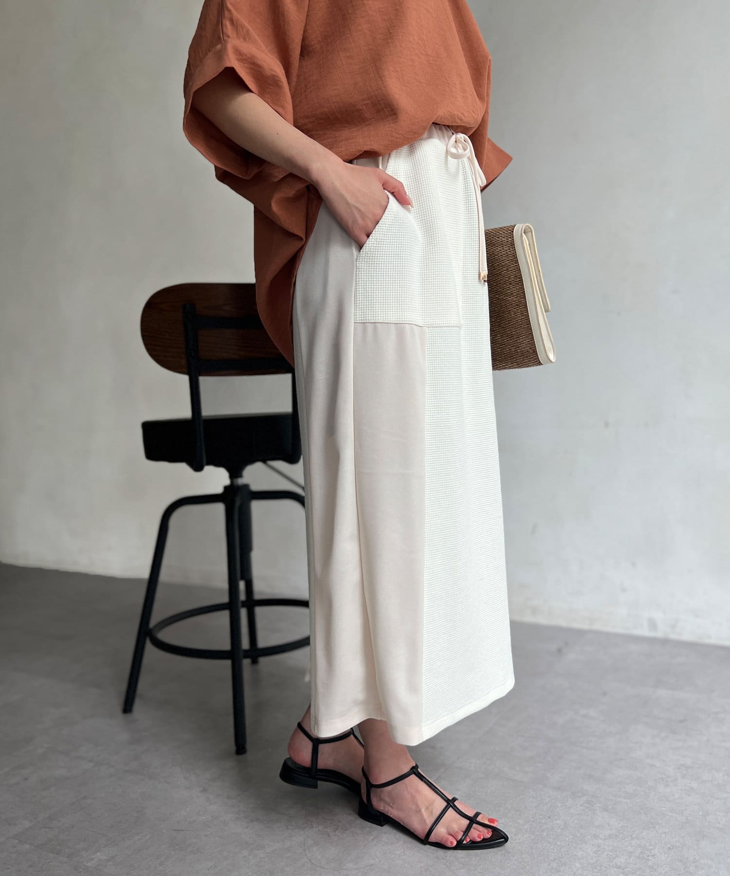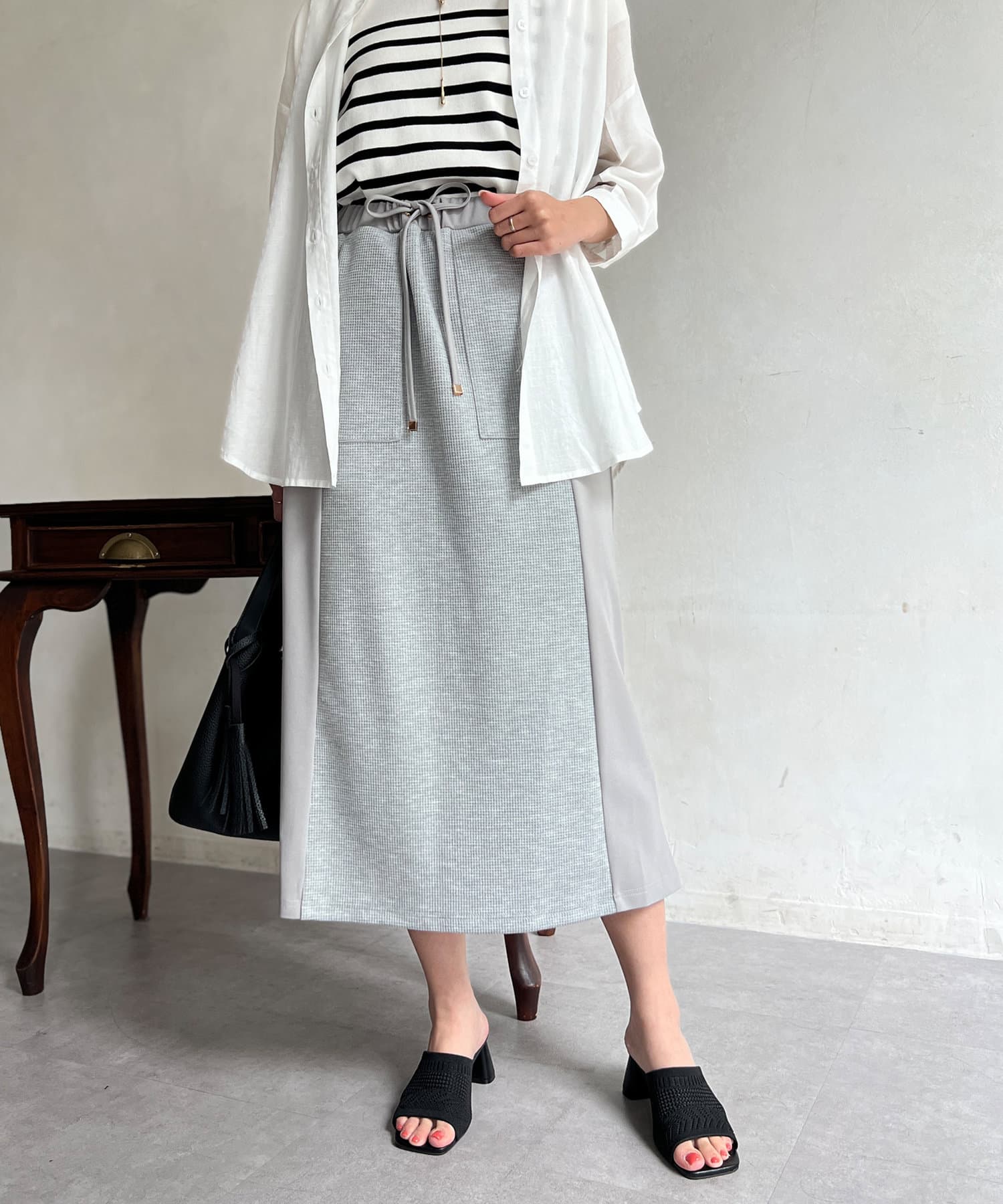 大人カジュアル派にピッタリ!!ワッフル生地の異素材ナロースカート