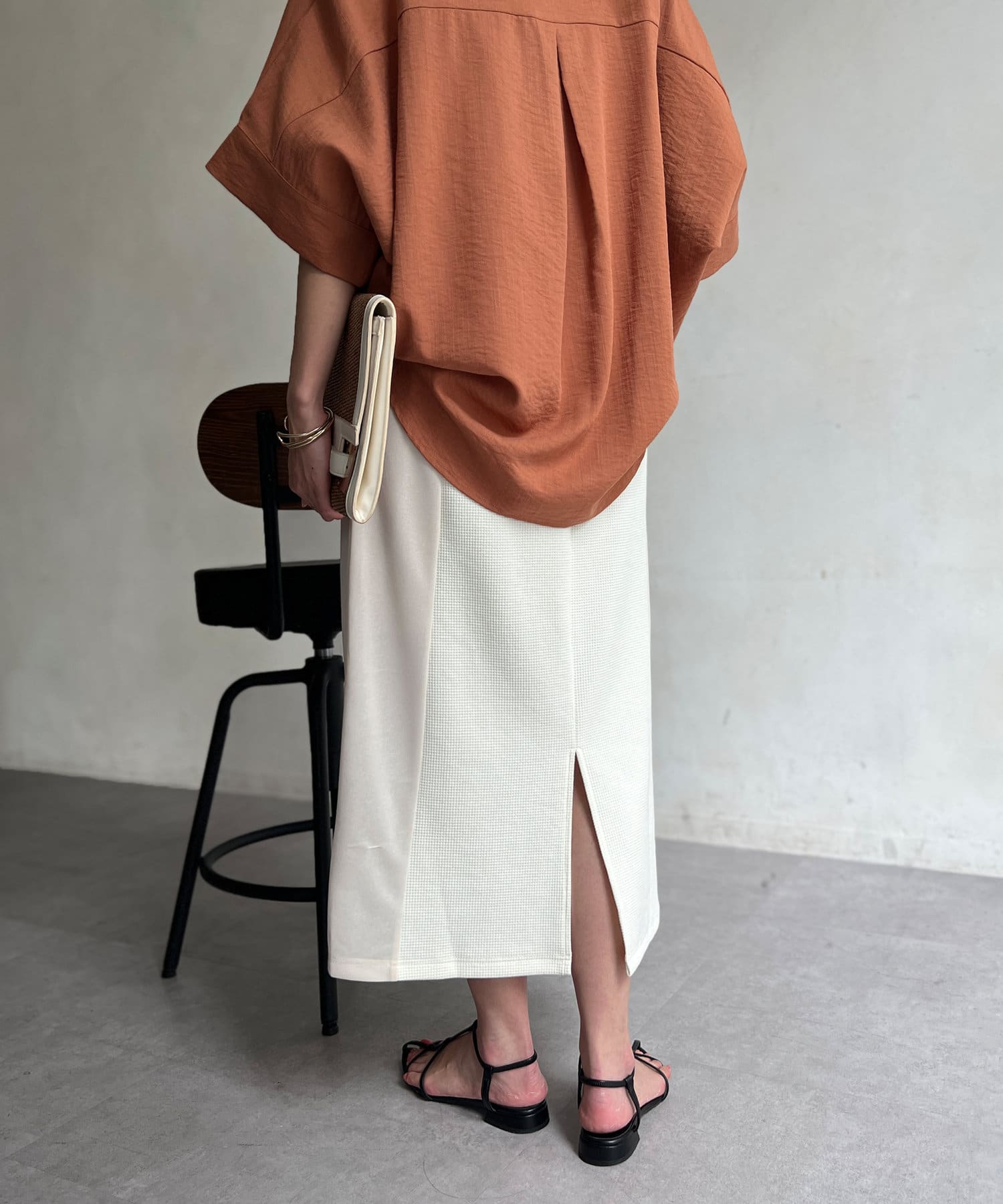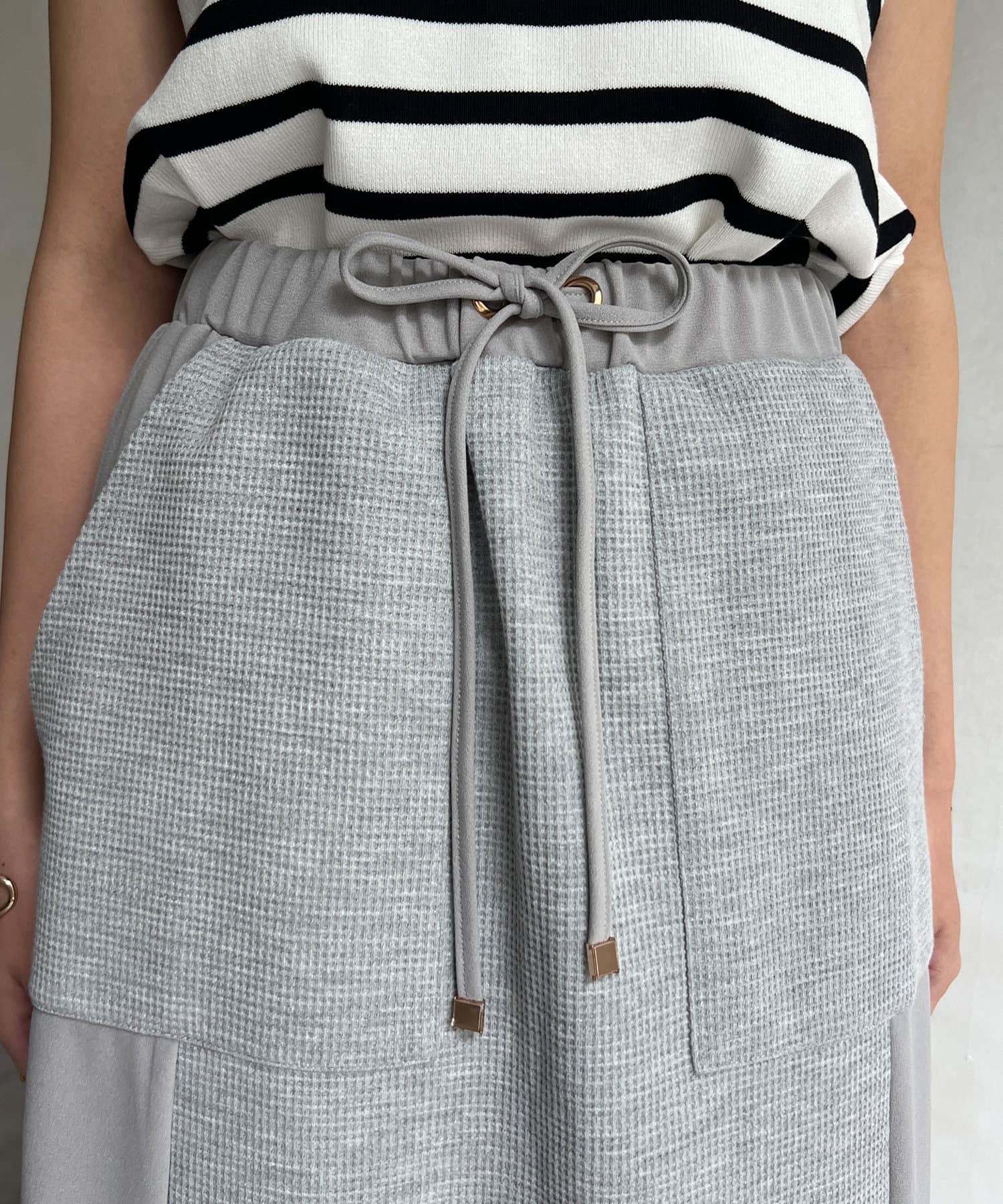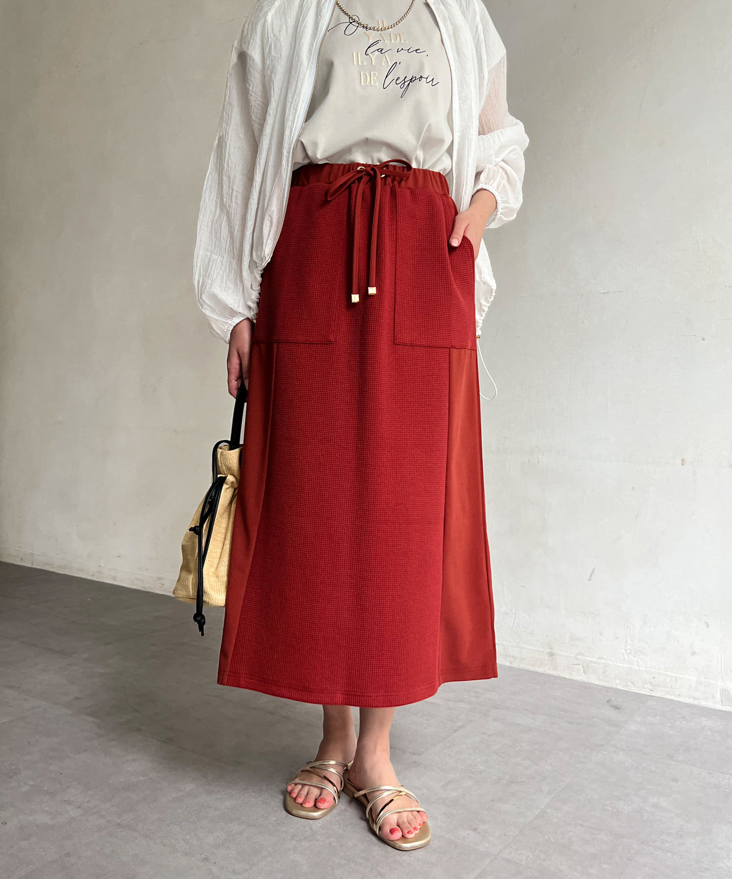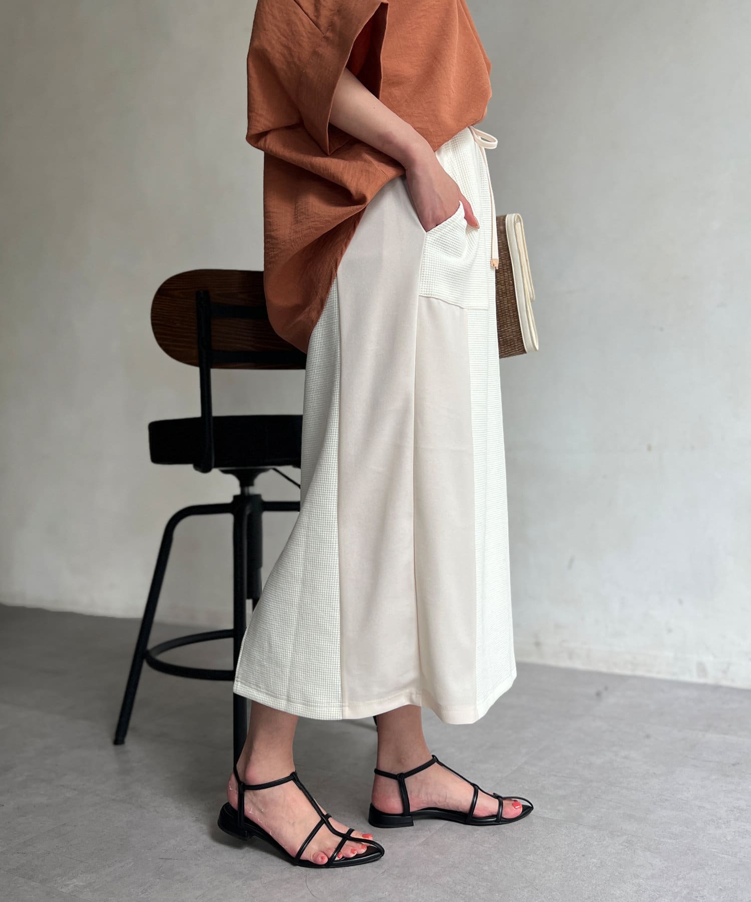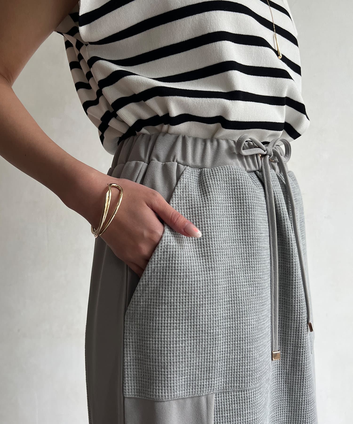大人カジュアル派にピッタリ!!ワッフル生地の異素材ナロースカート