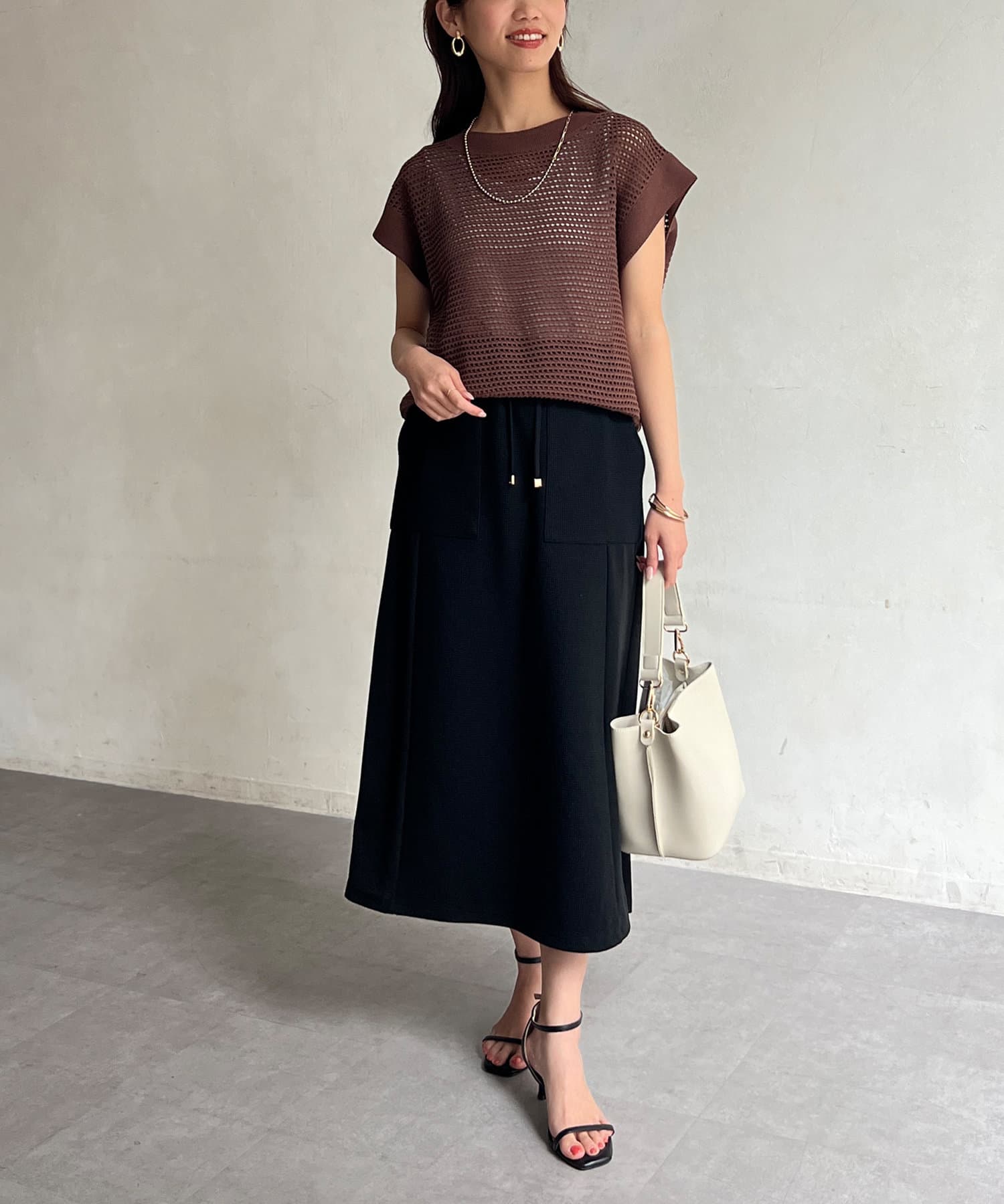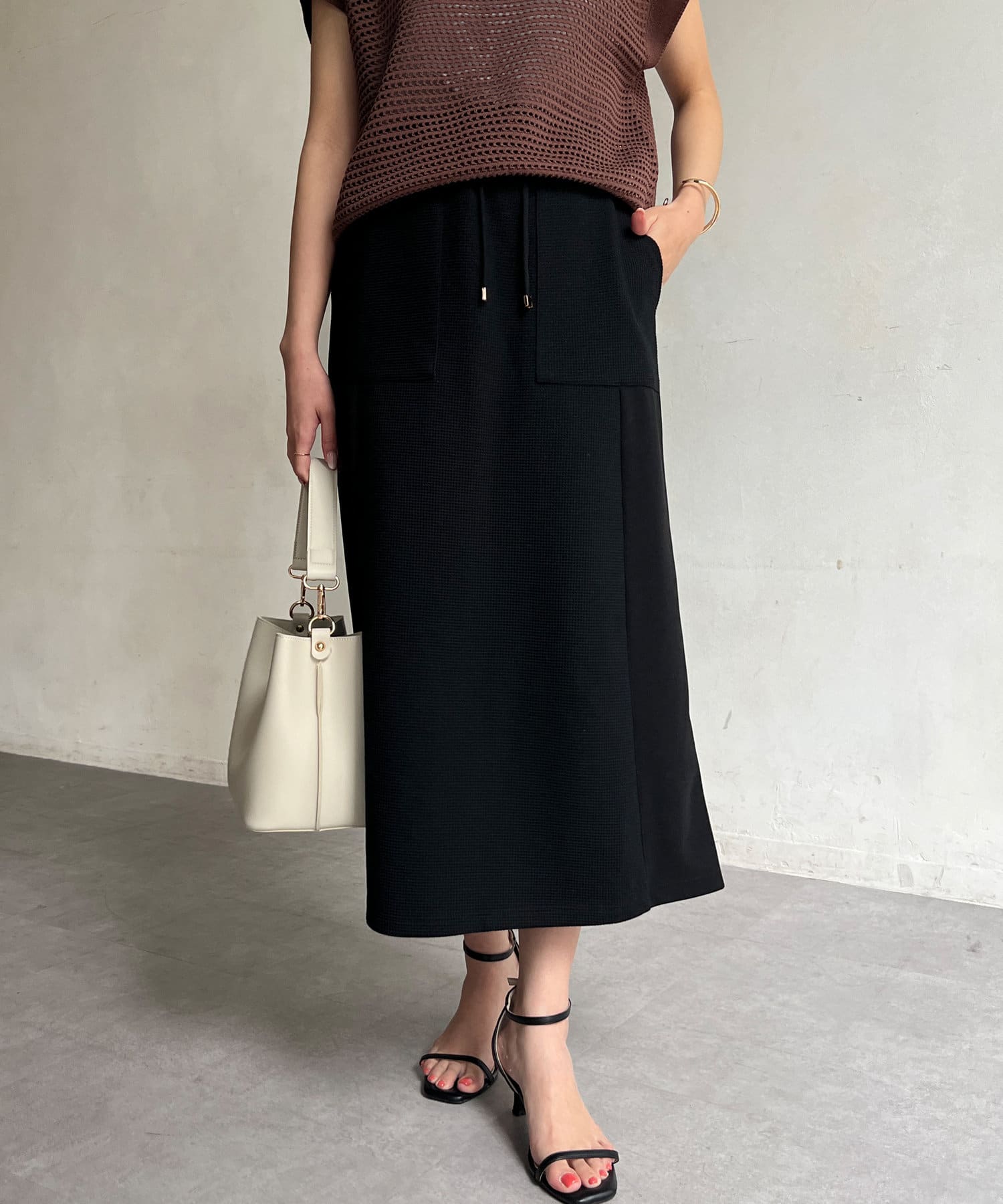 ロングシーズン着用可能な着回し抜群のワッフルナロースカート。