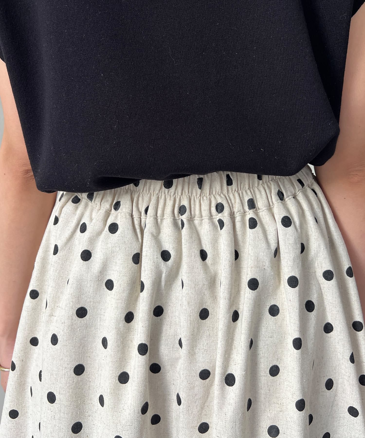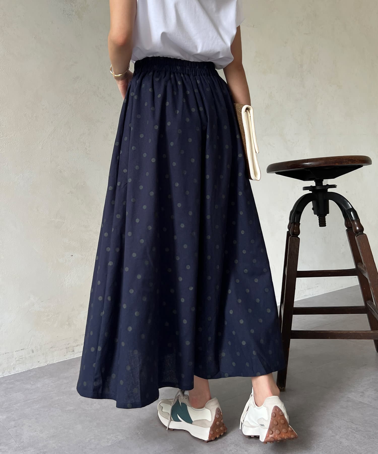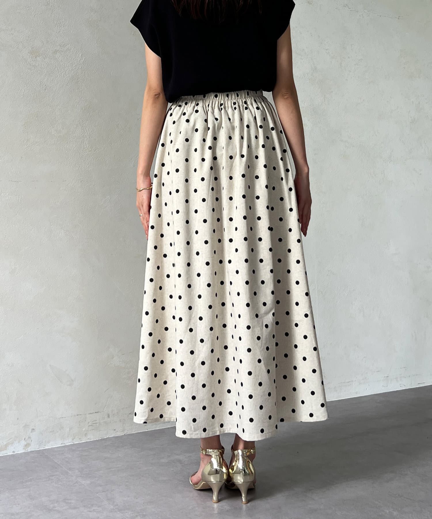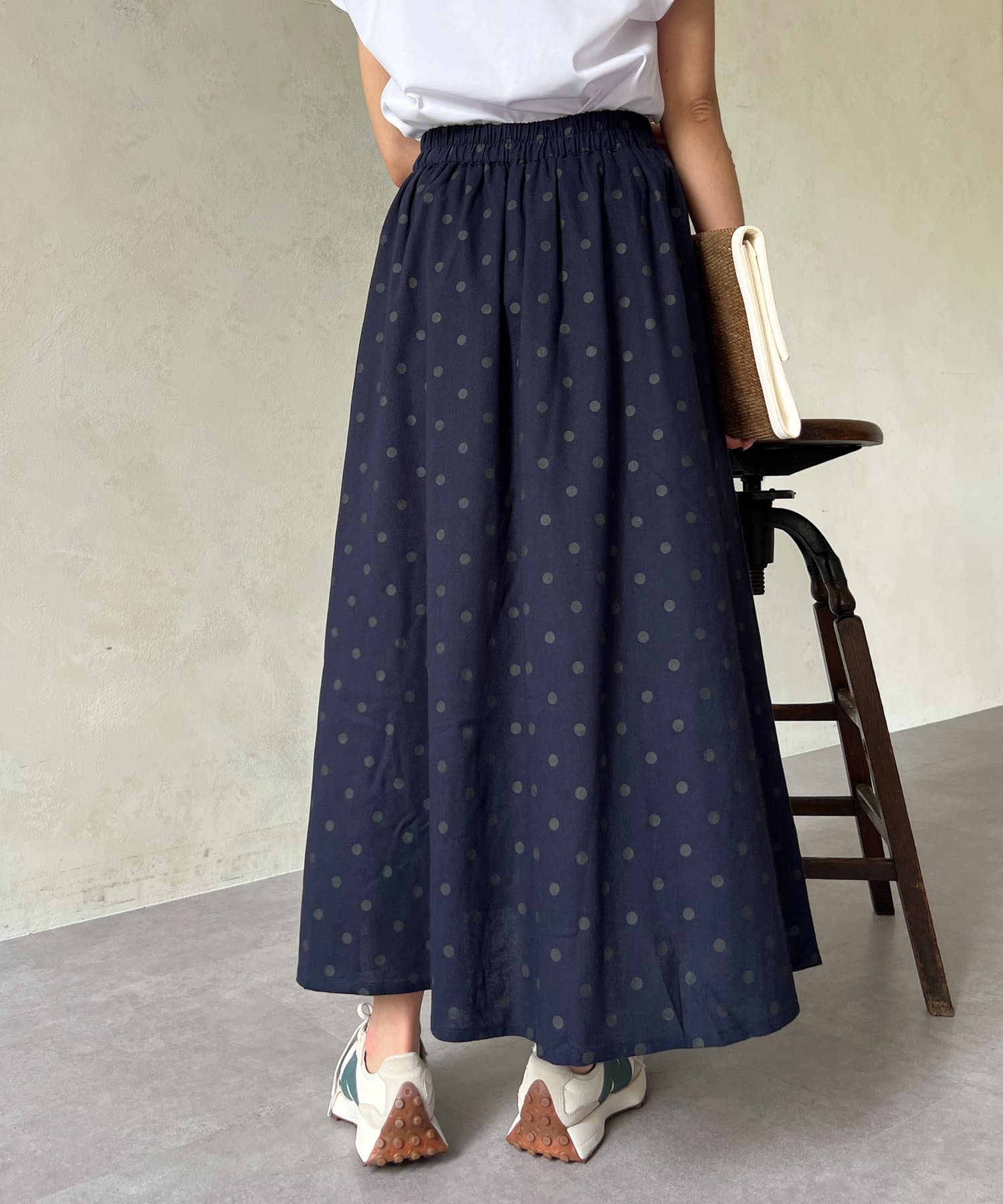 清涼感のあるリネン素材!!大人かわいいドットスカート