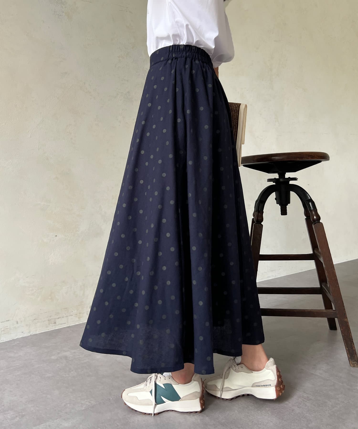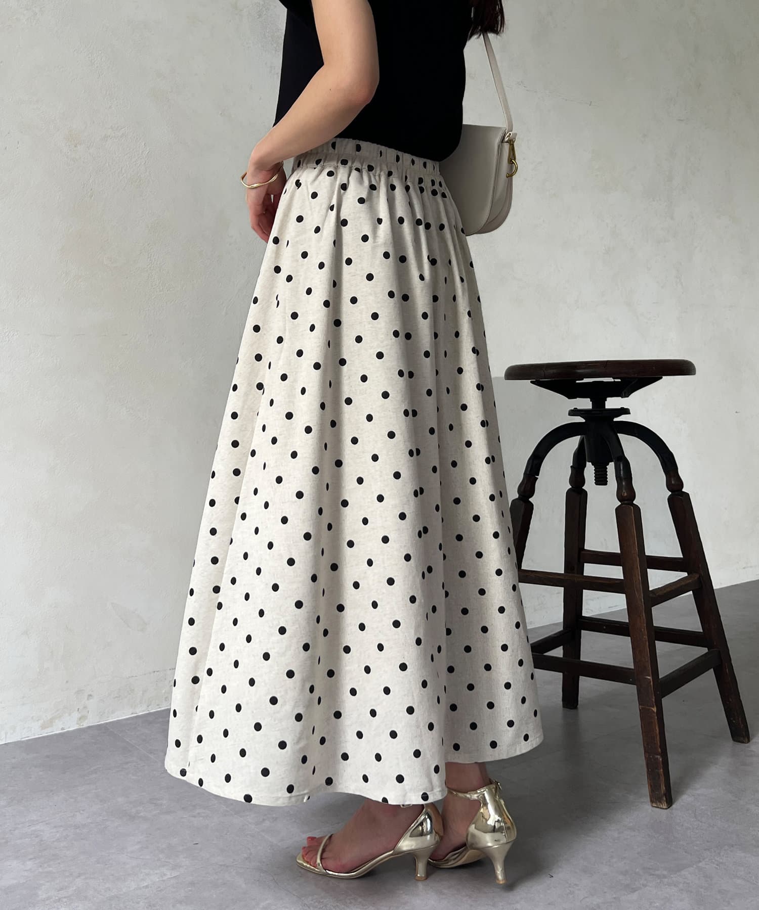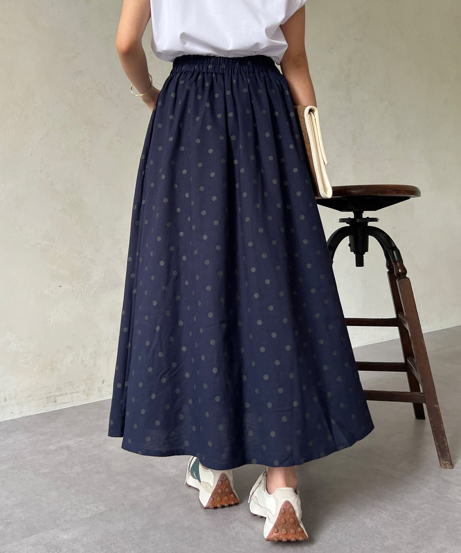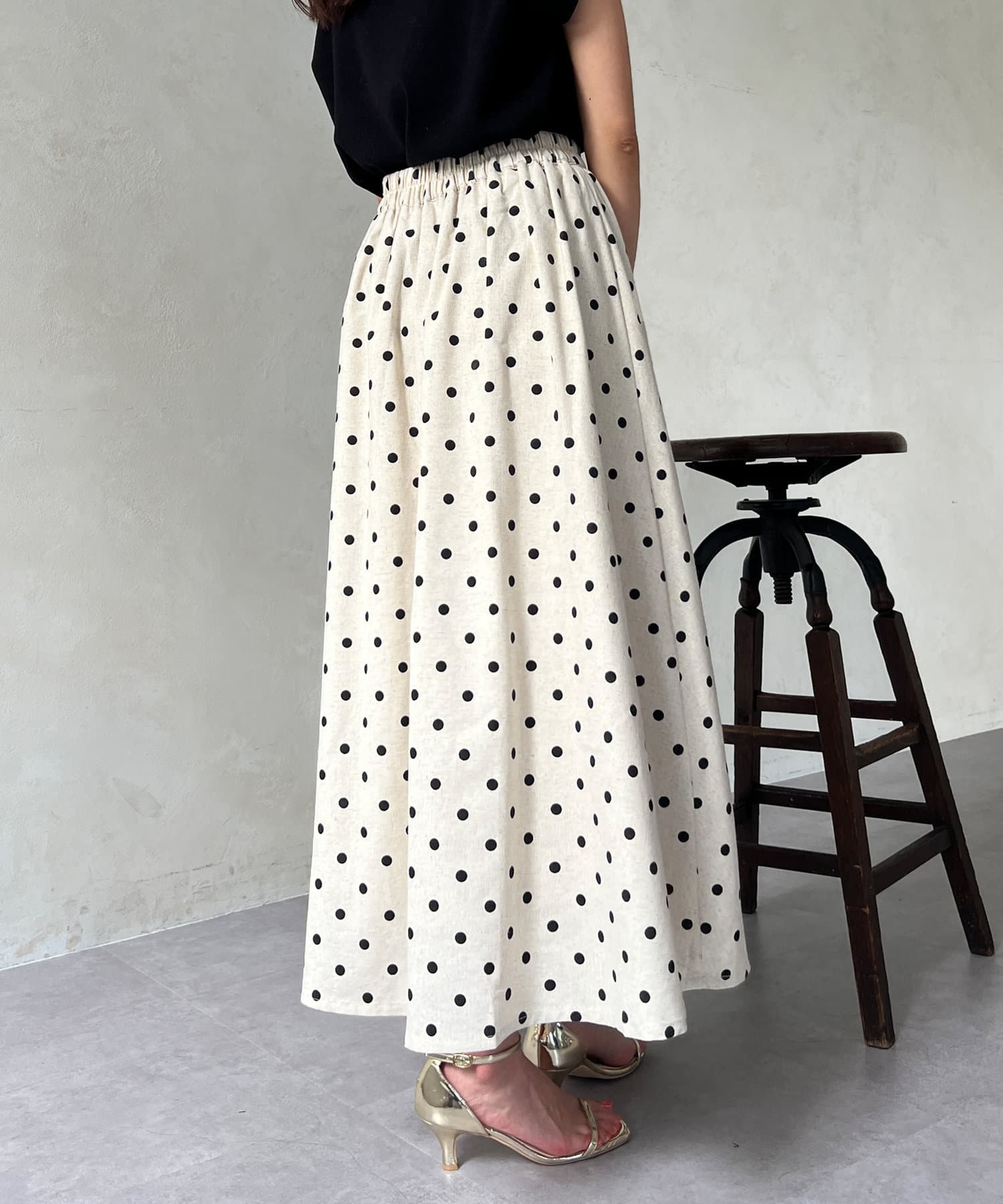 清涼感のあるリネン素材!!大人かわいいドットスカート