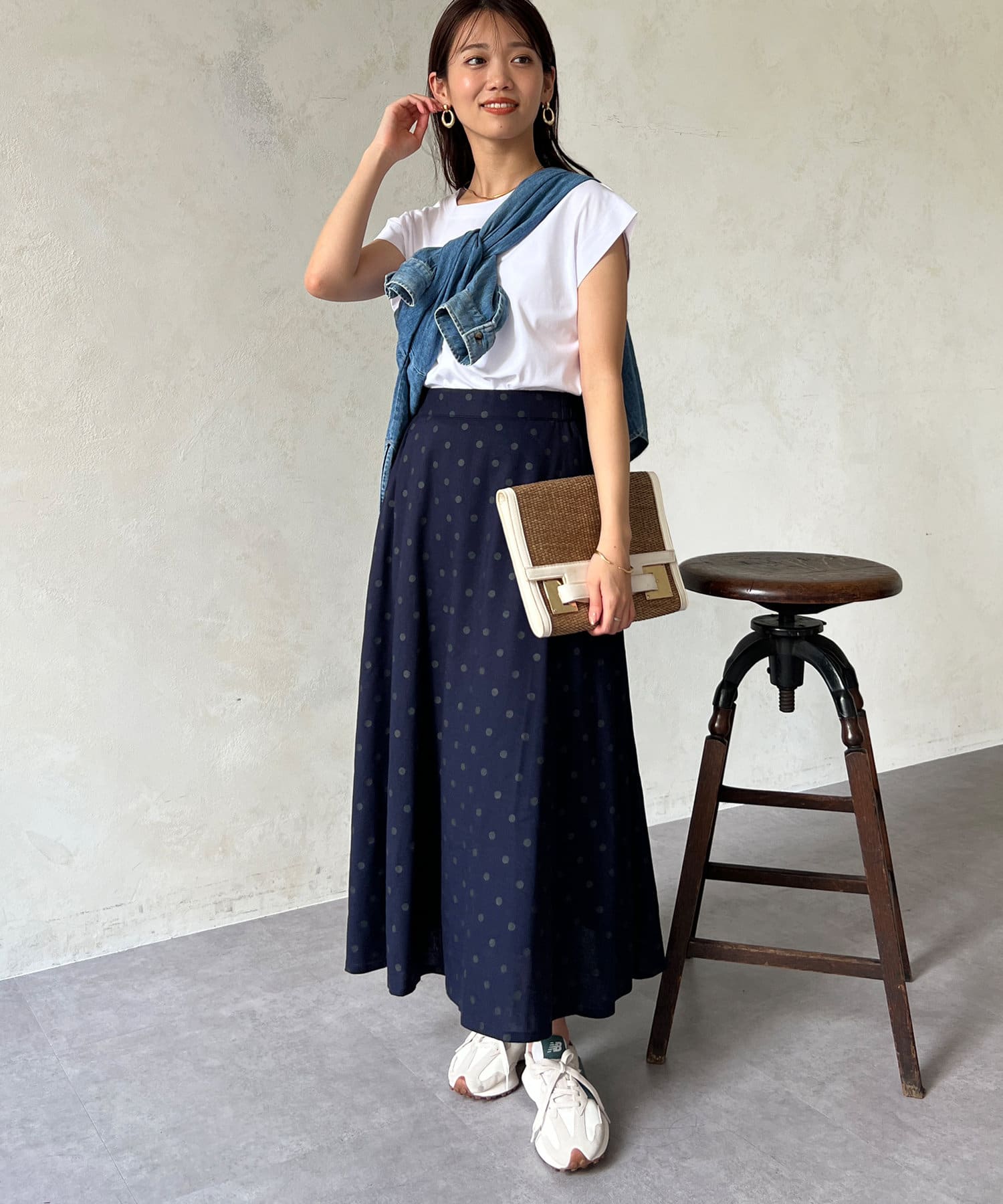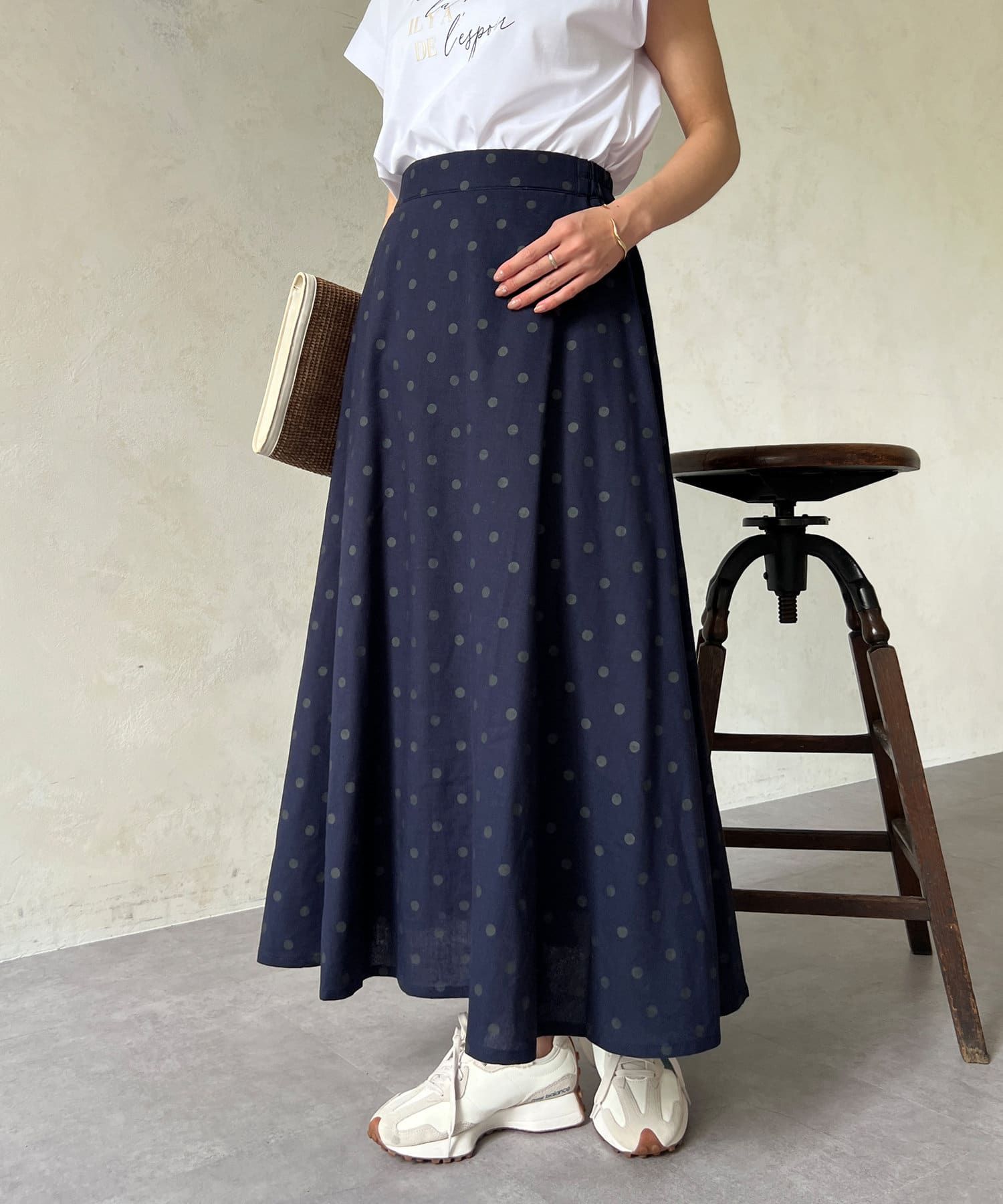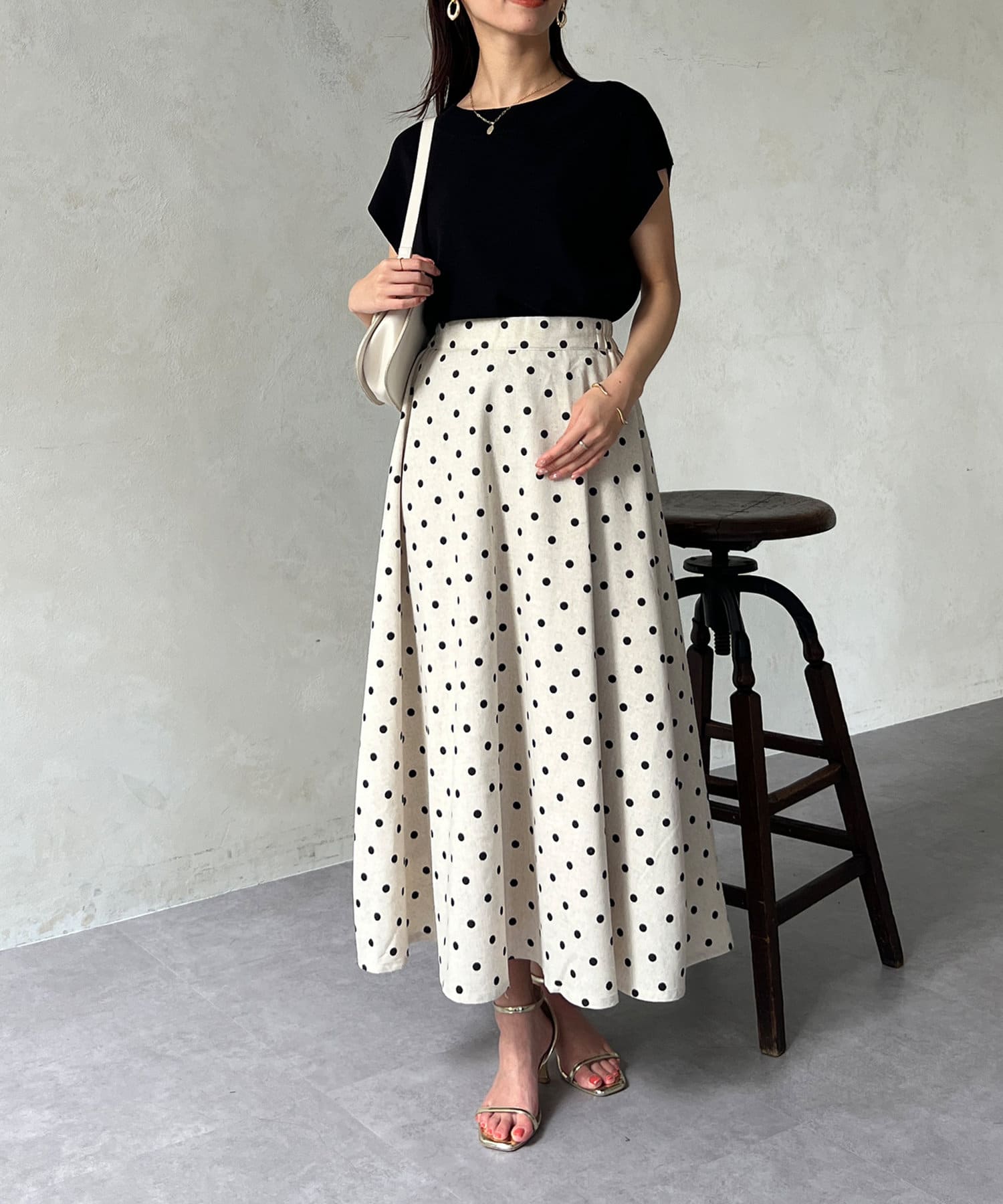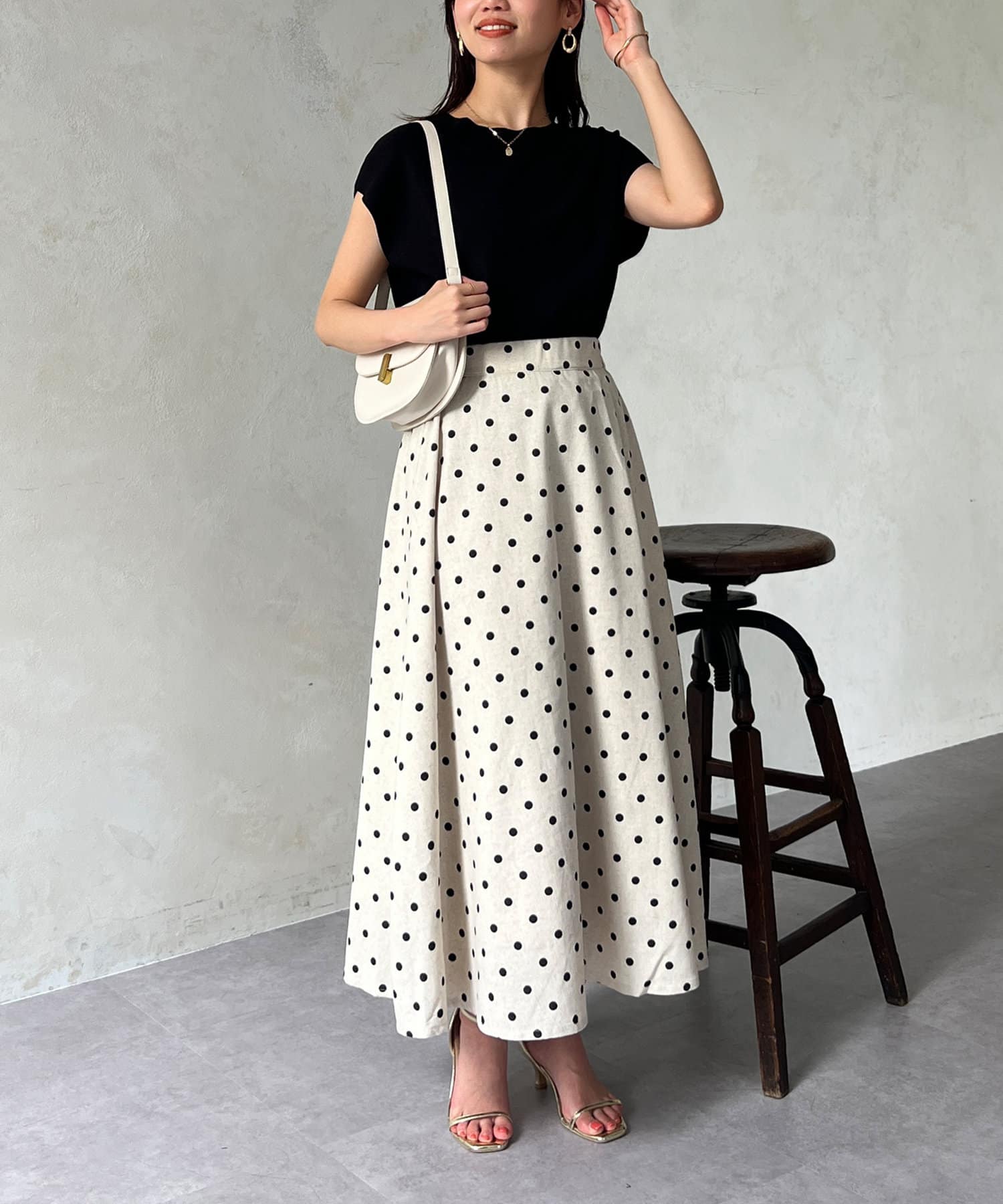 清涼感のあるリネン素材!!大人かわいいドットスカート