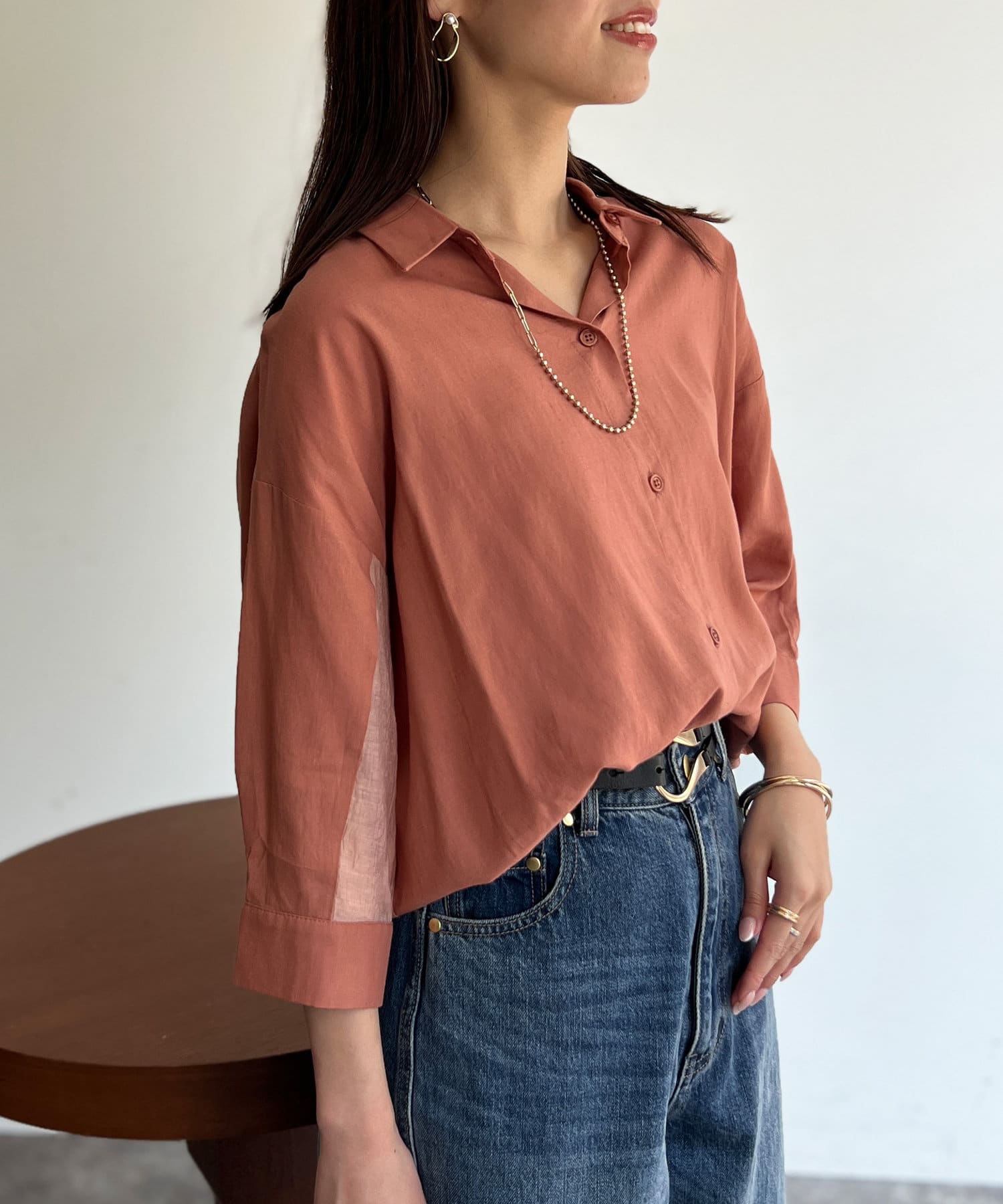 BACKシアーリネンシャツ