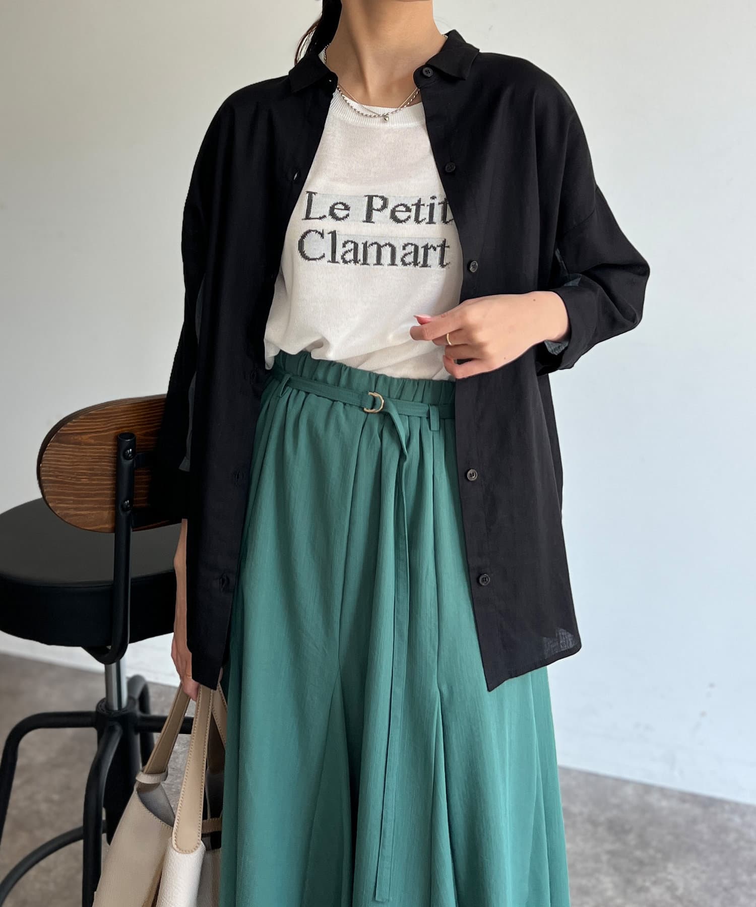 シンプルなノースリーブやTシャツに羽織って頂くだけで