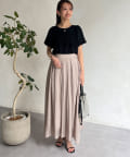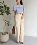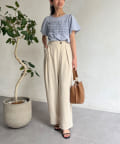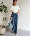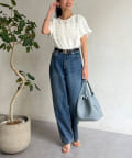 甘めのトップスなのでカジュアルなデニムやテーラードパンツ
