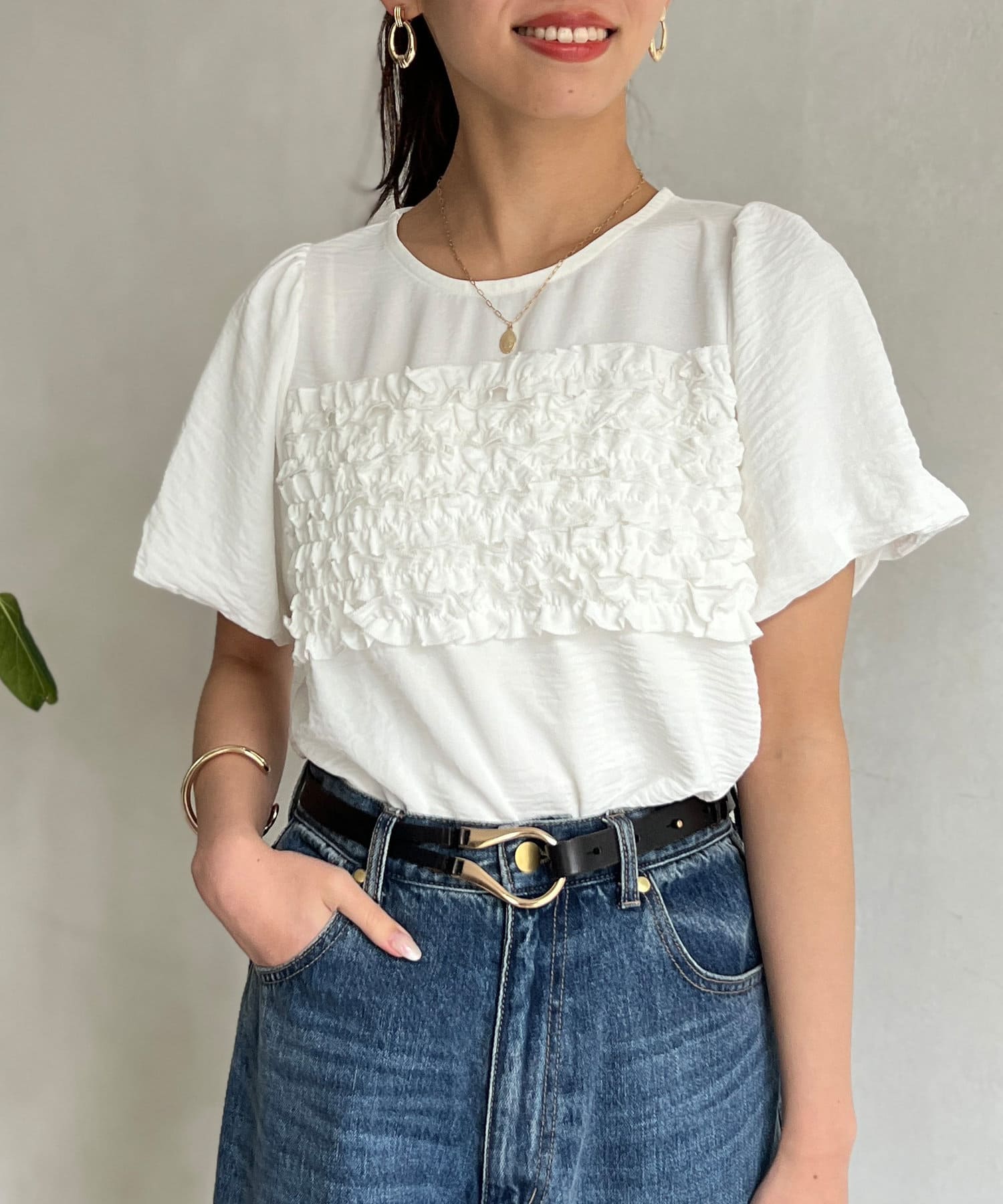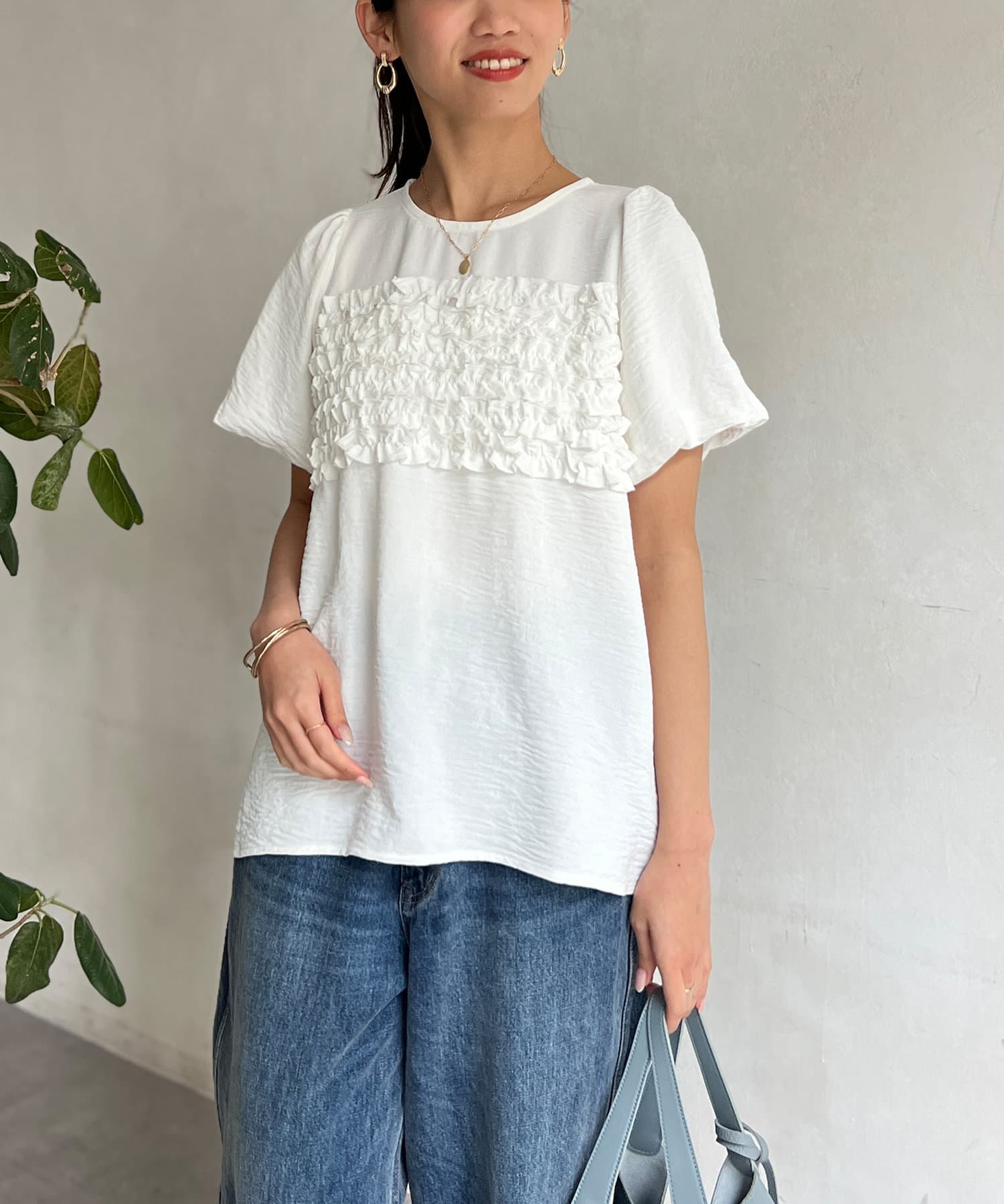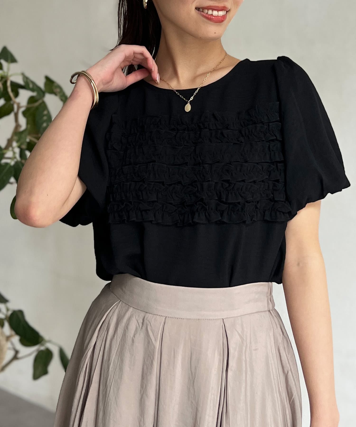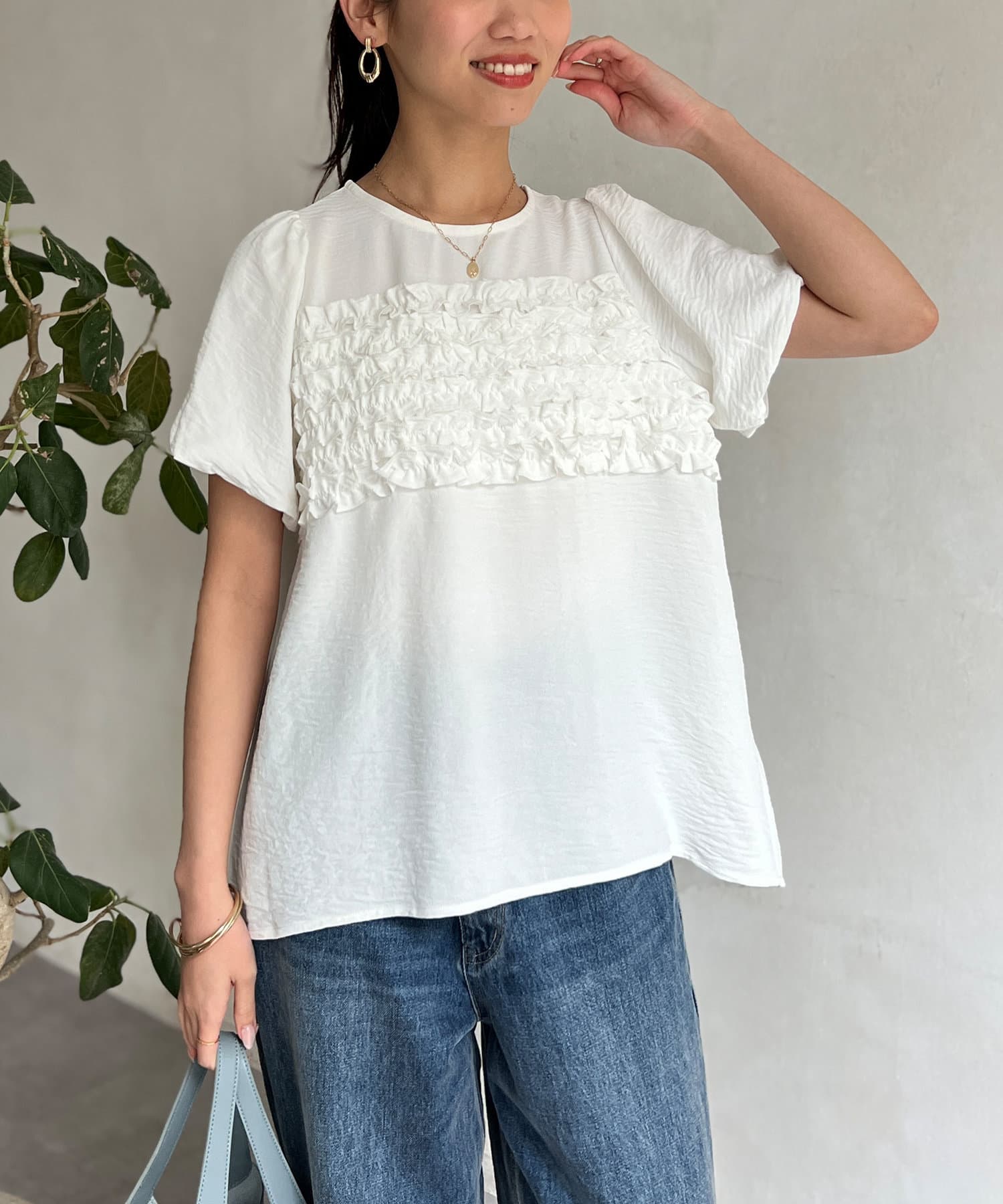• Chez toi(シェトワ) 胸元フリルチュニックブラウス