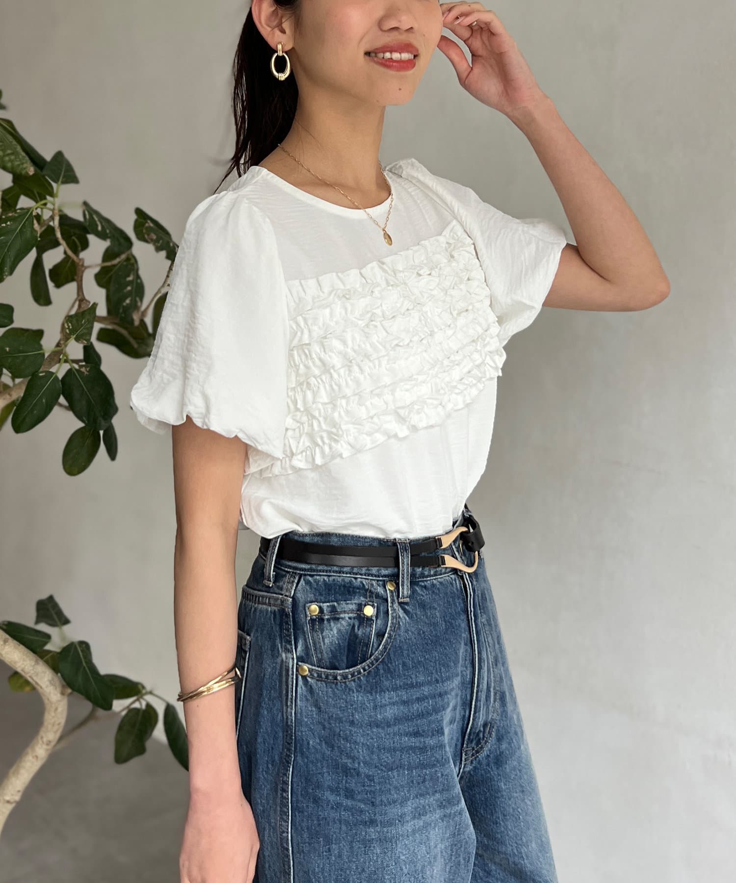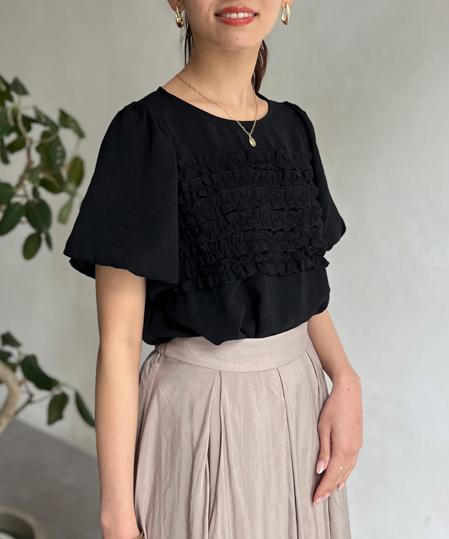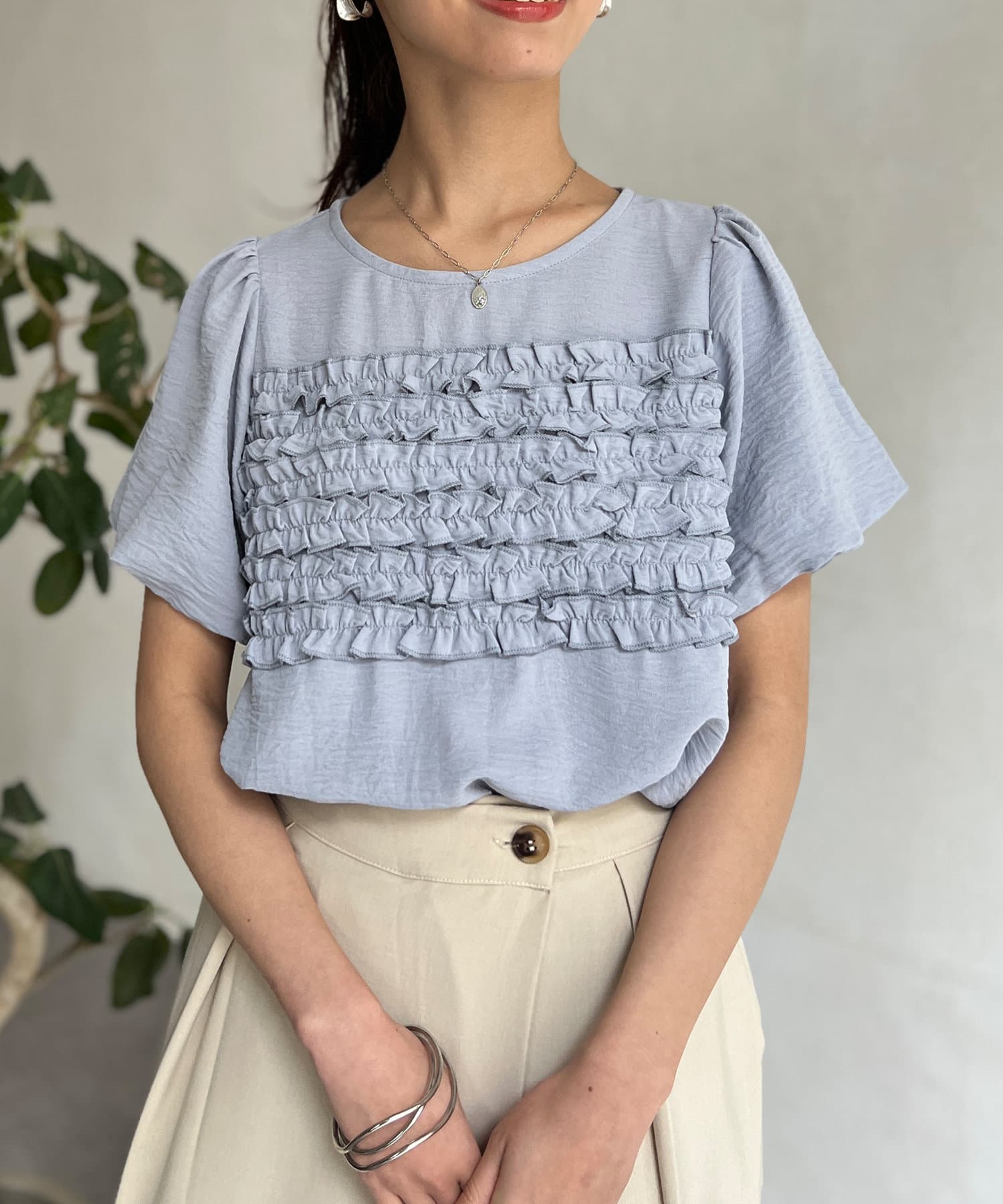 • Chez toi(シェトワ) 胸元フリルチュニックブラウス