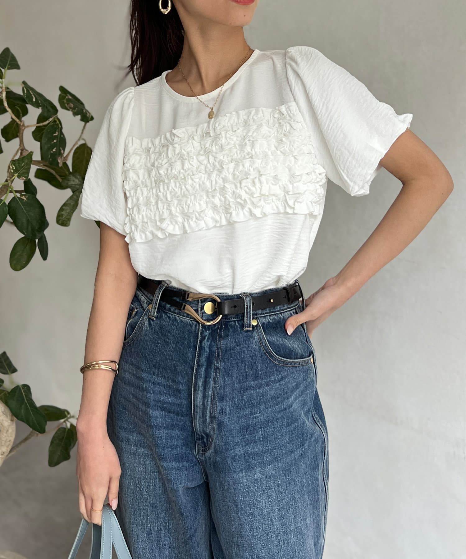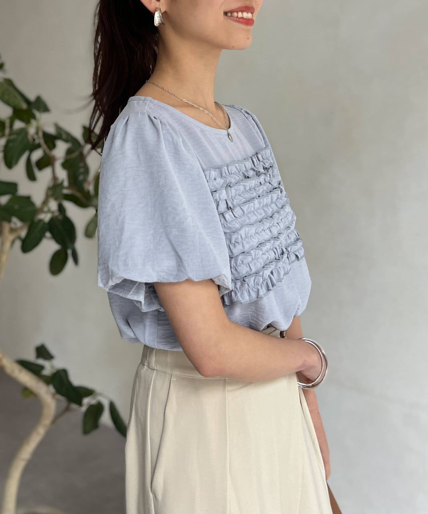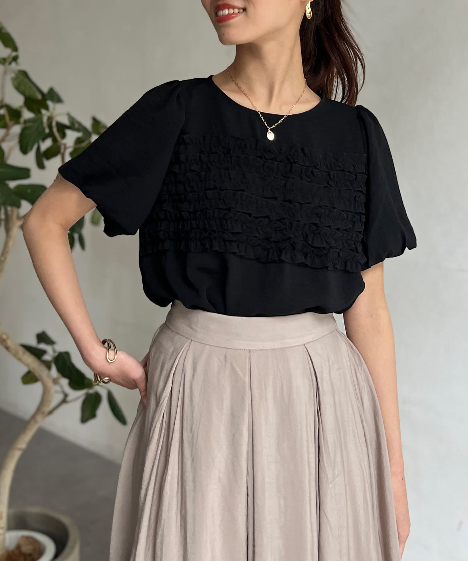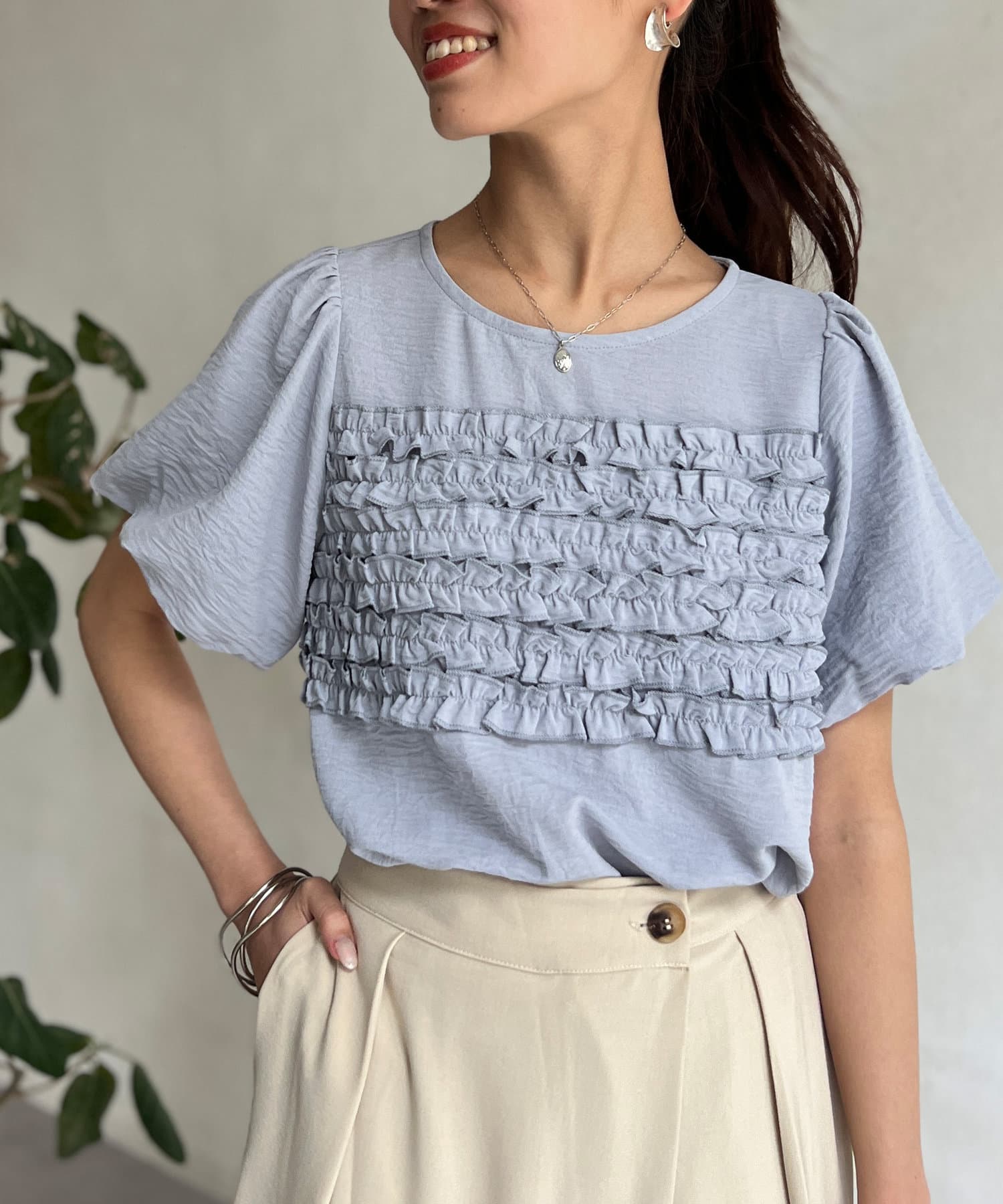 • Chez toi(シェトワ) 胸元フリルチュニックブラウス