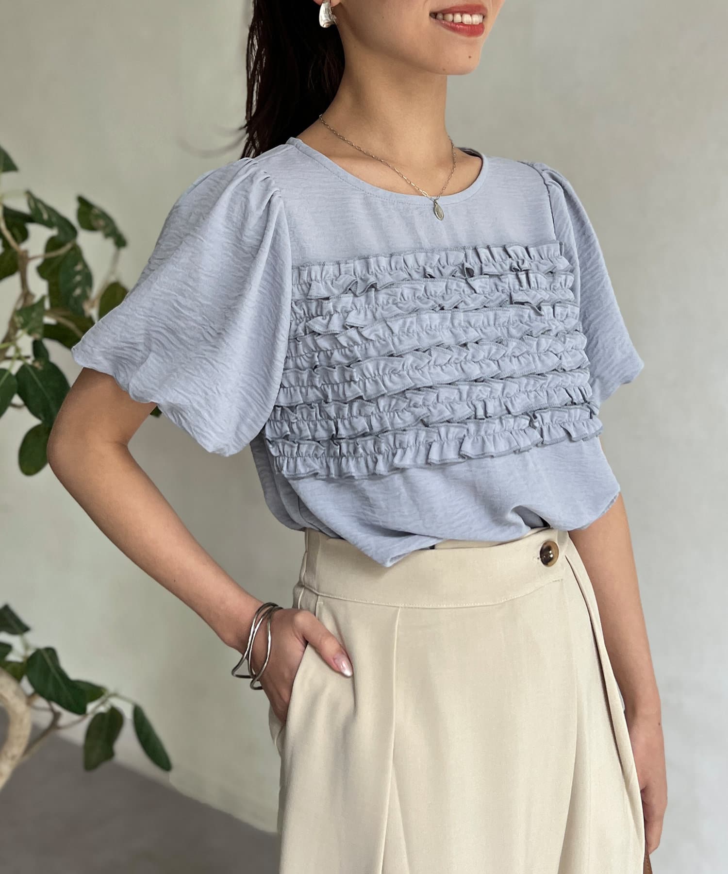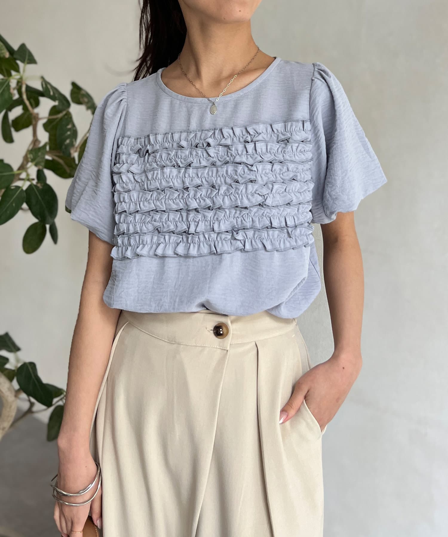 Chez toi(シェトワ) 胸元フリルチュニックブラウス