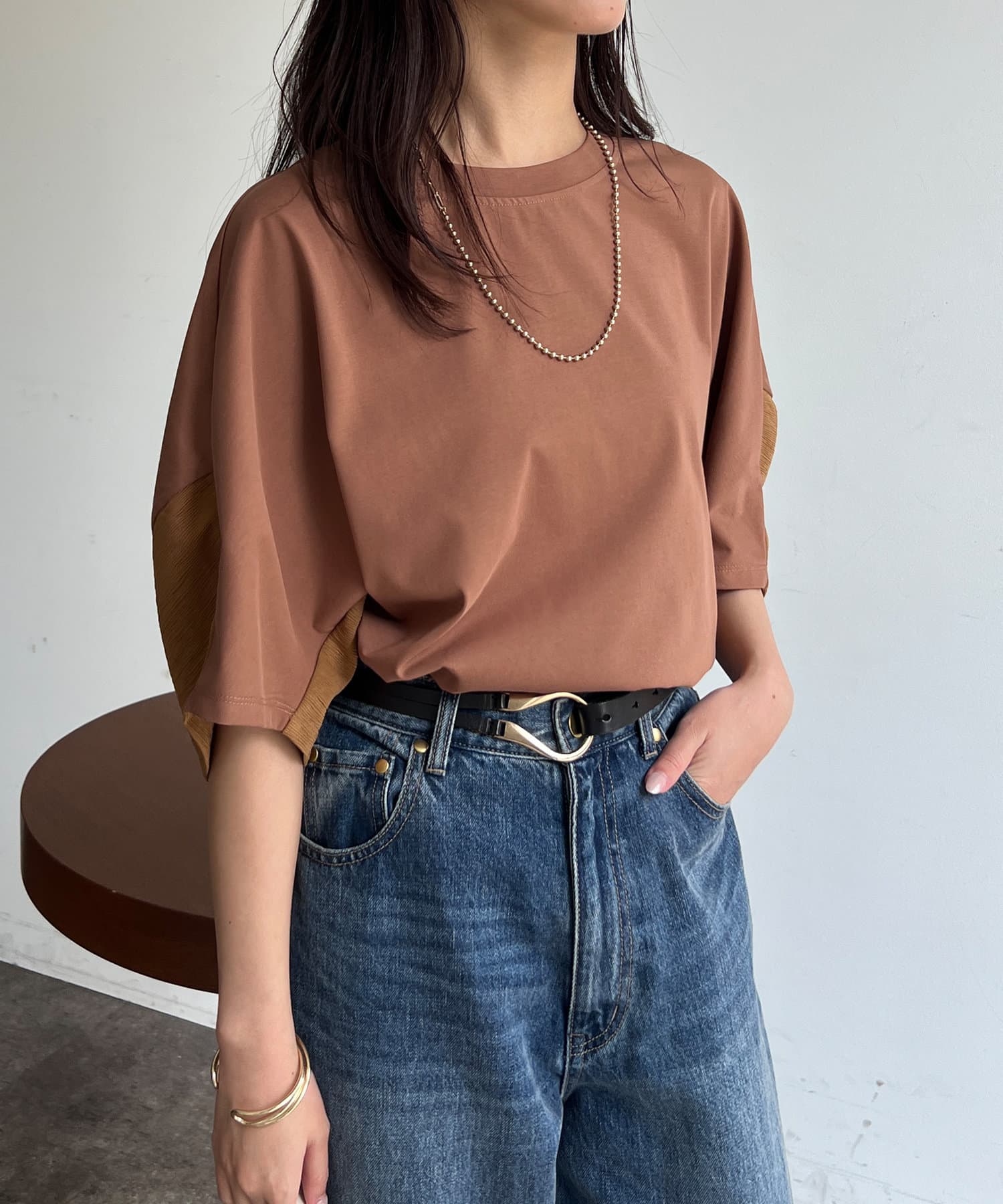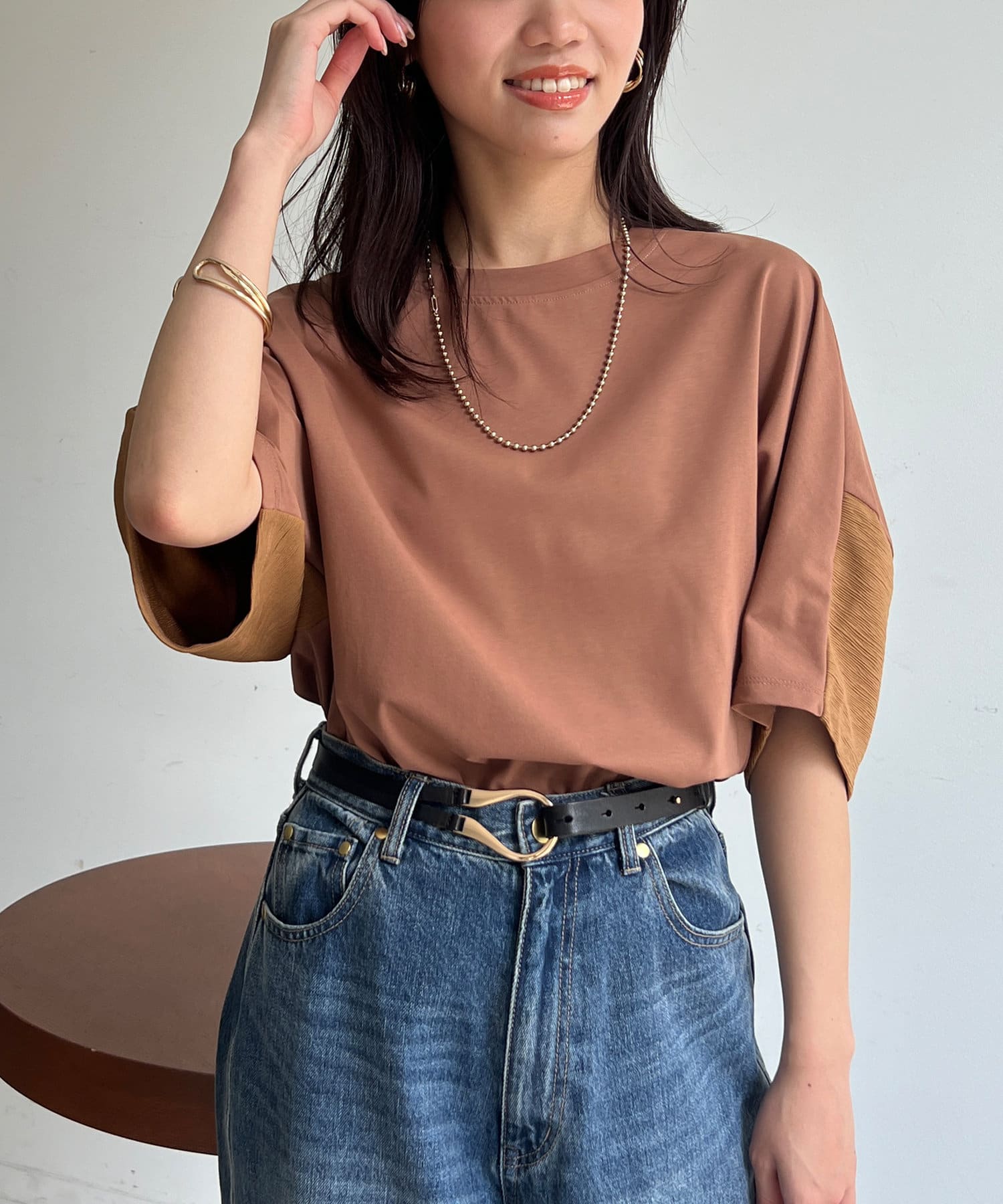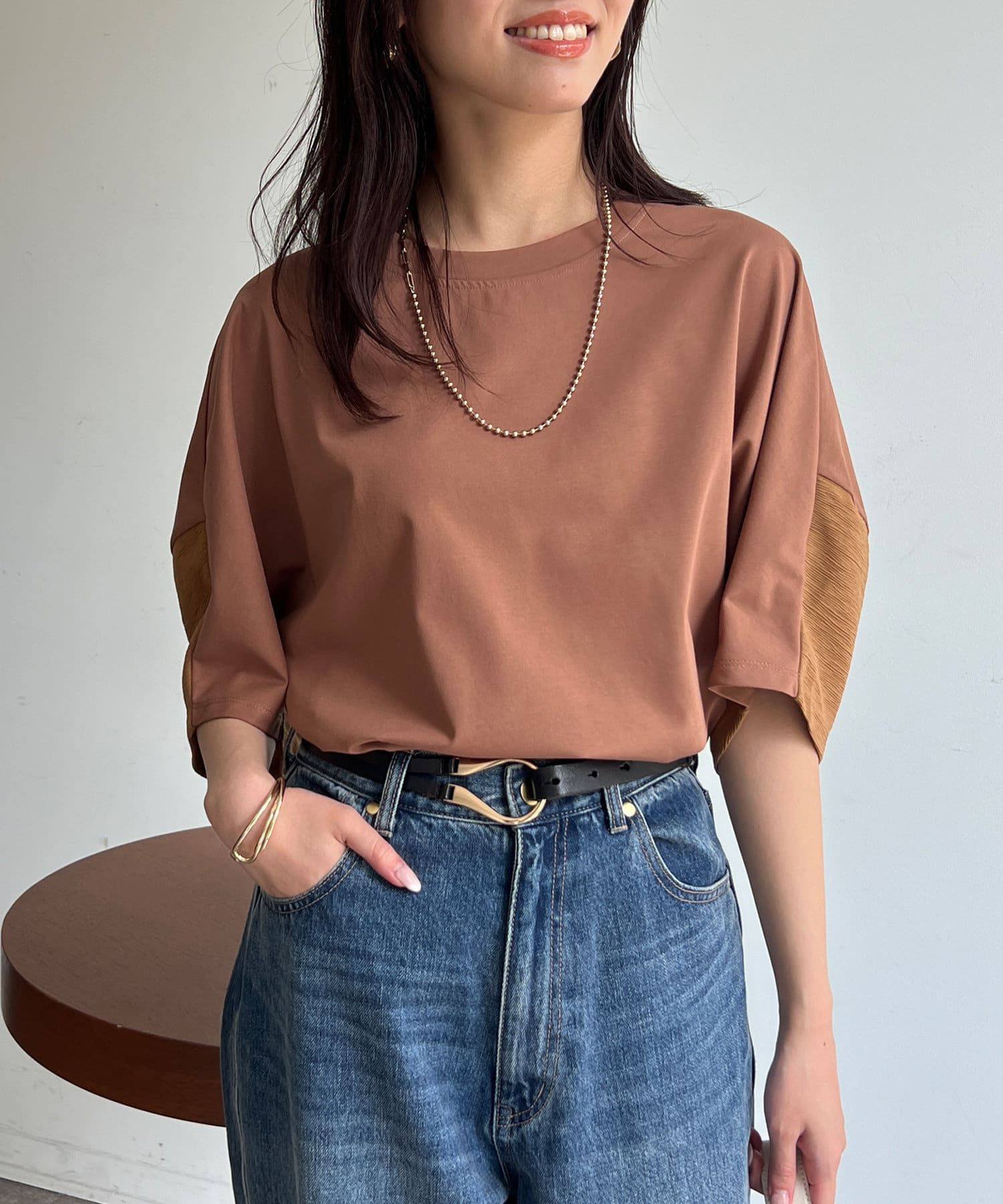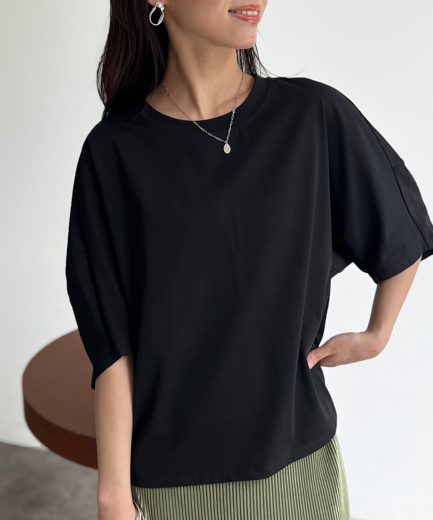 • Chez toi(シェトワ) 機能素材カット袖切替プルオーバー
