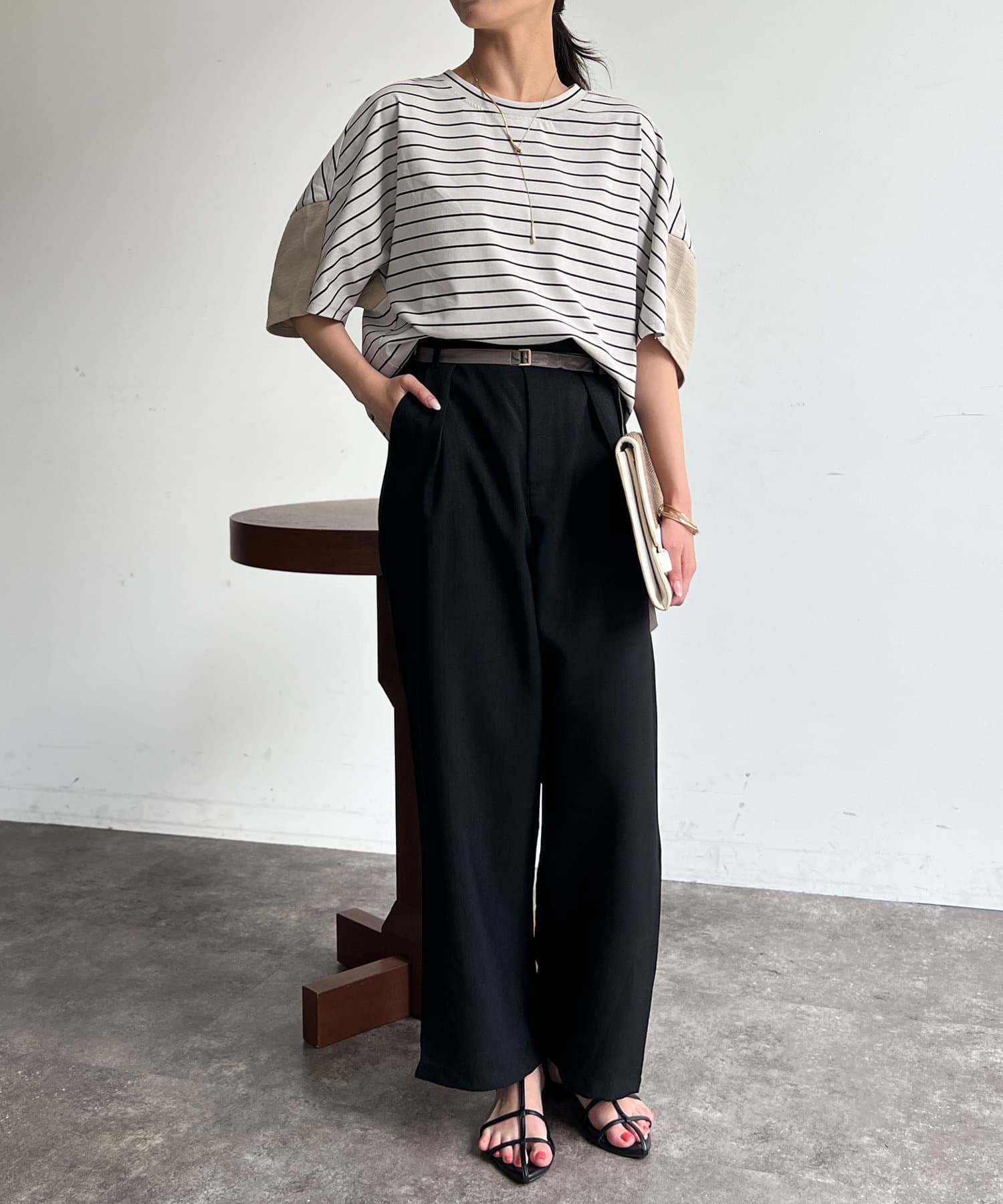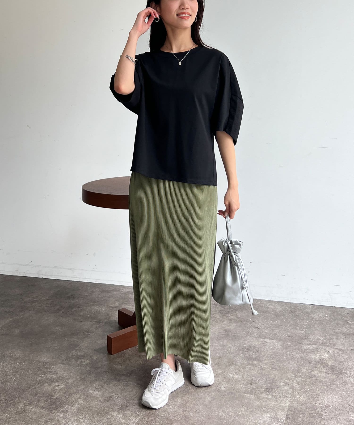 シンプルだけど、地味すぎずキレイ目にも着られて高見えします。