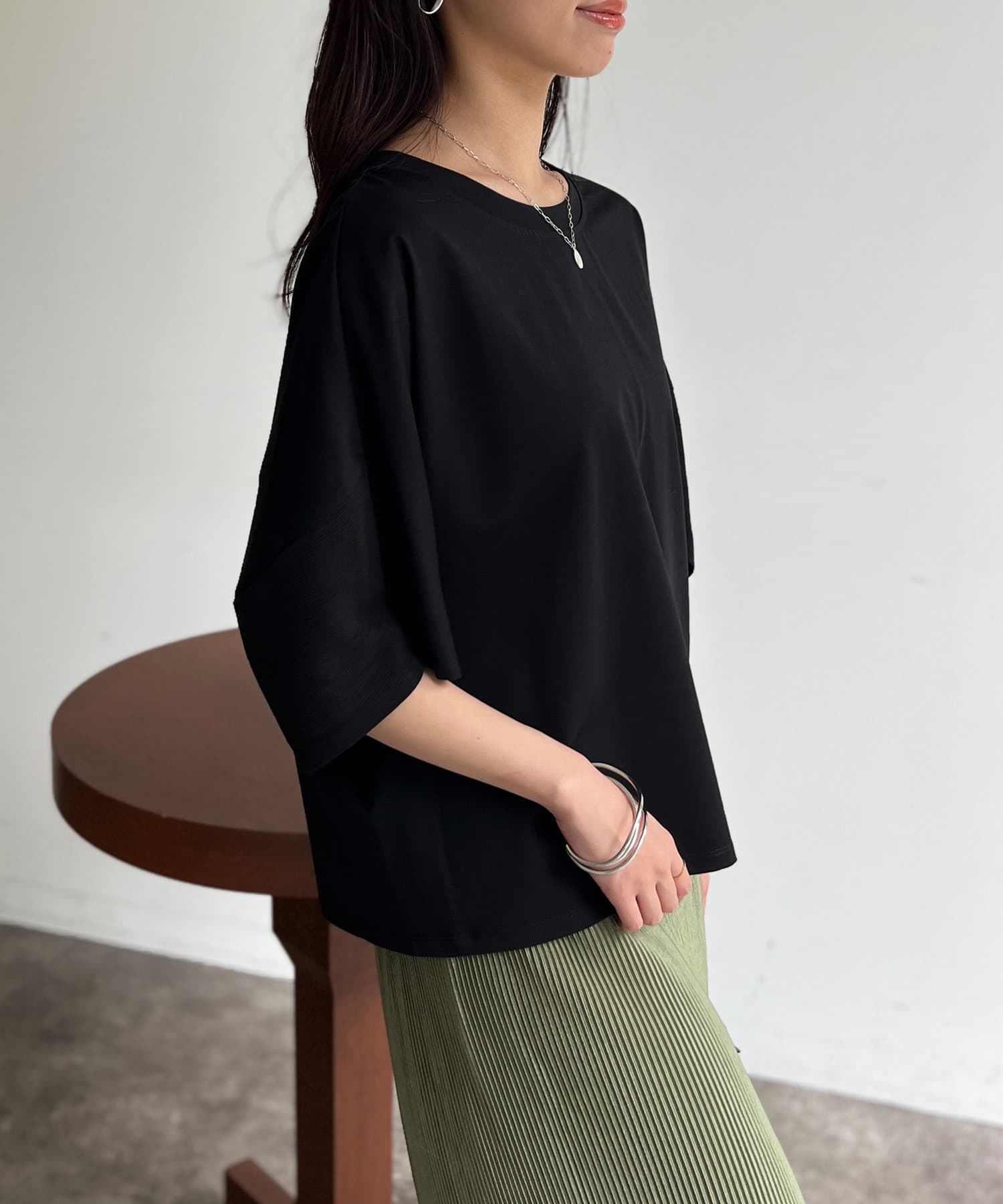 上質な光沢でさらっとした着心地のトップス。