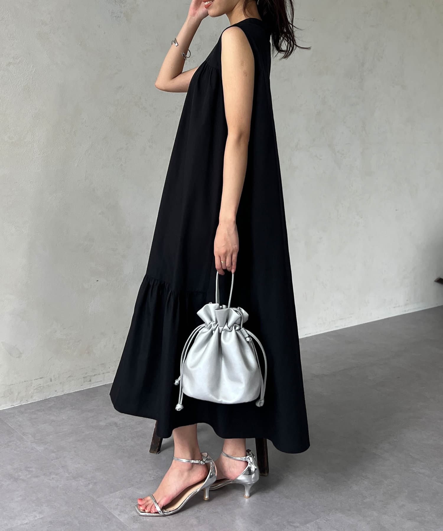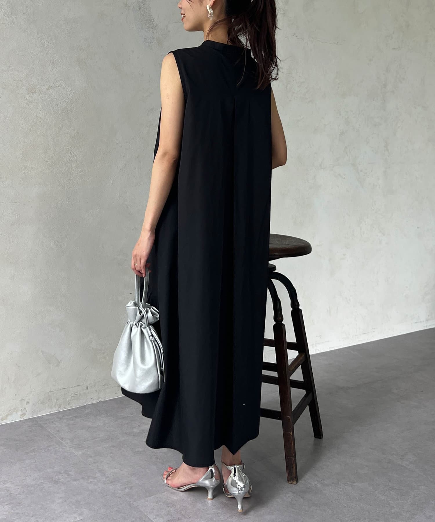 前後ともに表情を変えられ、飽きのこないデザインワンピース。