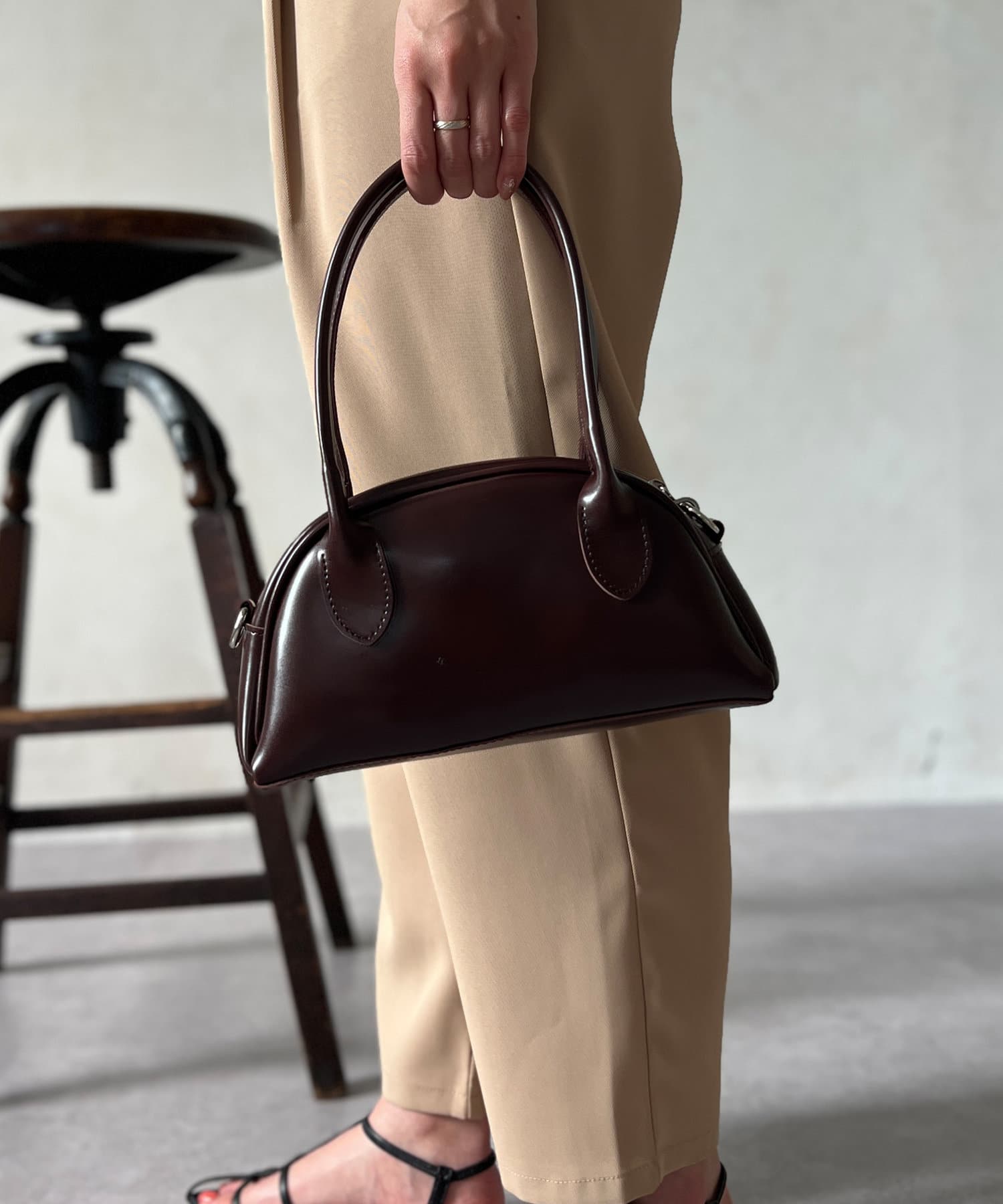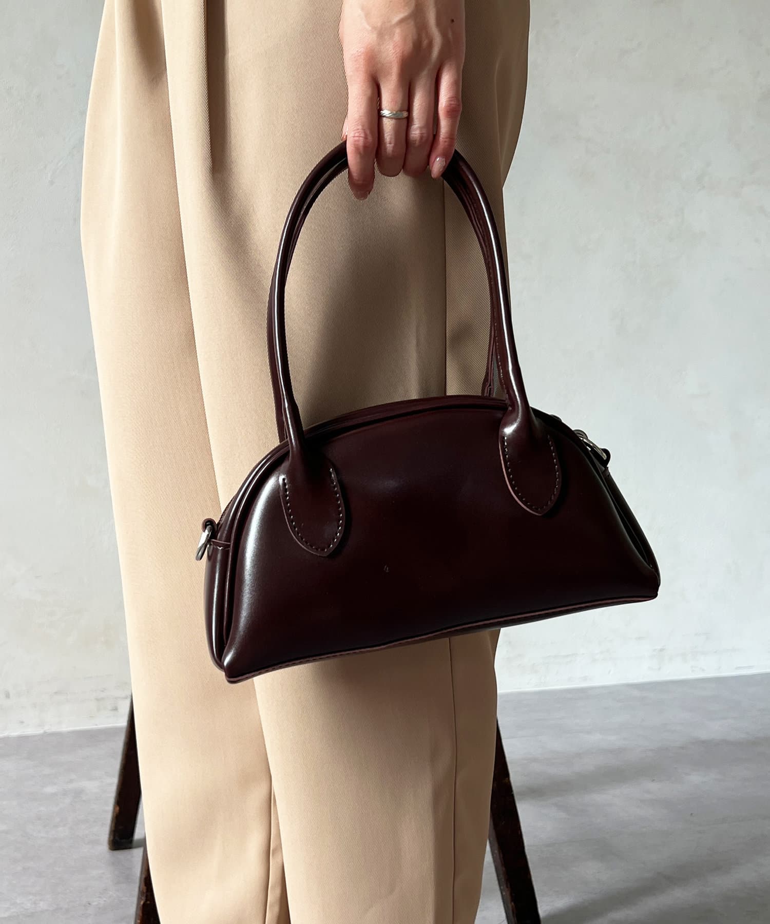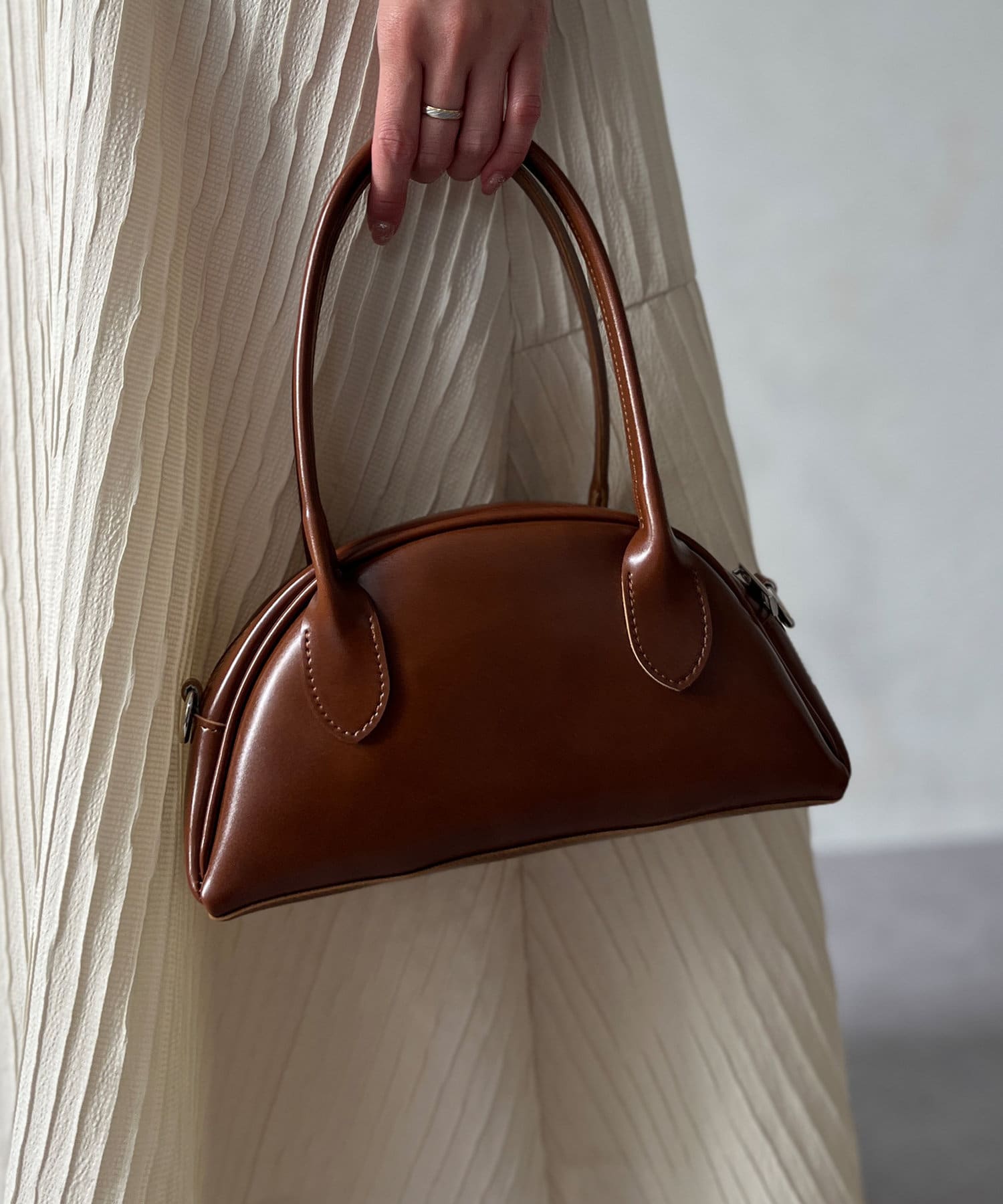 シンプルでシーンを問わず活躍するラウンドバッグ。